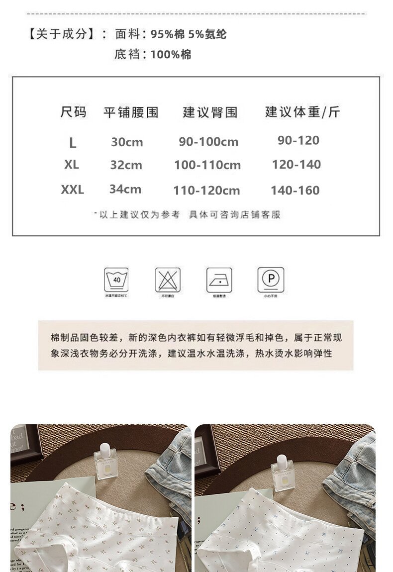 | 腰型 | 中腰 | 图案 | 爱心, 碎花, 拼色, 波点 |