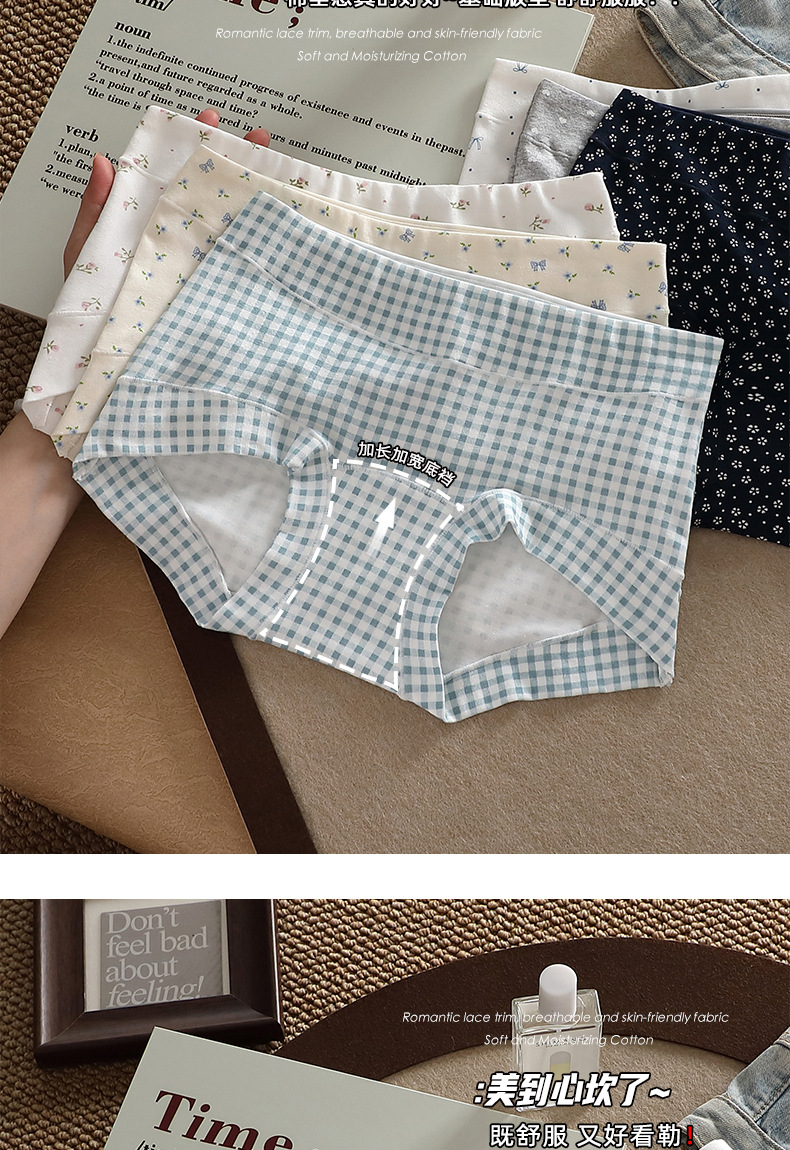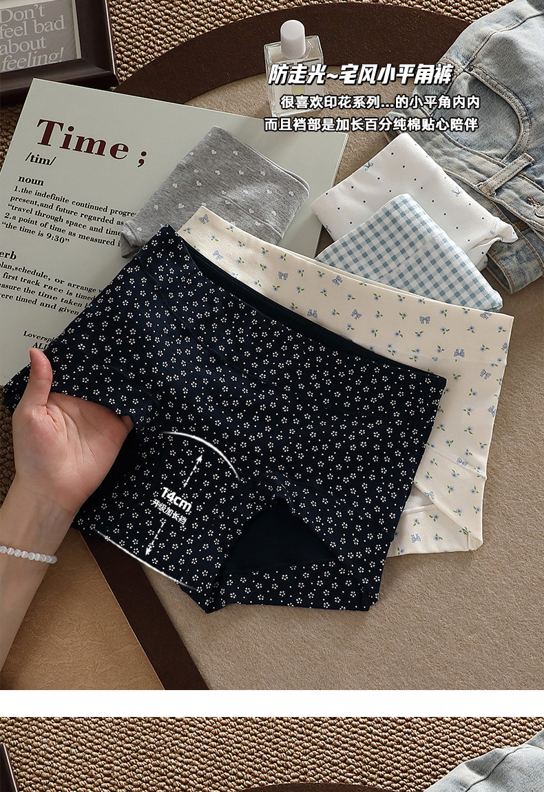여성을위한 10A 등급 순수 코튼 꽃 무늬 폴카 도트 속옷 2025 새로운 사계절 얇은 여성 피부 친화적 인 여성 복서 팬티
