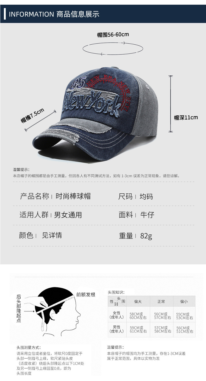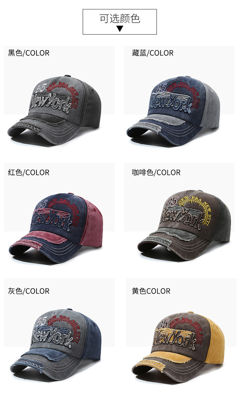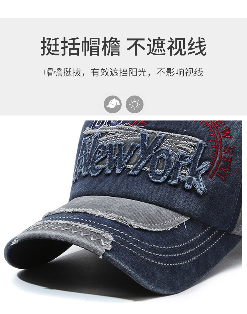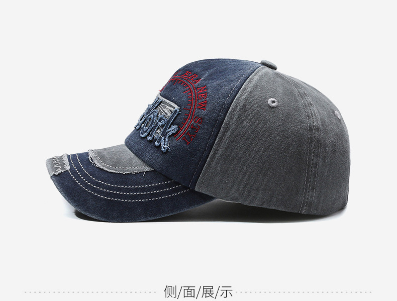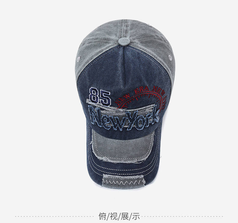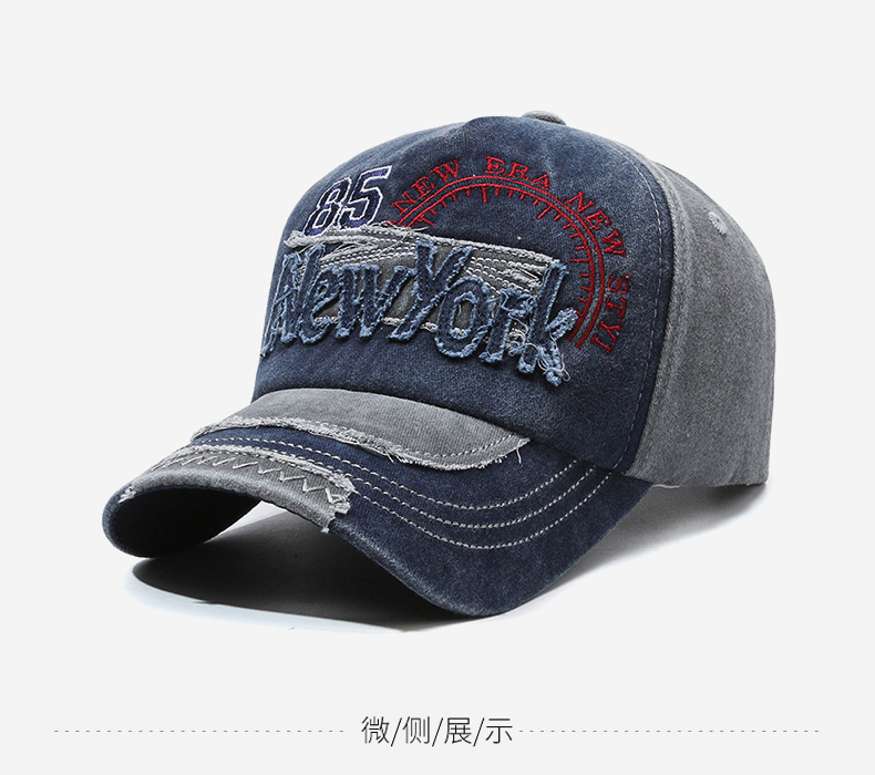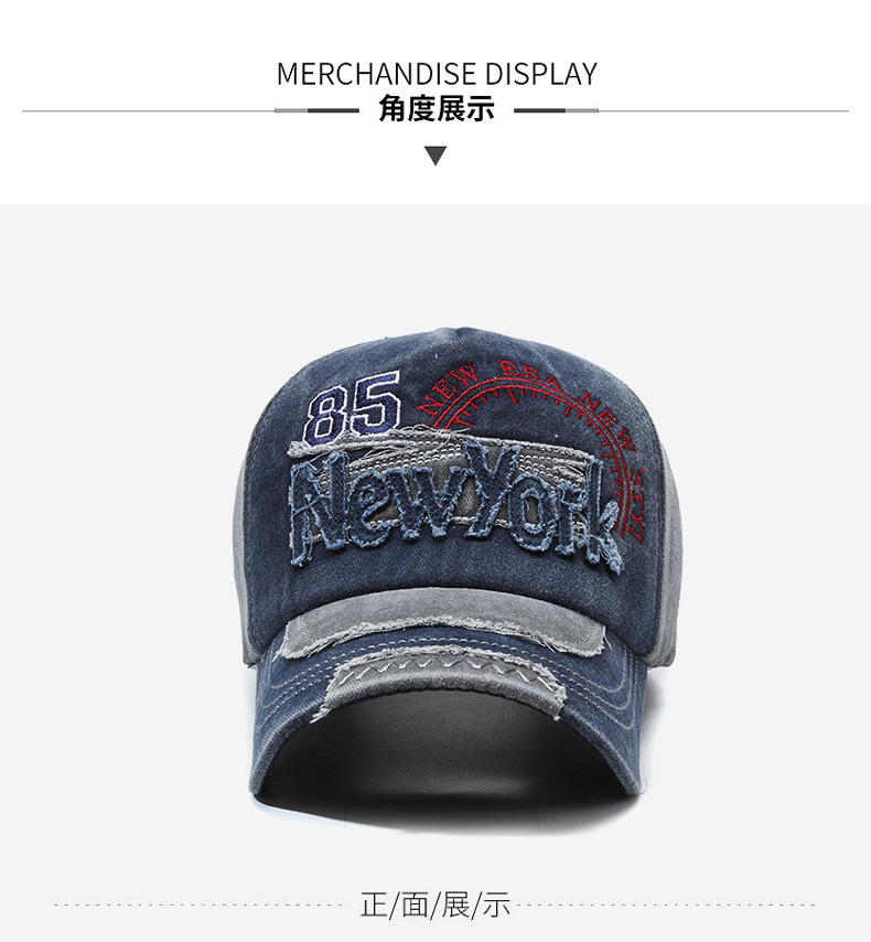 여성을위한 크로스 보더 유럽과 미국의 워시 올드 야구 모자 자수 문자 뉴욕 레트로 데님 패치 피크 캡