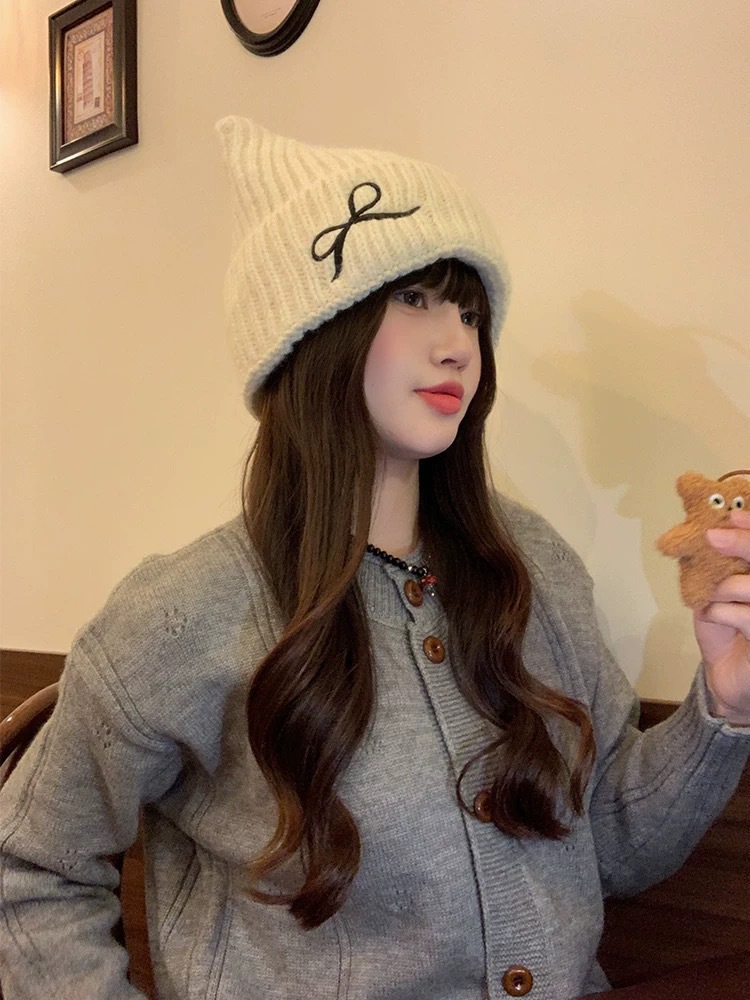 | 帽檐款式 | 无檐 | 颜色 | 蝴蝶结套头帽-白色, 蝴蝶结套头帽-黑色, 蝴蝶结套头帽-灰色, 蝴蝶结套头帽-卡其 |