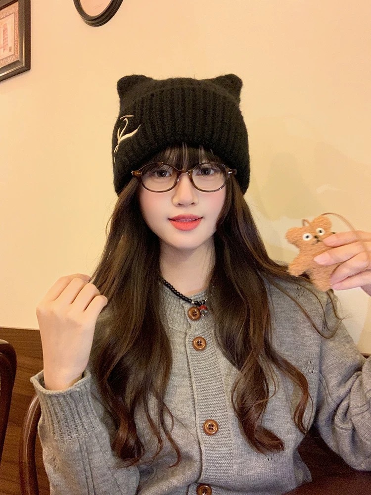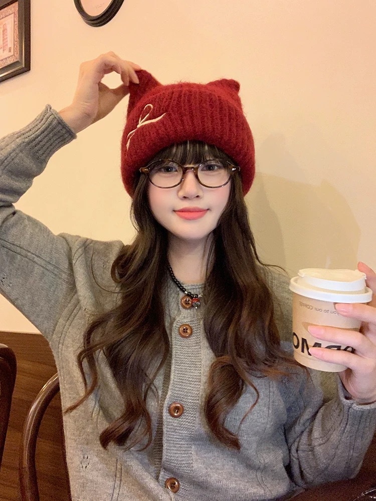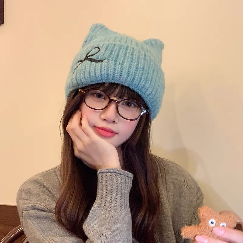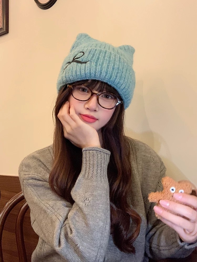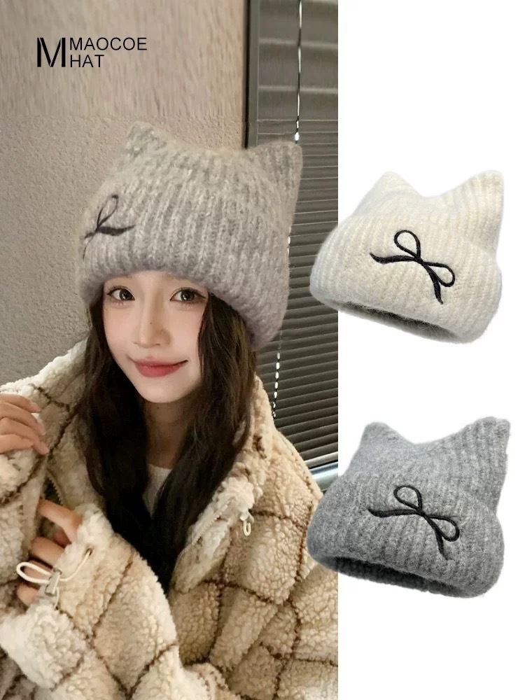크로스보더 리본 자수 모직 모자, 겨울 따뜻한 모직 모자, 여성 캐주얼 다용도 바오터우 모자, 패셔너블한 방한 모자
