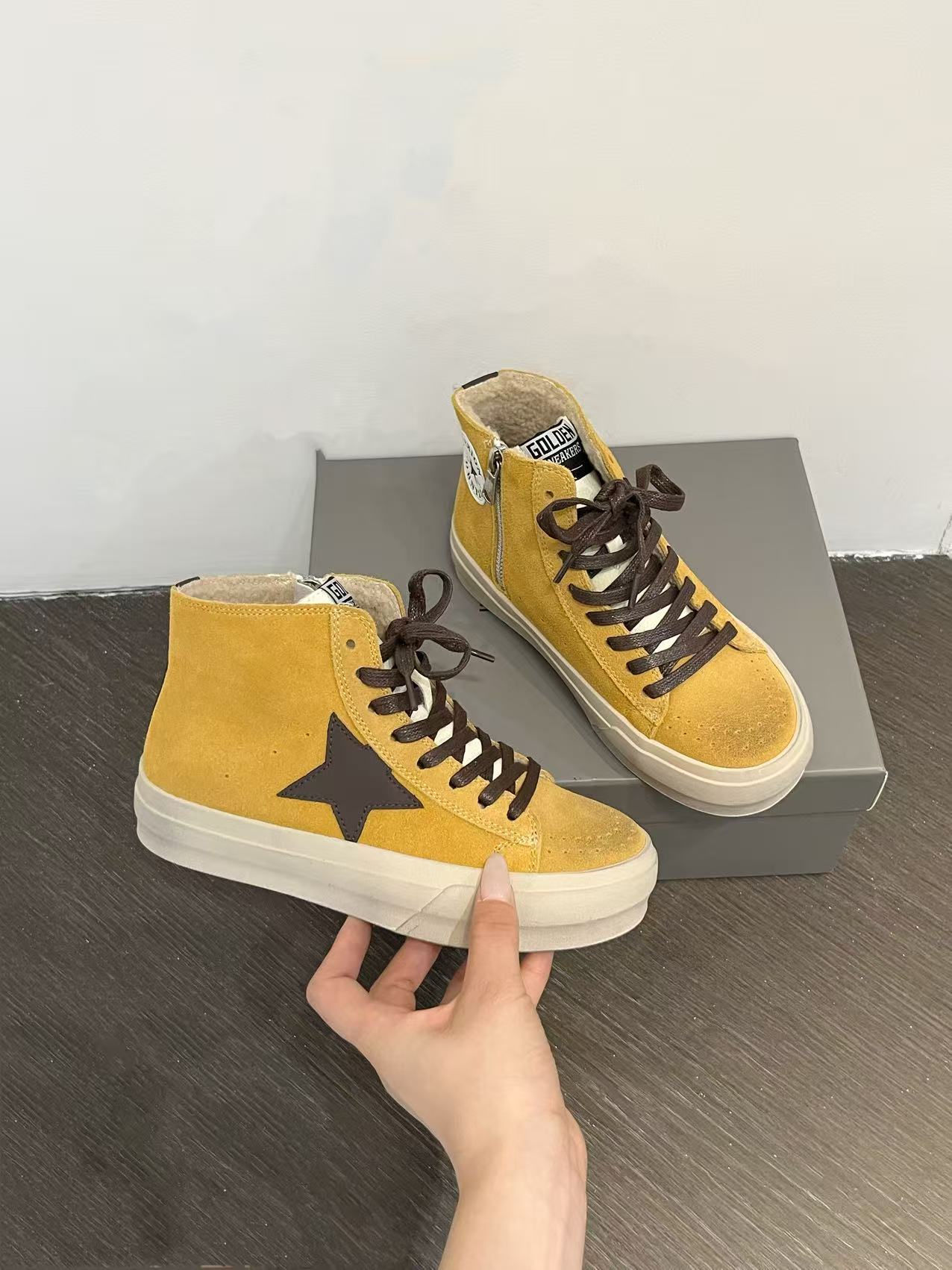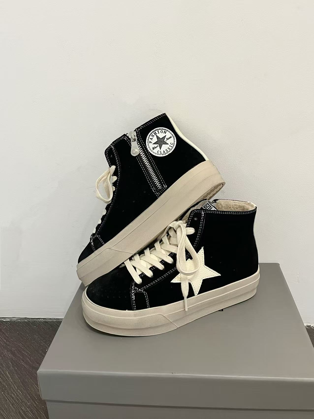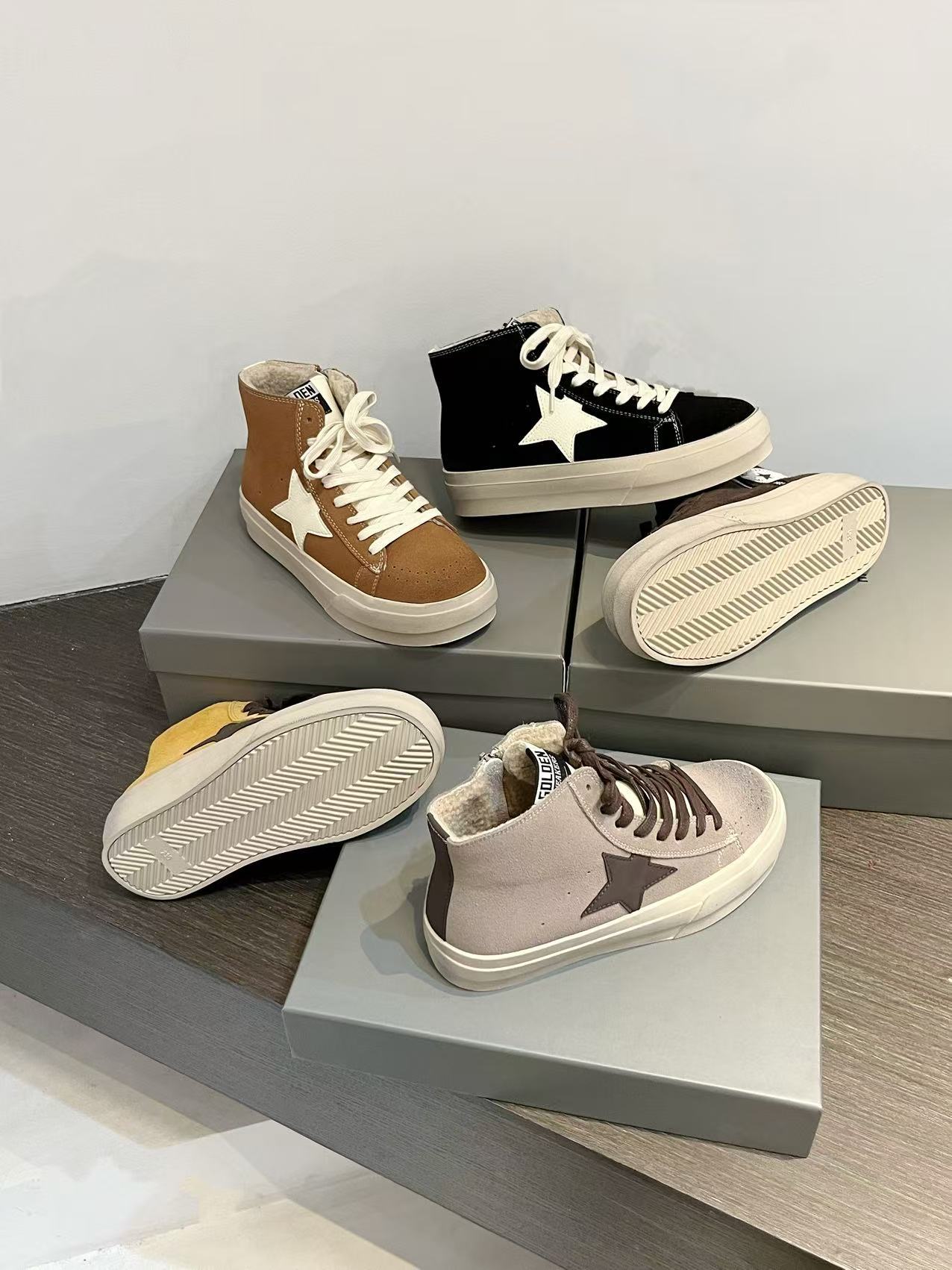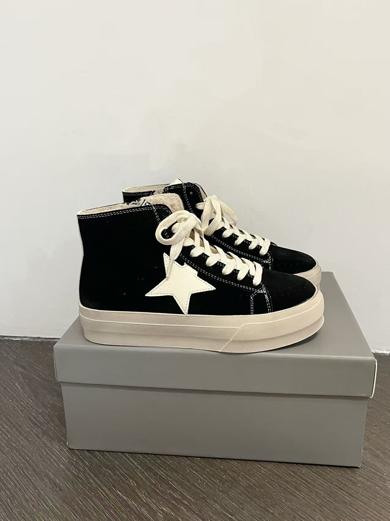 한국 동대문 레트로 올드 가죽 플러스 벨벳 스타 더티 슈즈 여성 패션 하이탑 두꺼운 밑창 다용도 스니커즈 트렌디