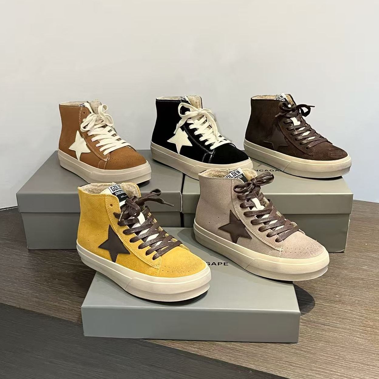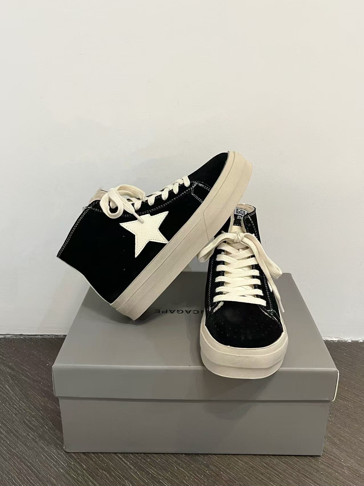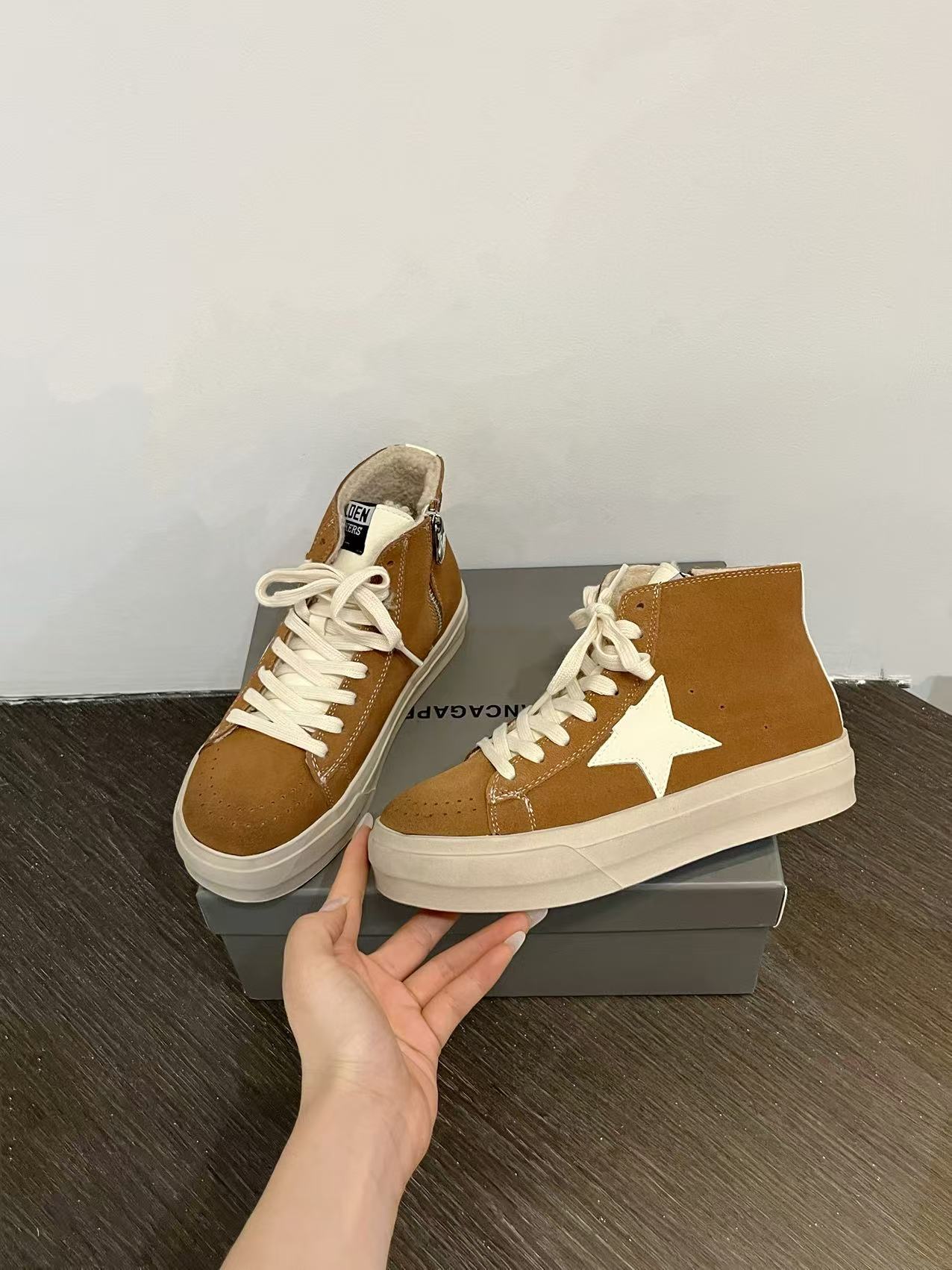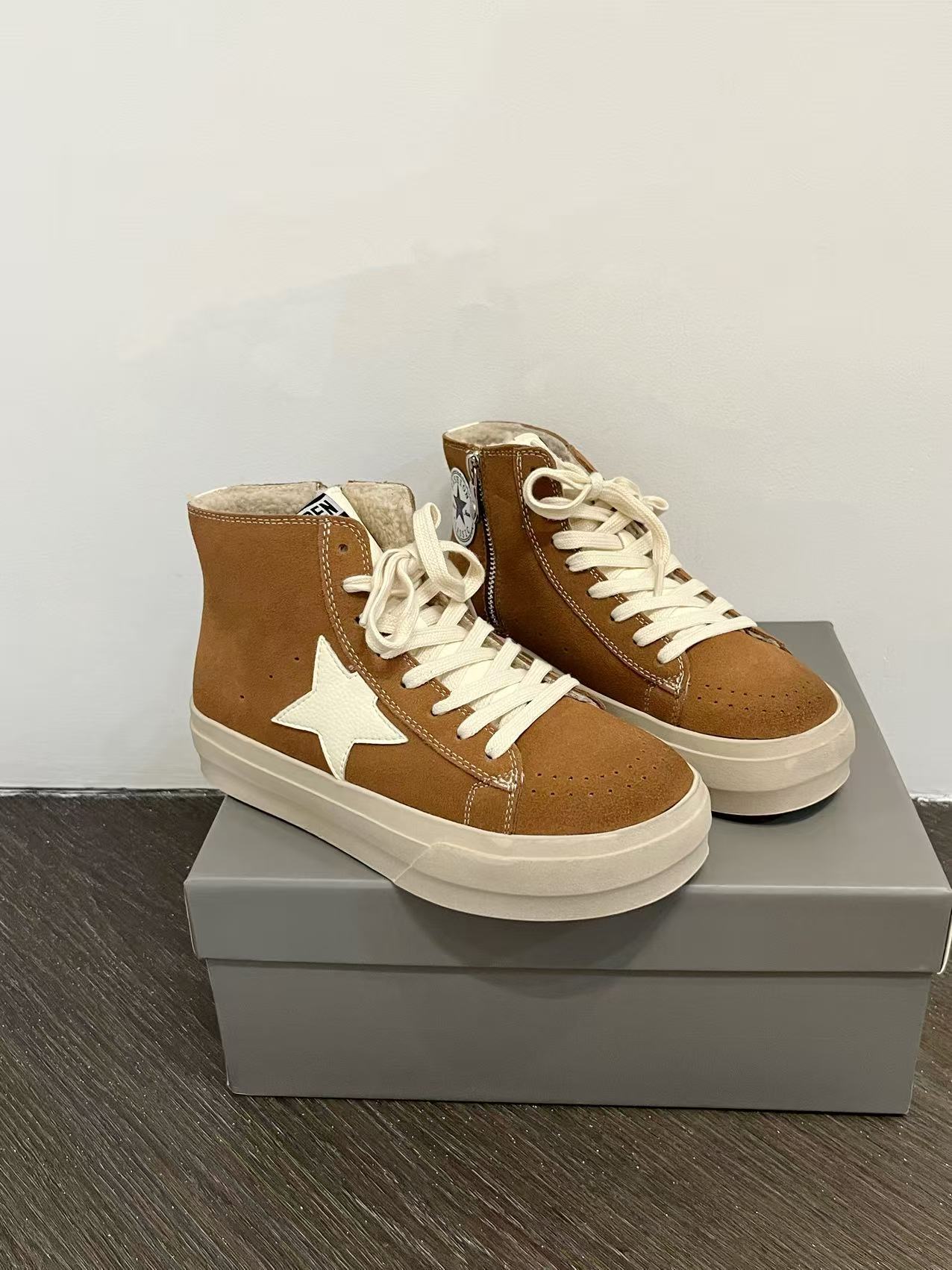 한국 동대문 레트로 올드 가죽 플러스 벨벳 스타 더티 슈즈 여성 패션 하이탑 두꺼운 밑창 다용도 스니커즈 트렌디