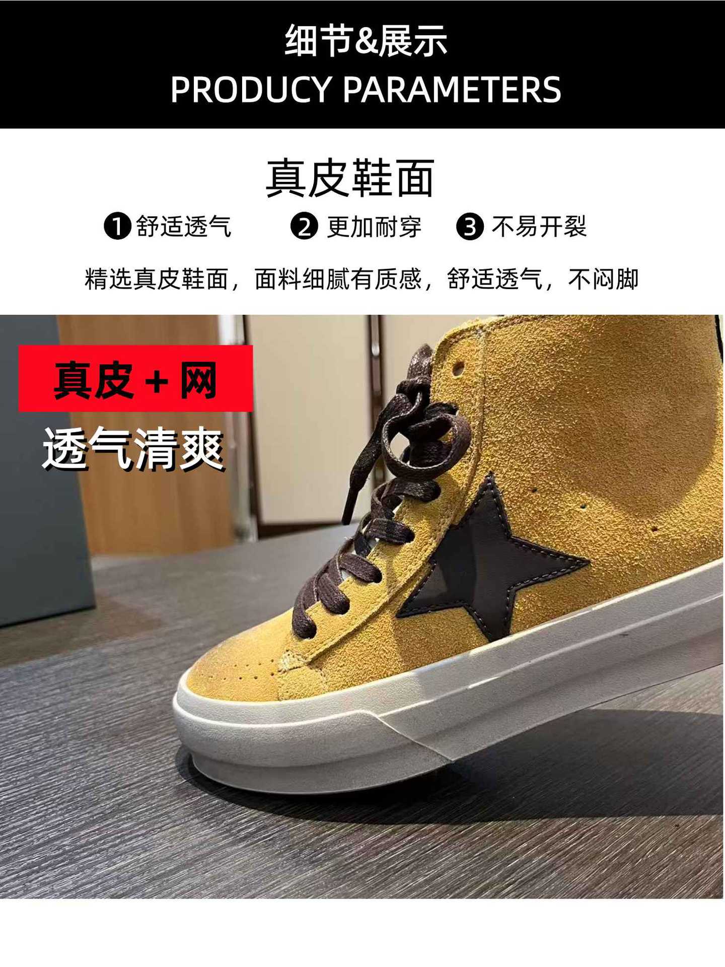 | 颜色 | 黄色, 咖啡, 黑色, 驼色, 豆沙 | 尺码 | 35, 36, 37, 38, 39, 40 |