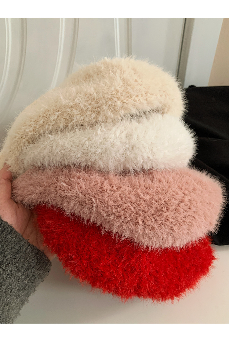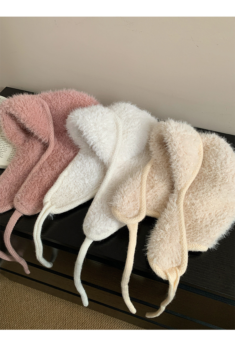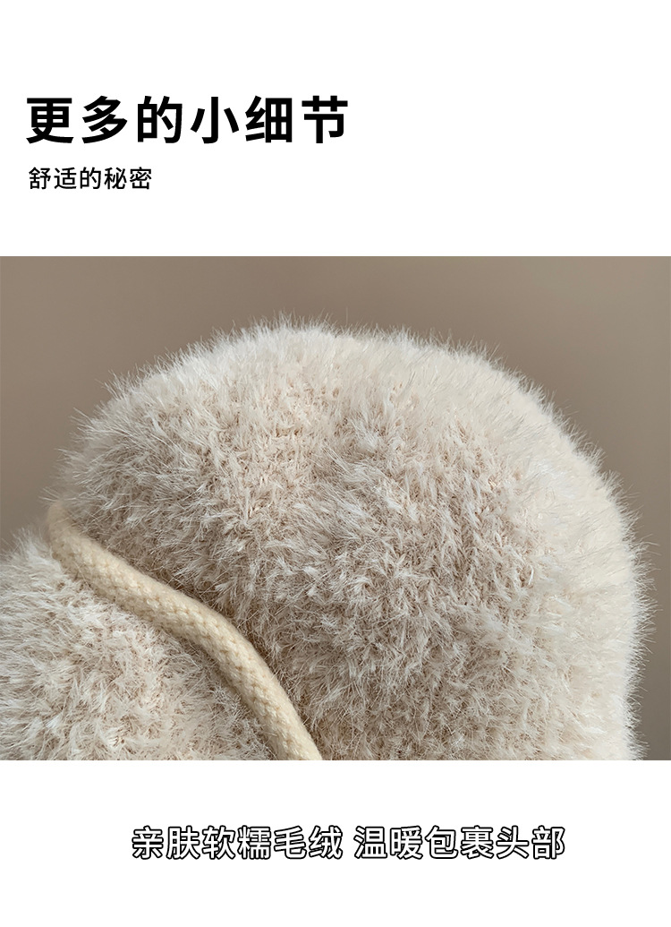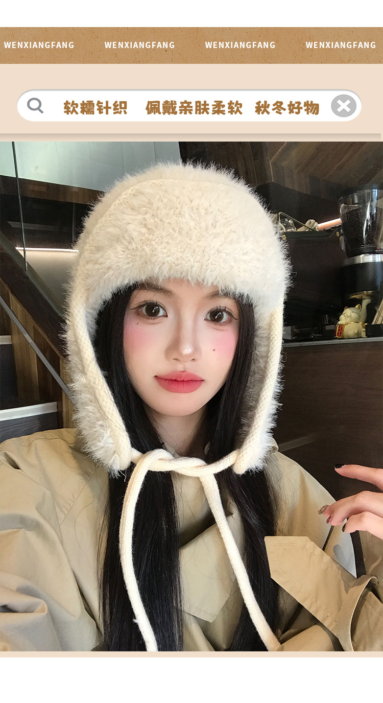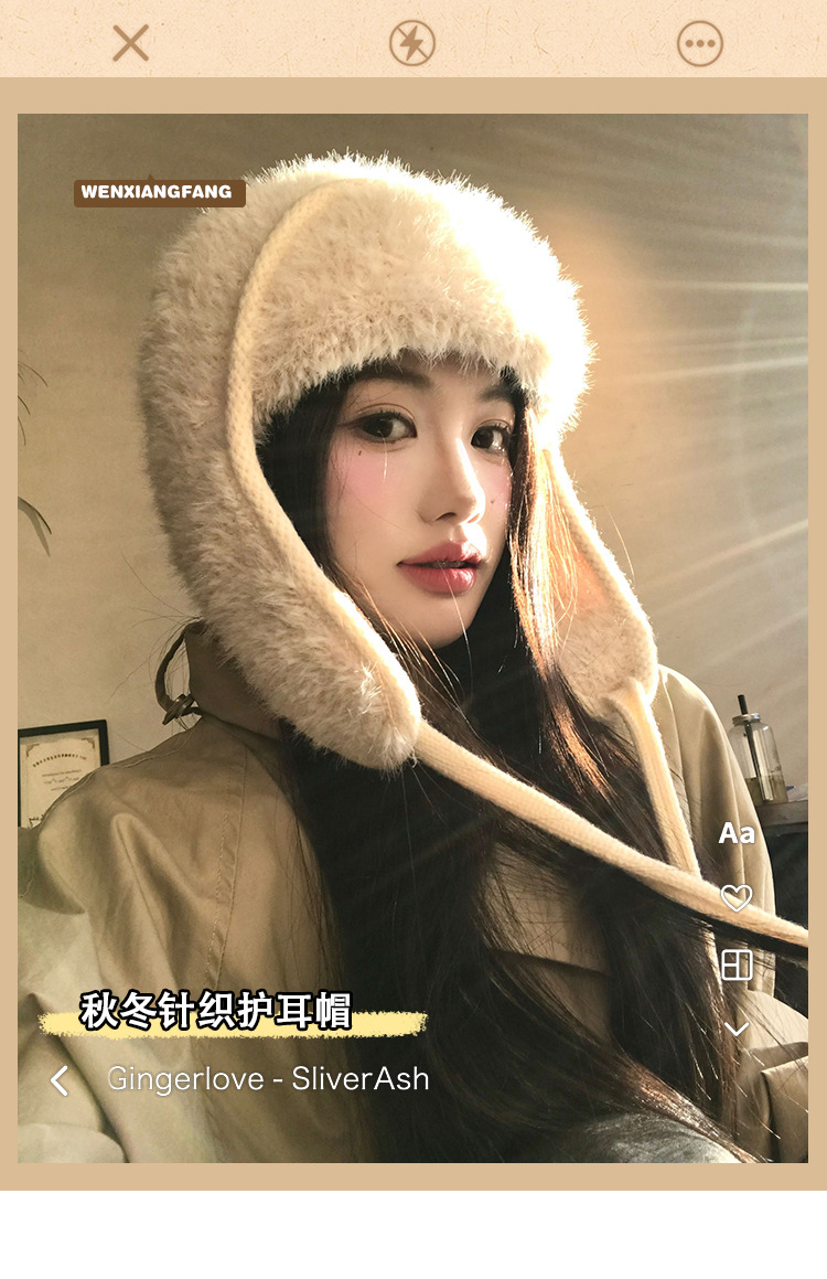 가을 겨울 여성용 흰색 플러시 니트 귀 보호 모자, 얼굴이 보이는 따뜻하고 방한 레이펑 모자, 작은 머리 둘레 모직 모자