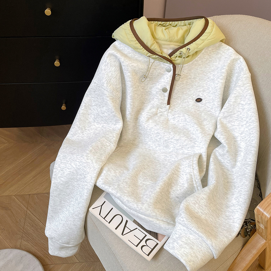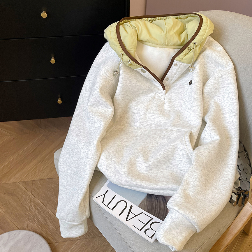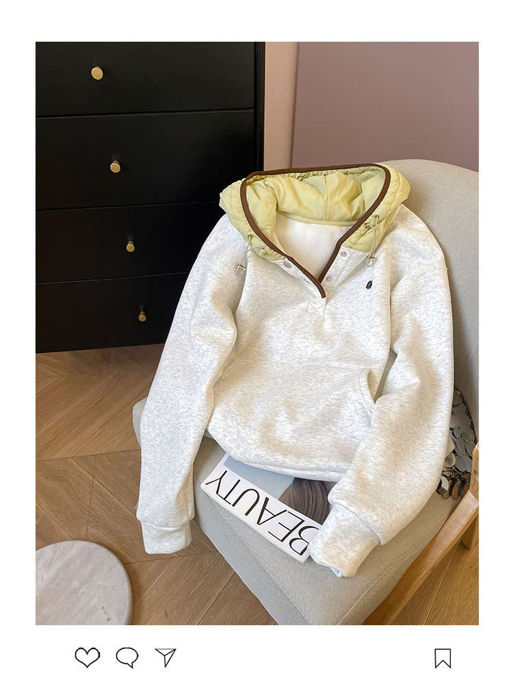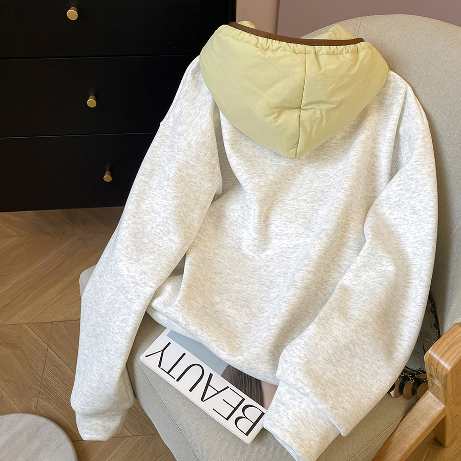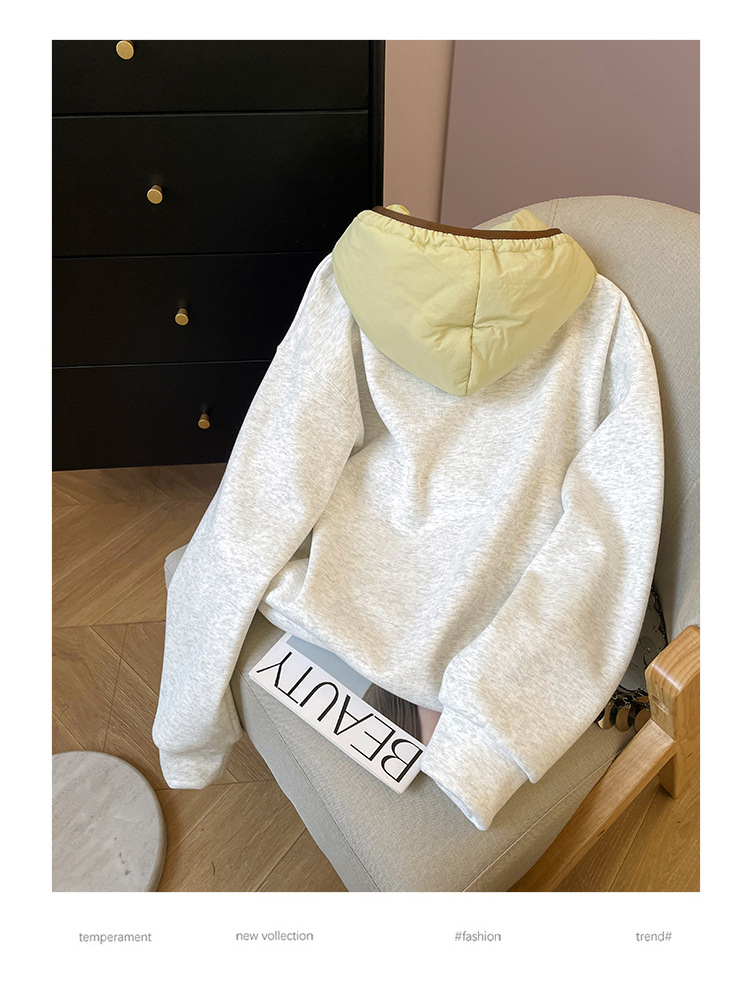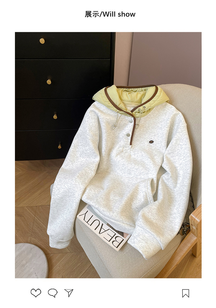 공식 사진 + 여성용 리얼 슈퍼 벨벳 스웨트 셔츠 가을 겨울 새로운 스타일 스플 라이스 루즈 후드 한국 스타일 따뜻한 탑