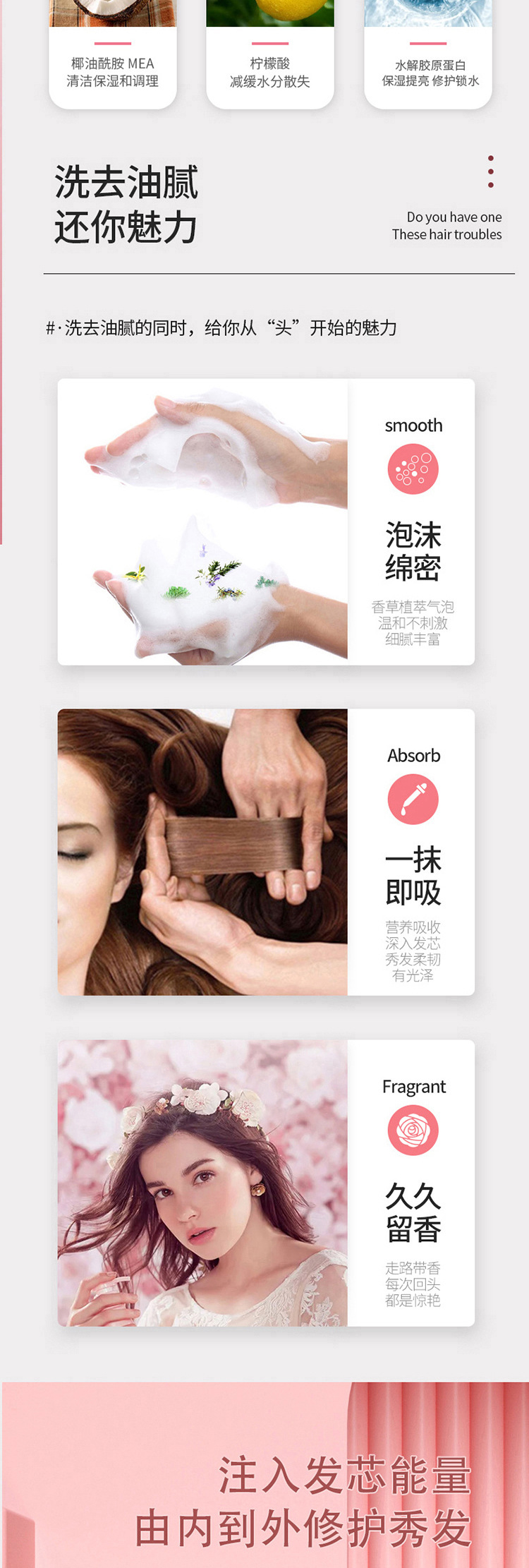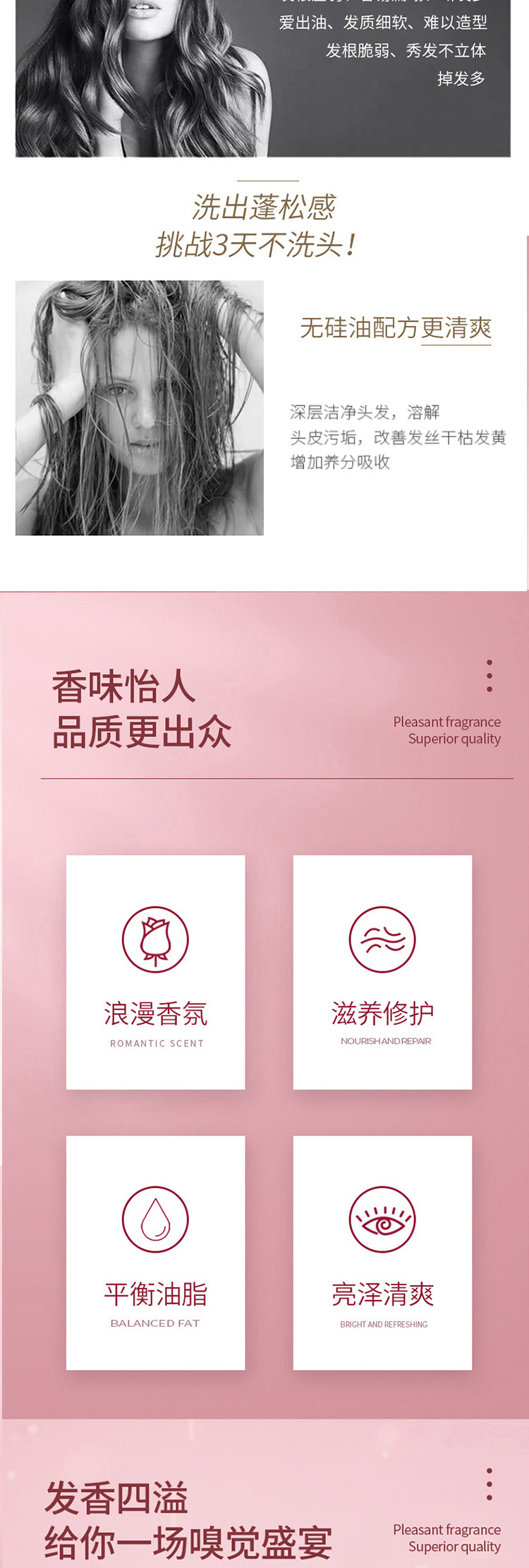 | 功能 | 去头屑滋润营养清爽控油改善头痒柔顺浓密蓬松 | 规格类型 | 滋养柔顺洗发水, 清爽控油洗发水, 去屑劲爽洗发水, 护发素, 沐浴露 |