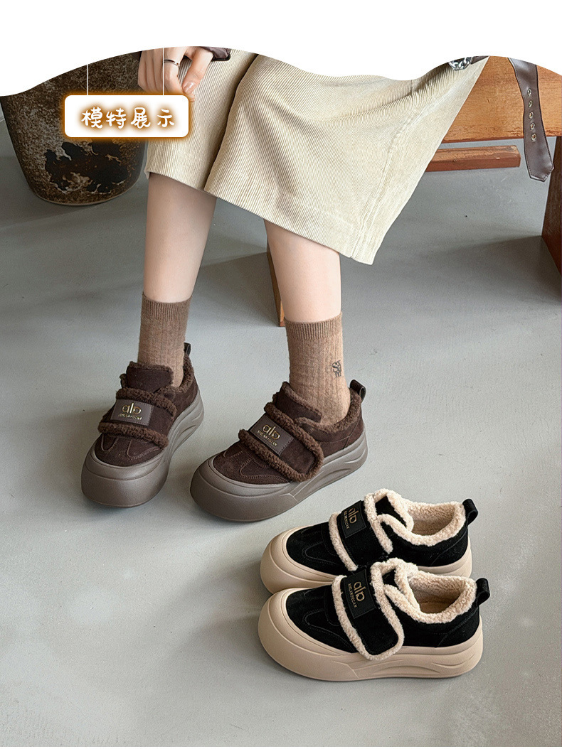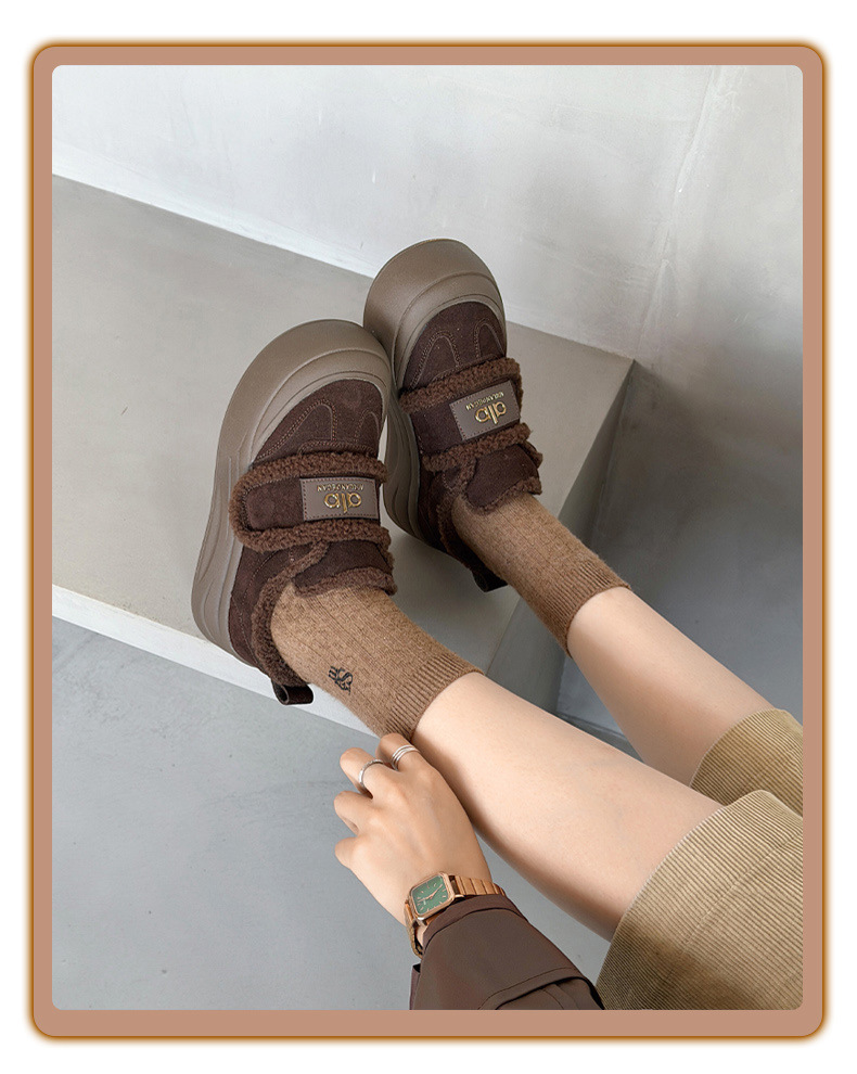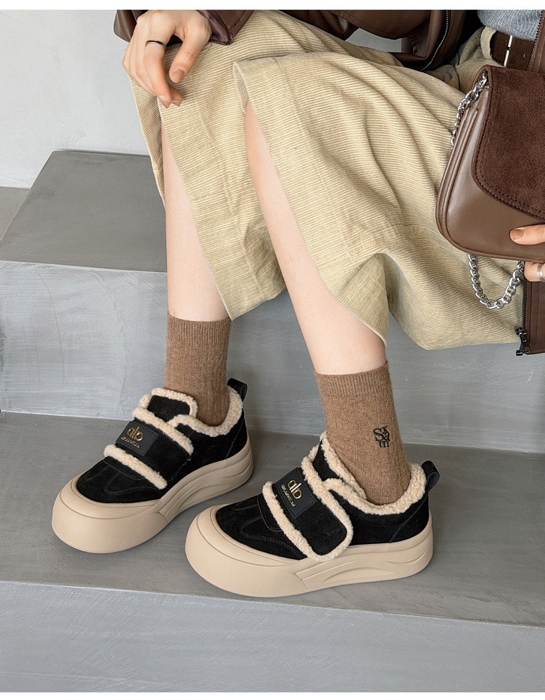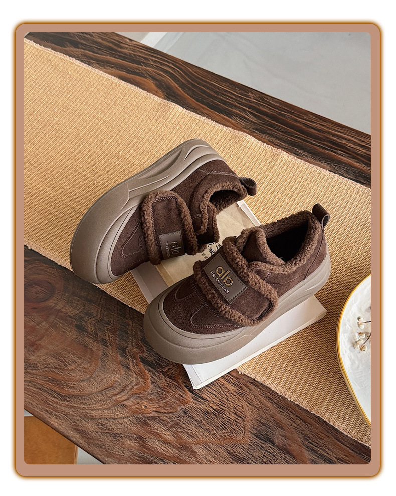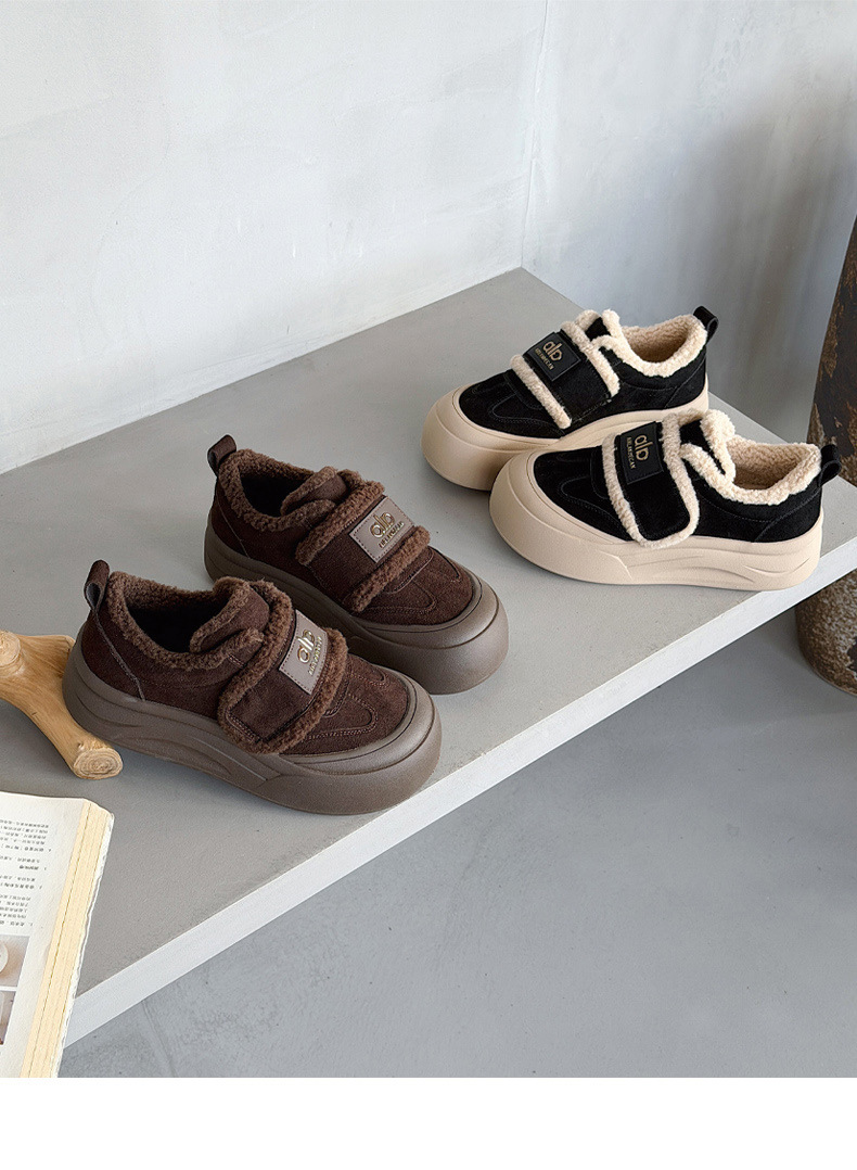 두꺼운 밑창, 부드러운 밑창, 여성을 위한 트렌디한 모피 캐주얼 신발, 2025년 신상 겨울 벨벳 두꺼운 가죽 면화 및 운동화