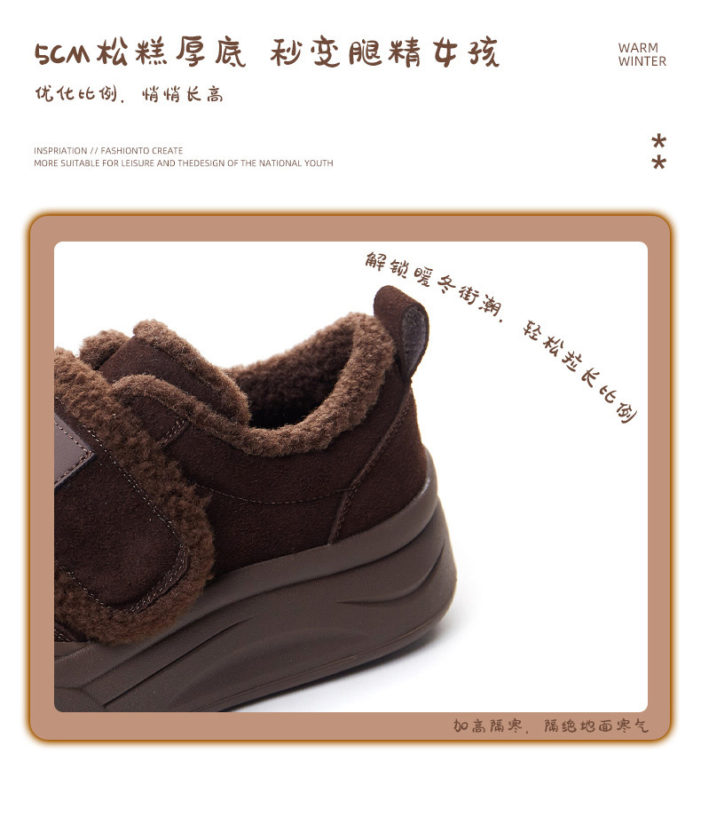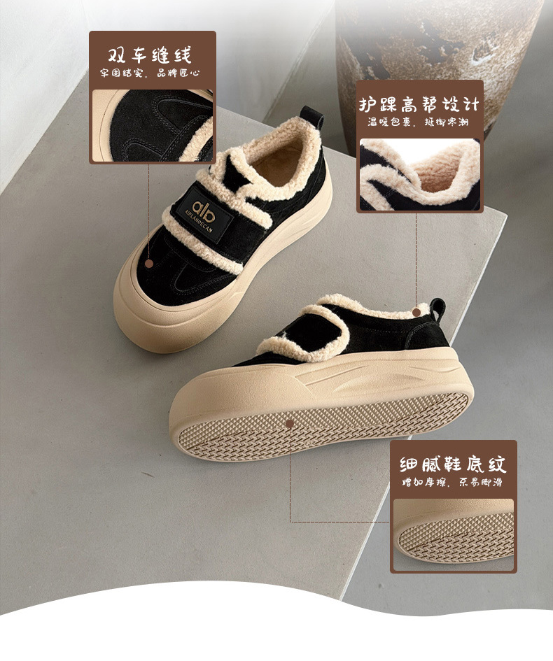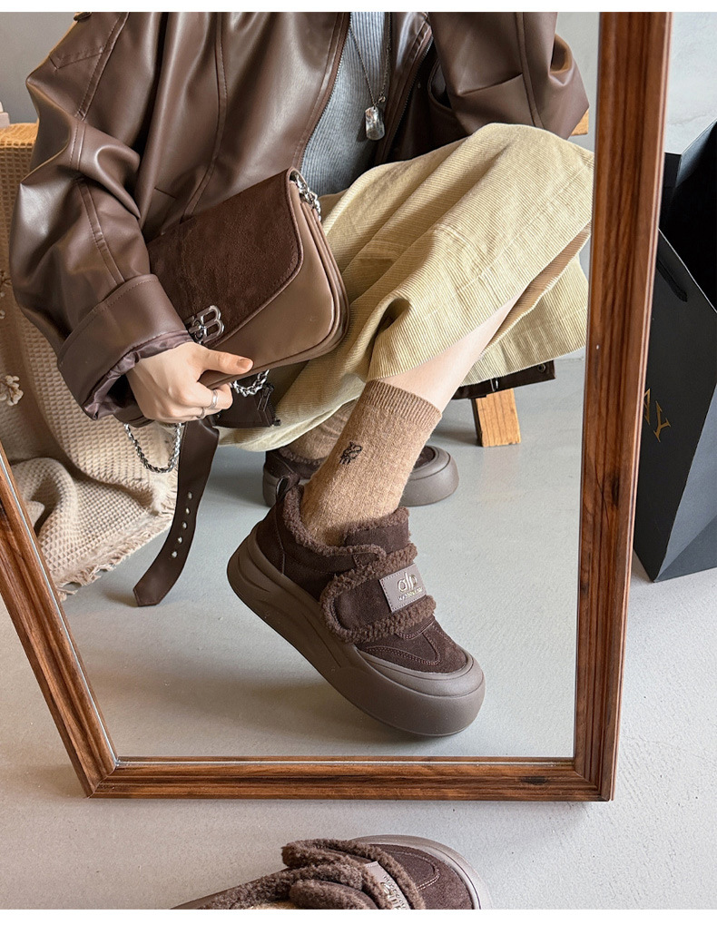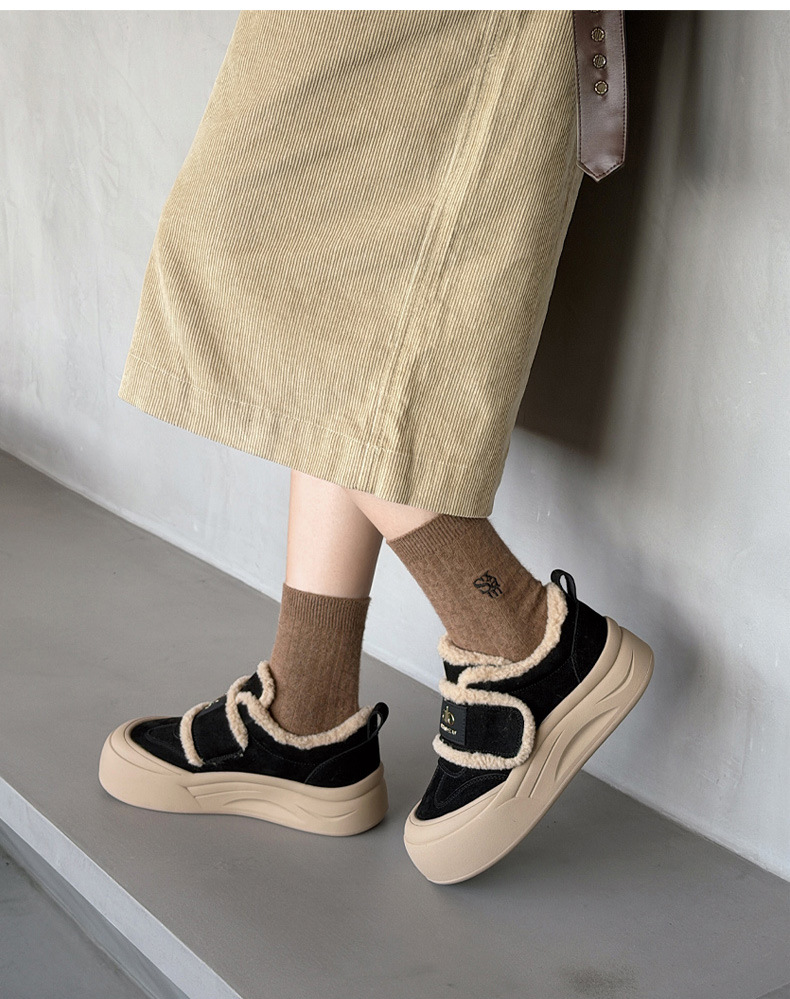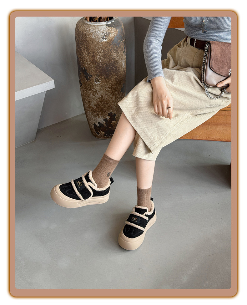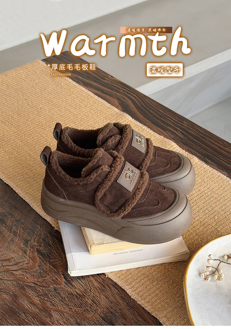 두꺼운 밑창, 부드러운 밑창, 여성을 위한 트렌디한 모피 캐주얼 신발, 2025년 신상 겨울 벨벳 두꺼운 가죽 면화 및 운동화