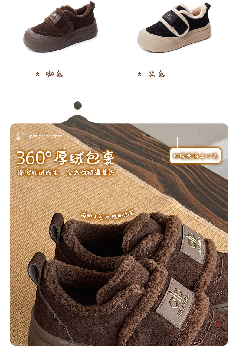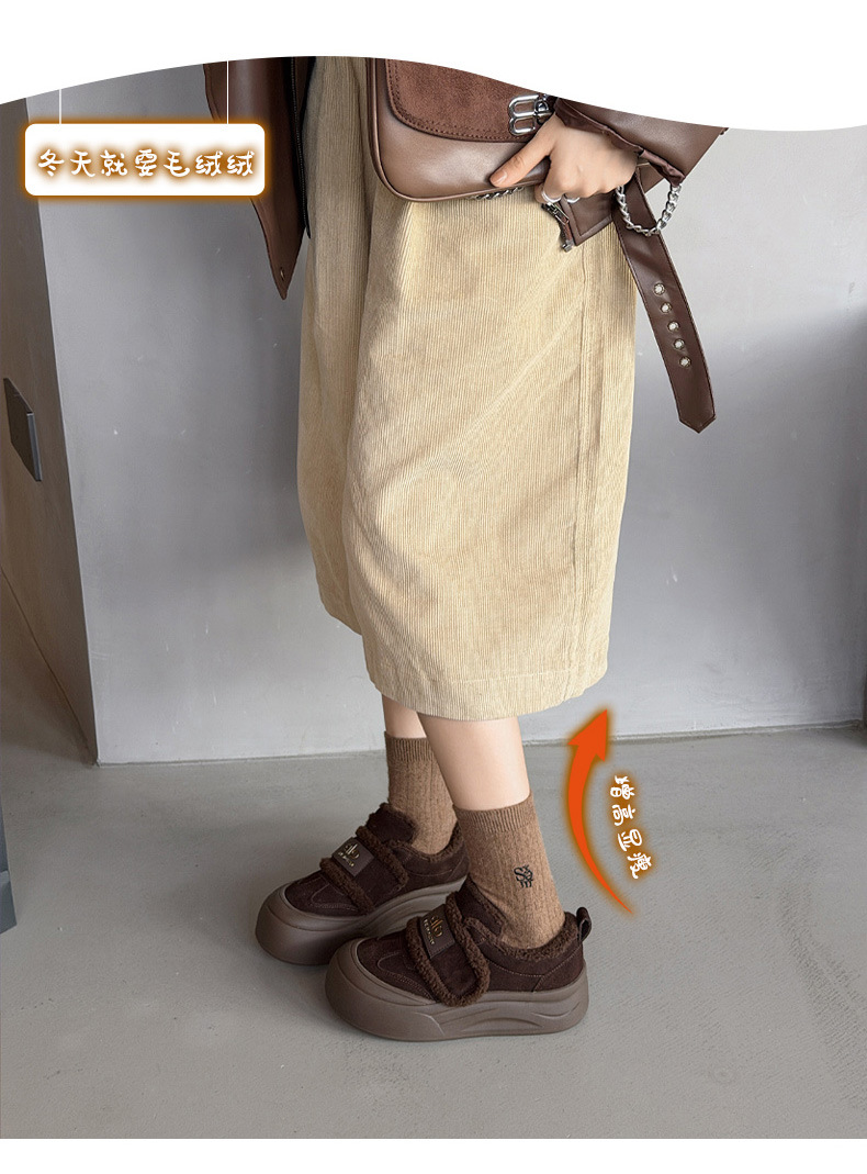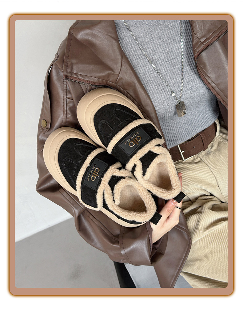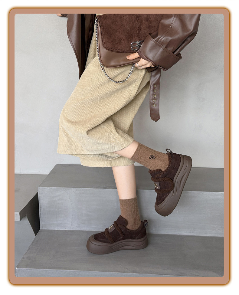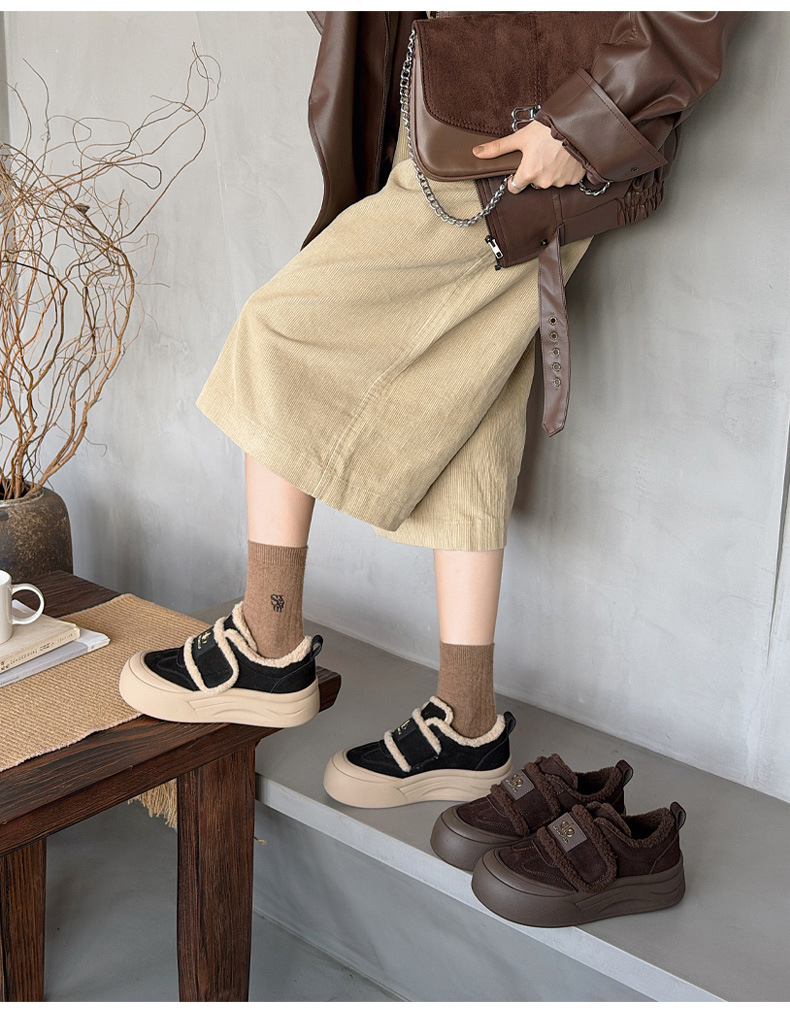 두꺼운 밑창, 부드러운 밑창, 여성을 위한 트렌디한 모피 캐주얼 신발, 2025년 신상 겨울 벨벳 두꺼운 가죽 면화 및 운동화