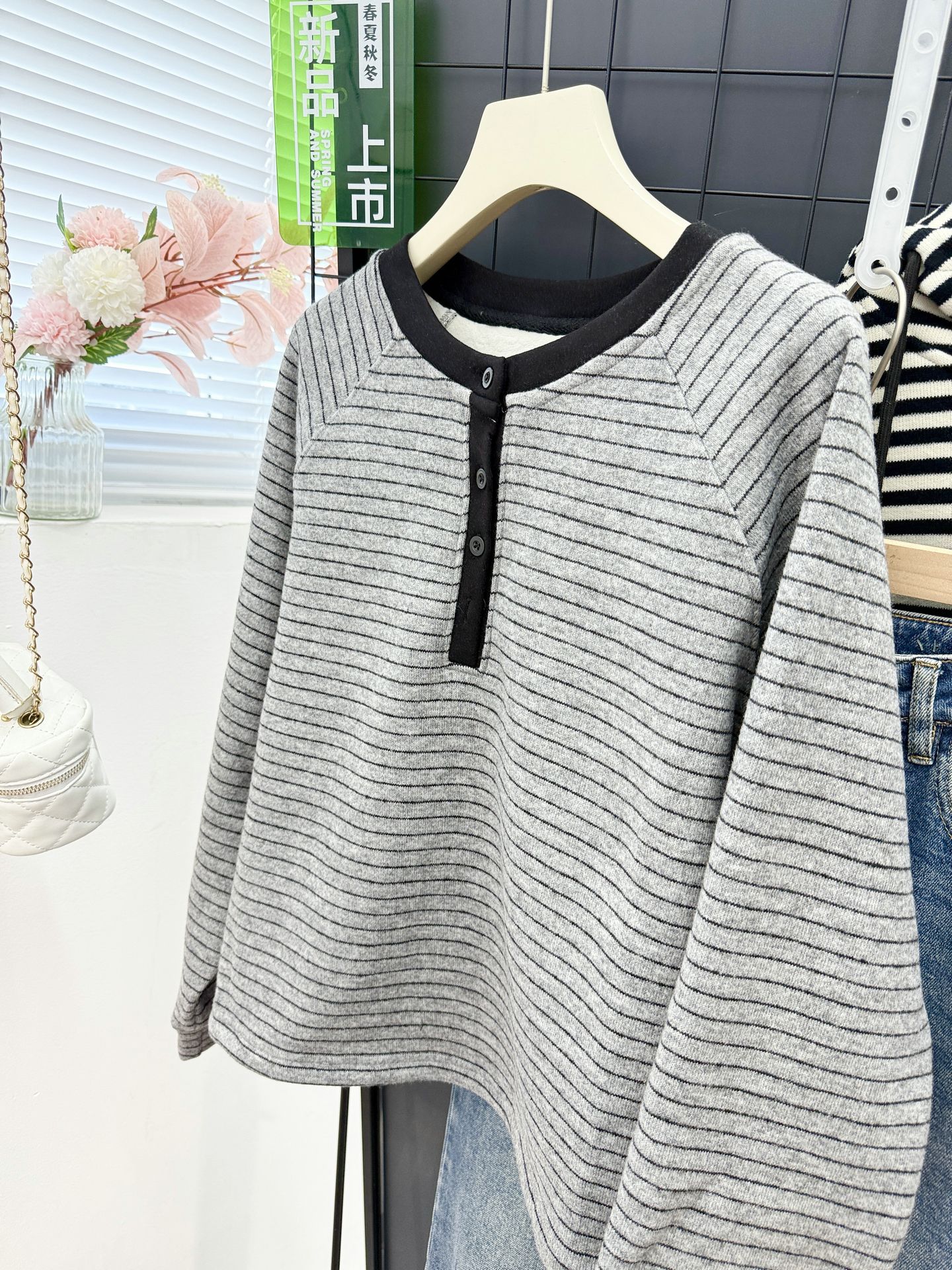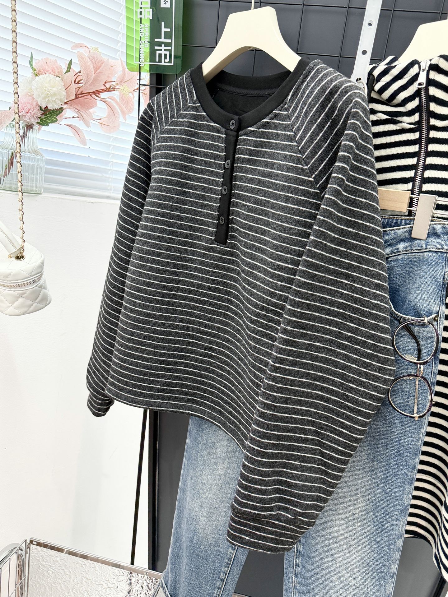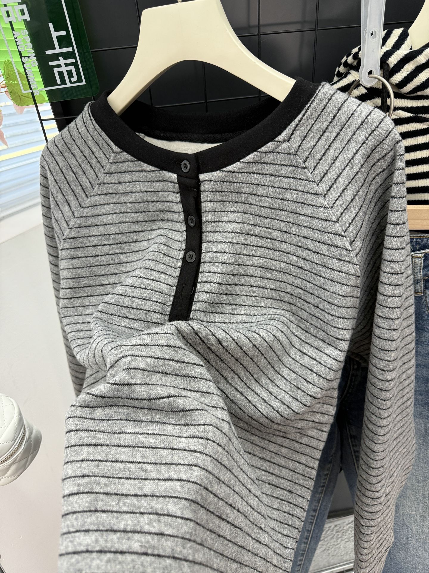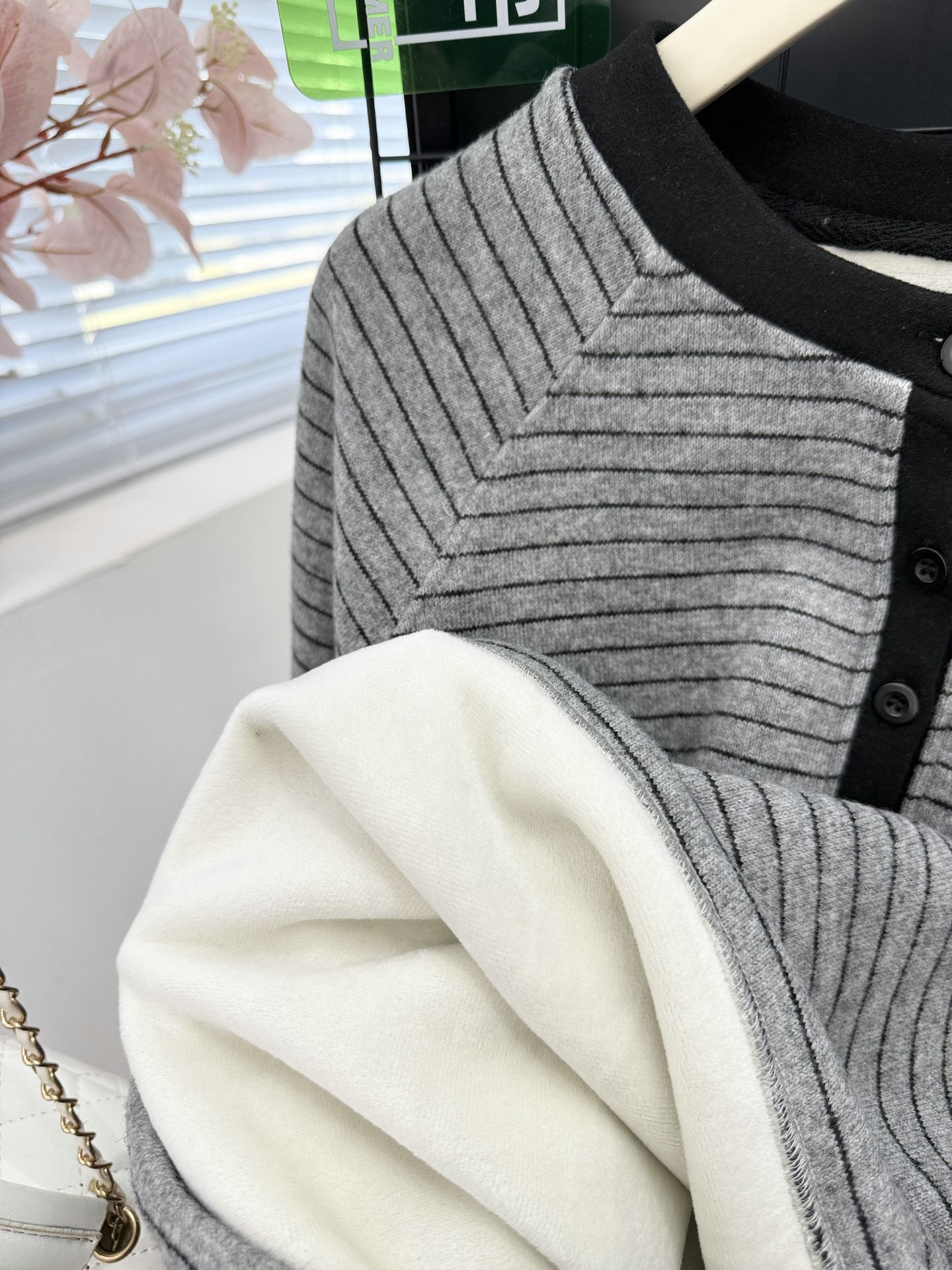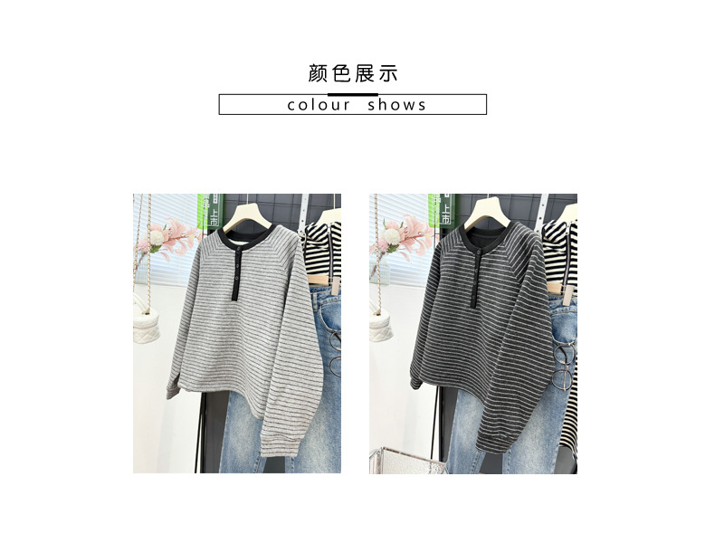 겨울 새로운 한국 스타일 느슨한 대형 지방 mm 캐주얼 게으른 스타일 대비 색상 긴팔 줄무늬 벨벳 스웨트 셔츠