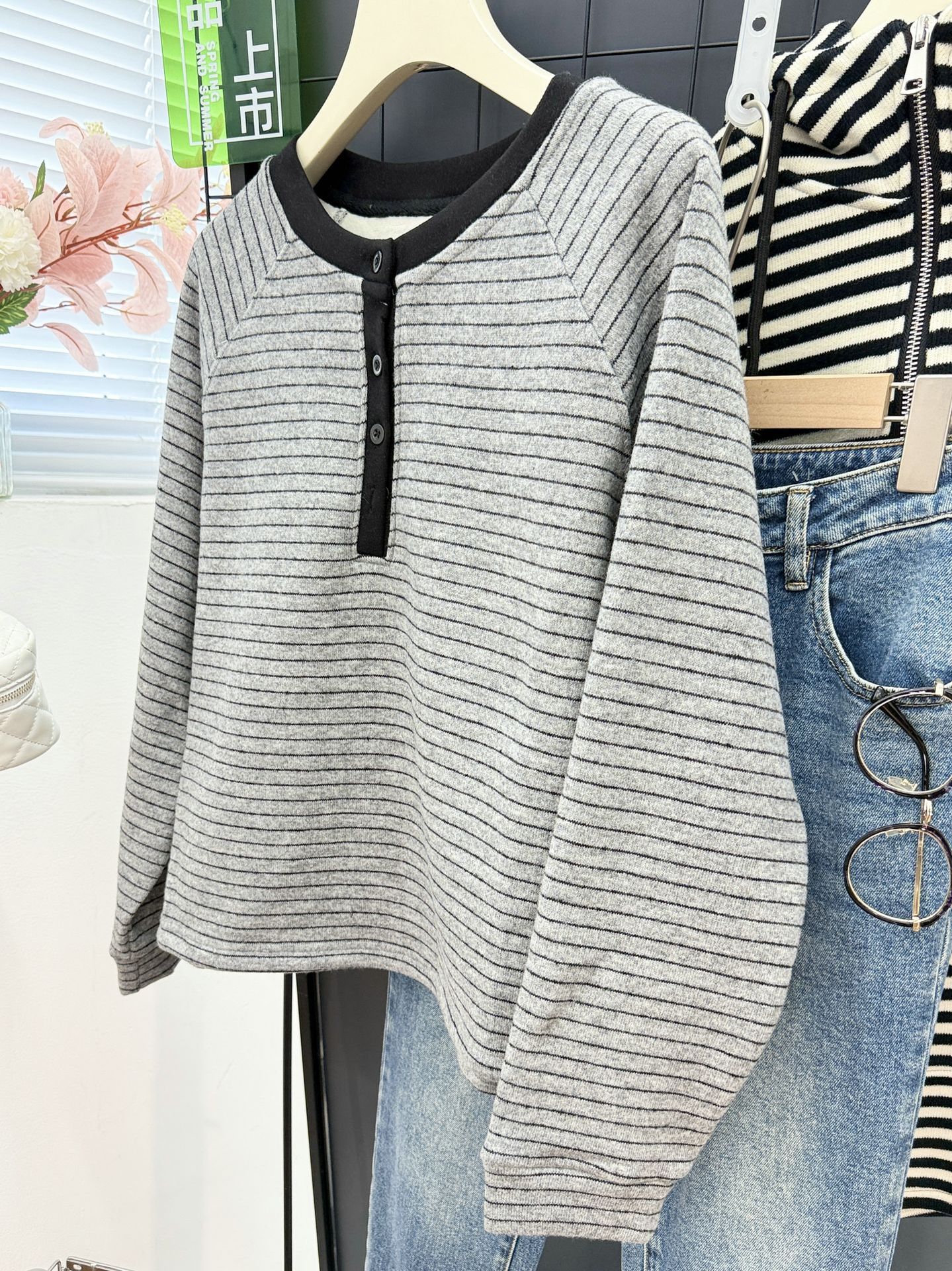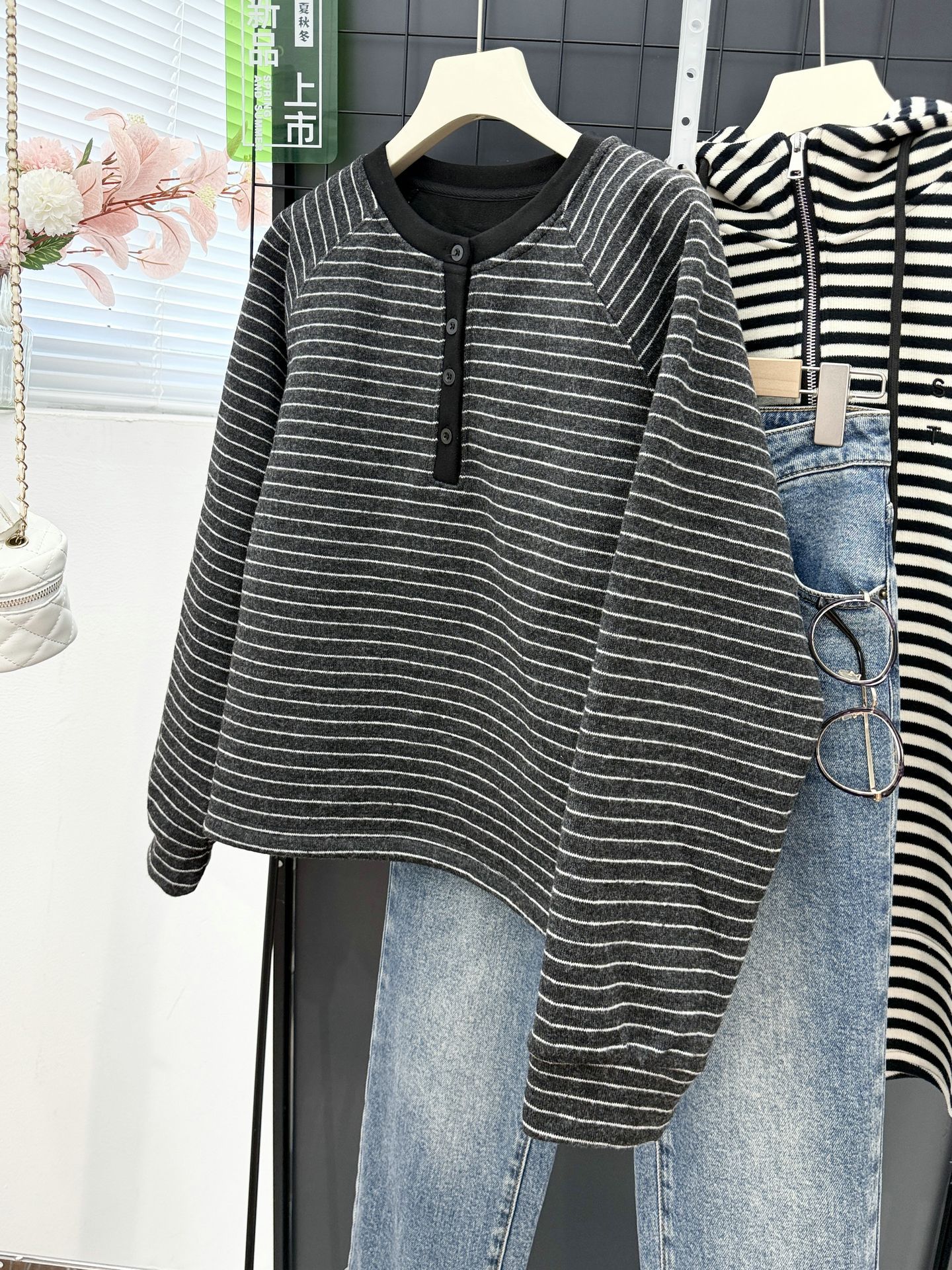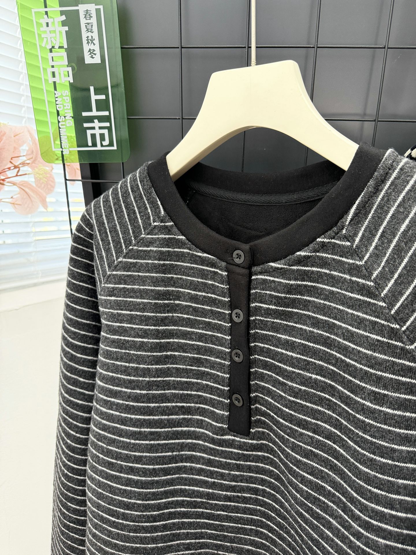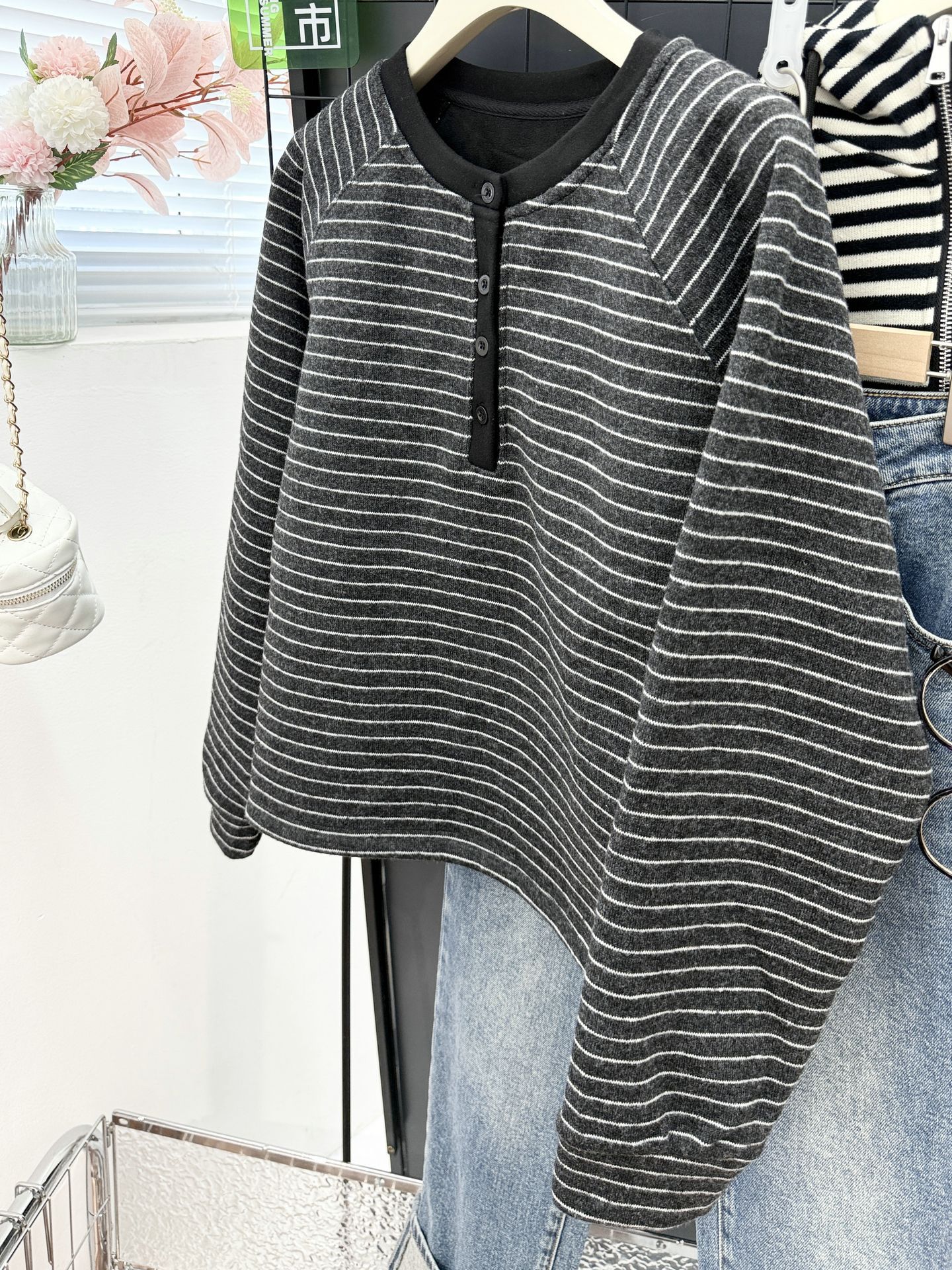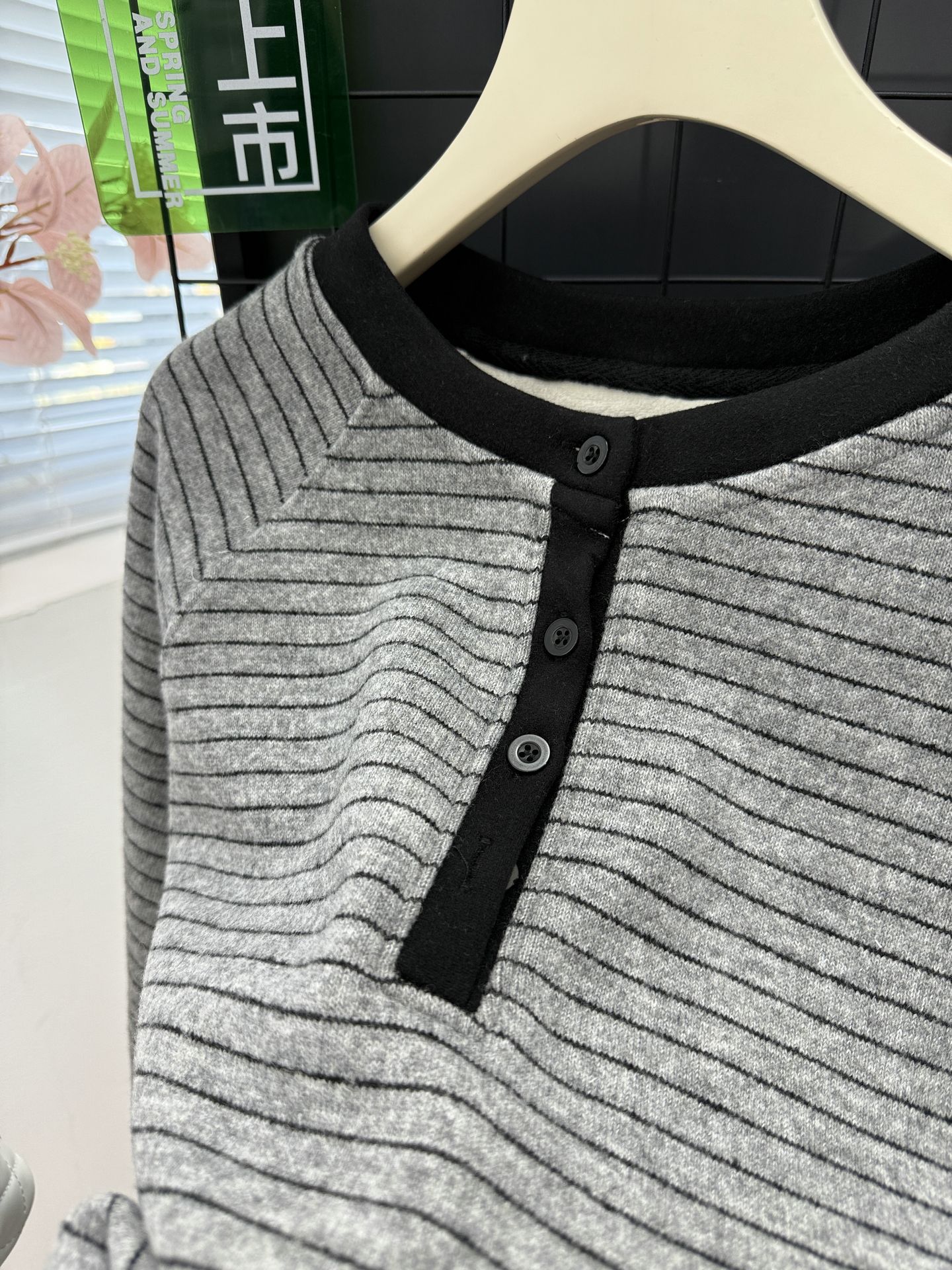 겨울 새로운 한국 스타일 느슨한 대형 지방 mm 캐주얼 게으른 스타일 대비 색상 긴팔 줄무늬 벨벳 스웨트 셔츠