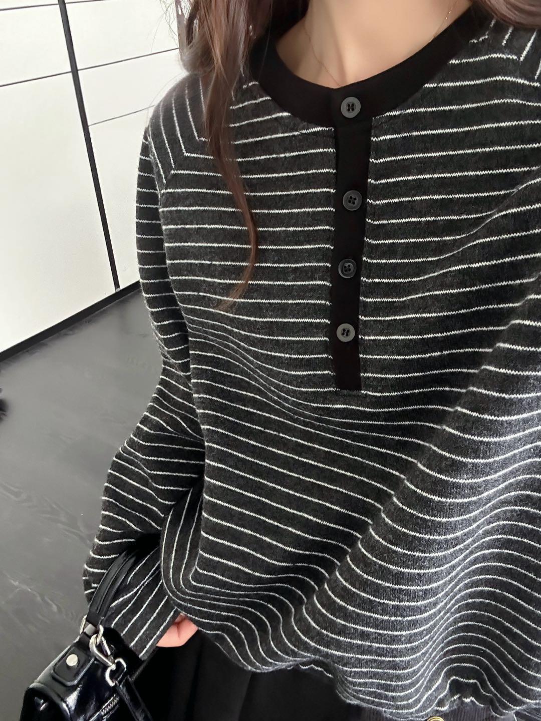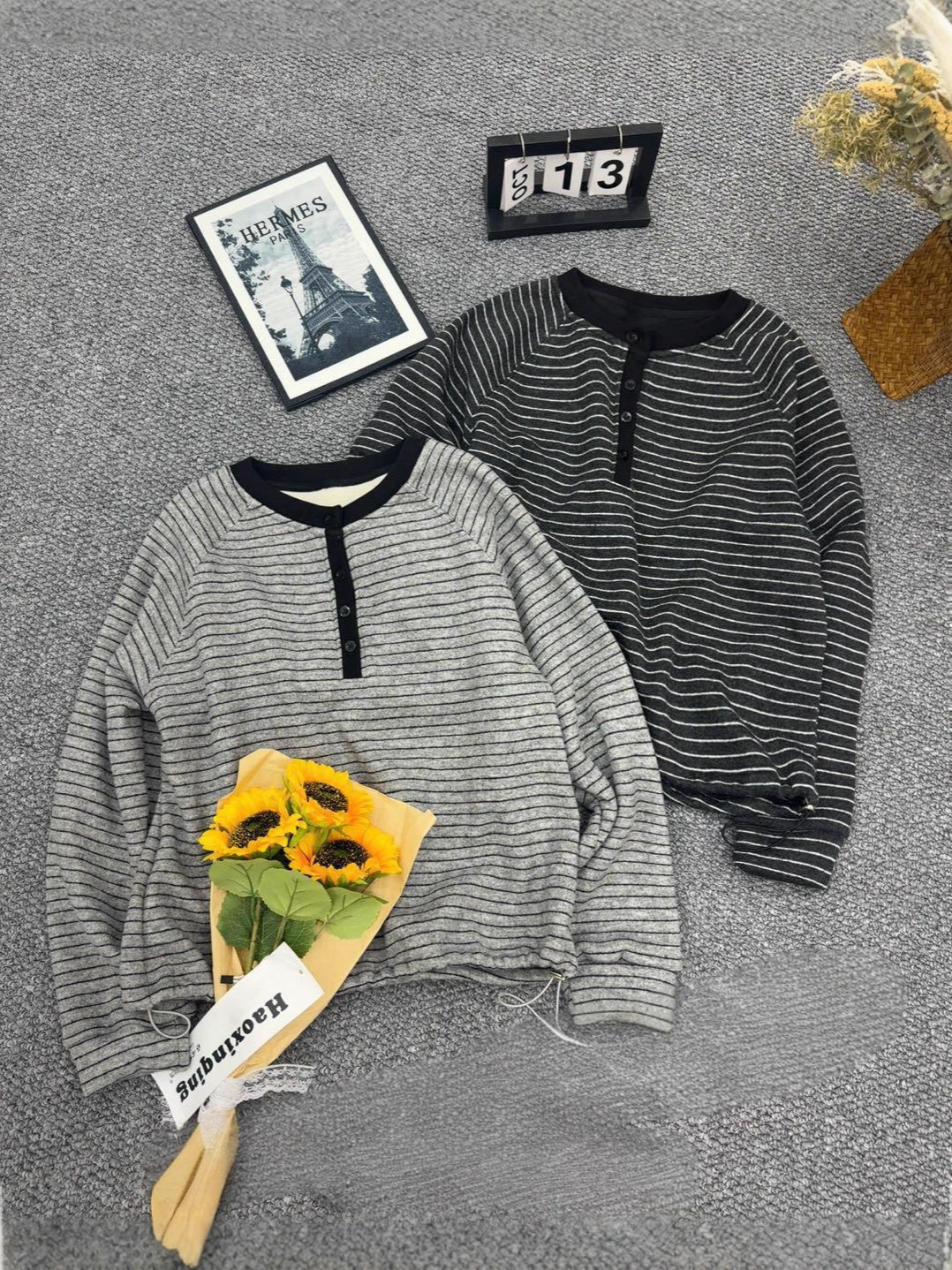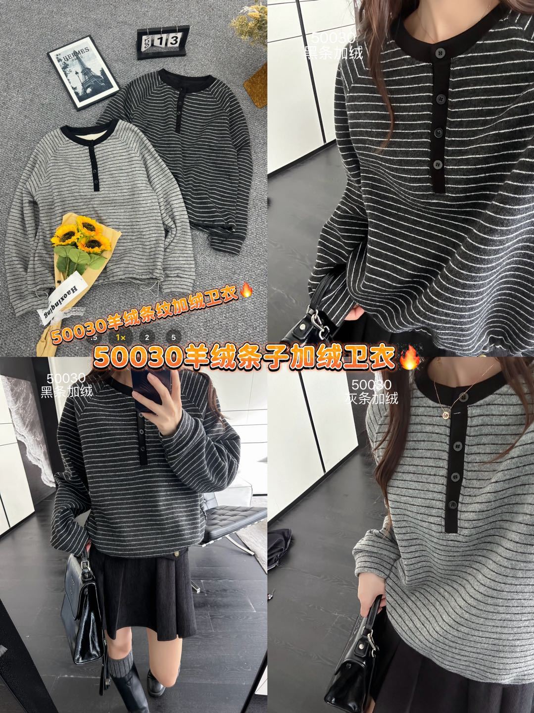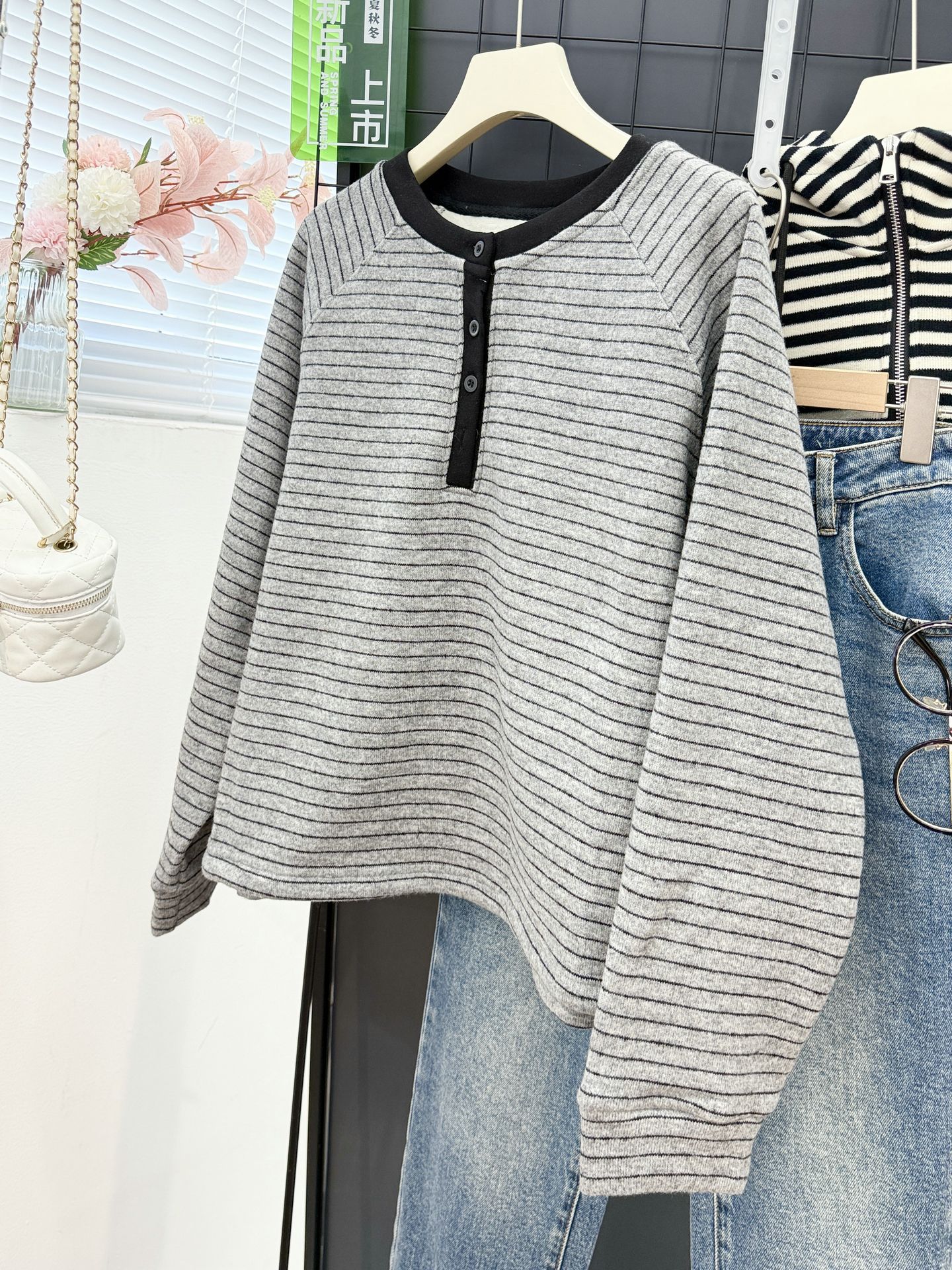 겨울 새로운 한국 스타일 느슨한 대형 지방 mm 캐주얼 게으른 스타일 대비 색상 긴팔 줄무늬 벨벳 스웨트 셔츠