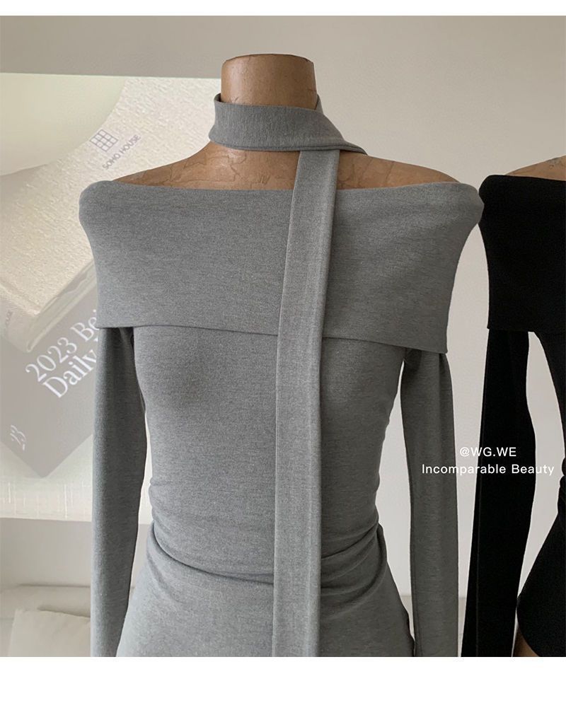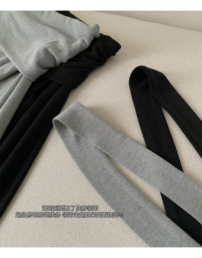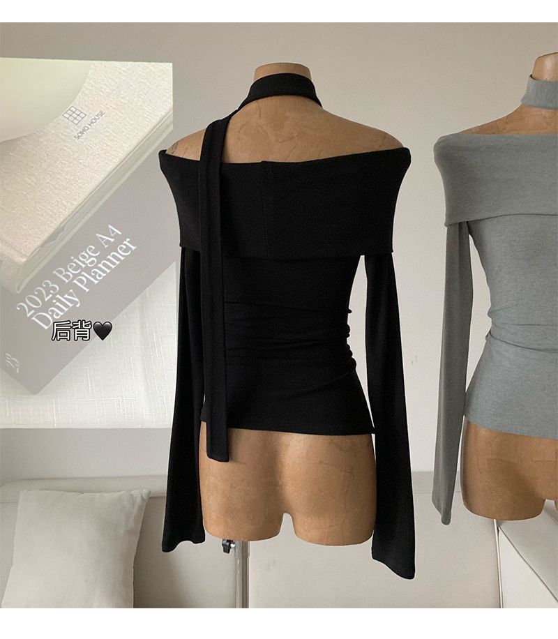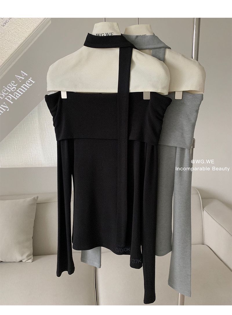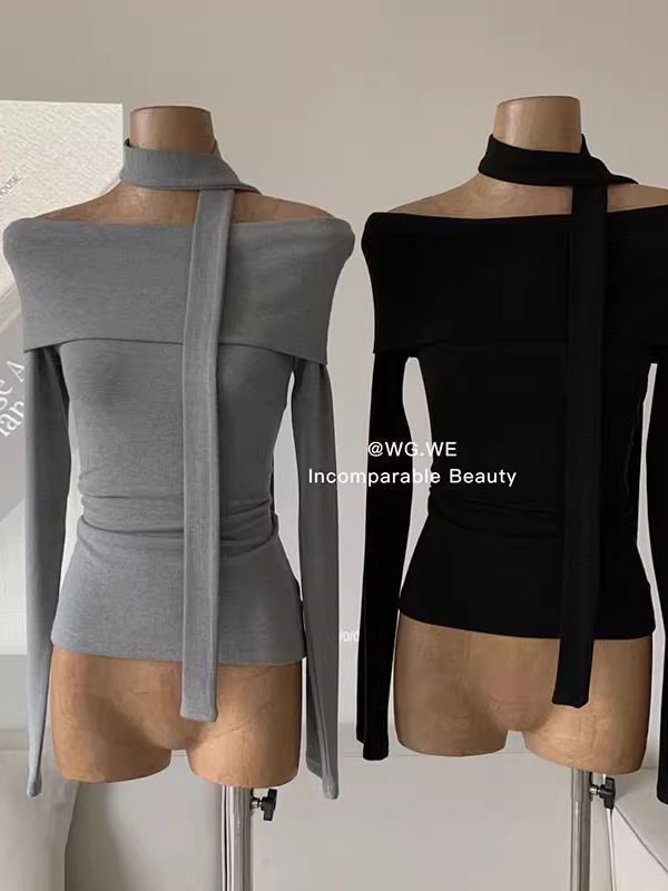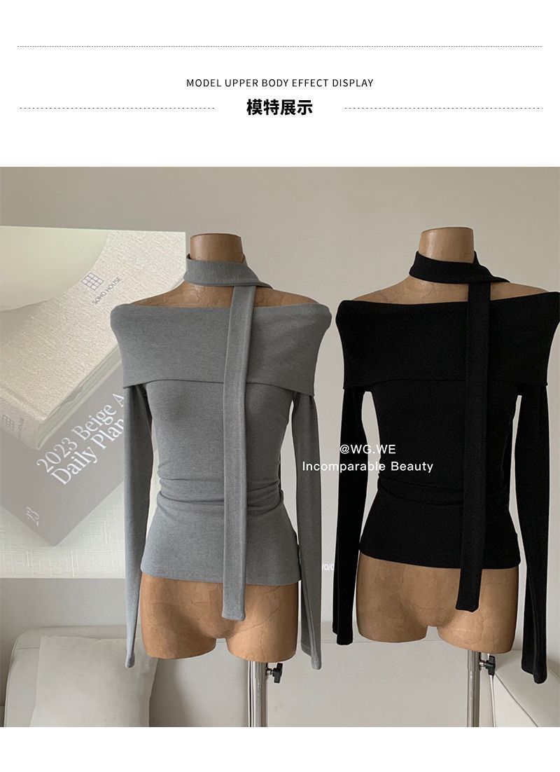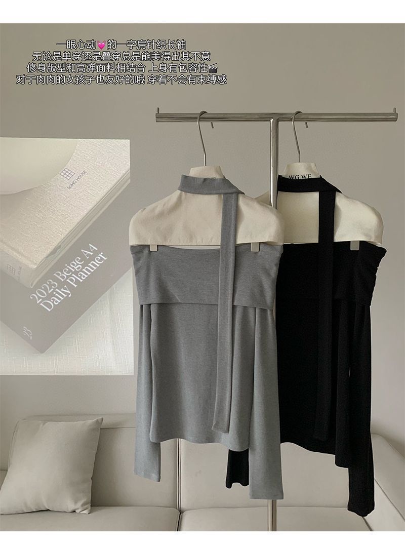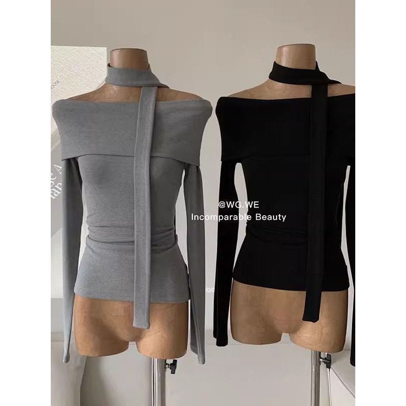초가을 오프숄더 티셔츠 여성 디자인 니치 슬림핏 셔츠 라펠 원숄더 긴팔 모달 코튼 탑