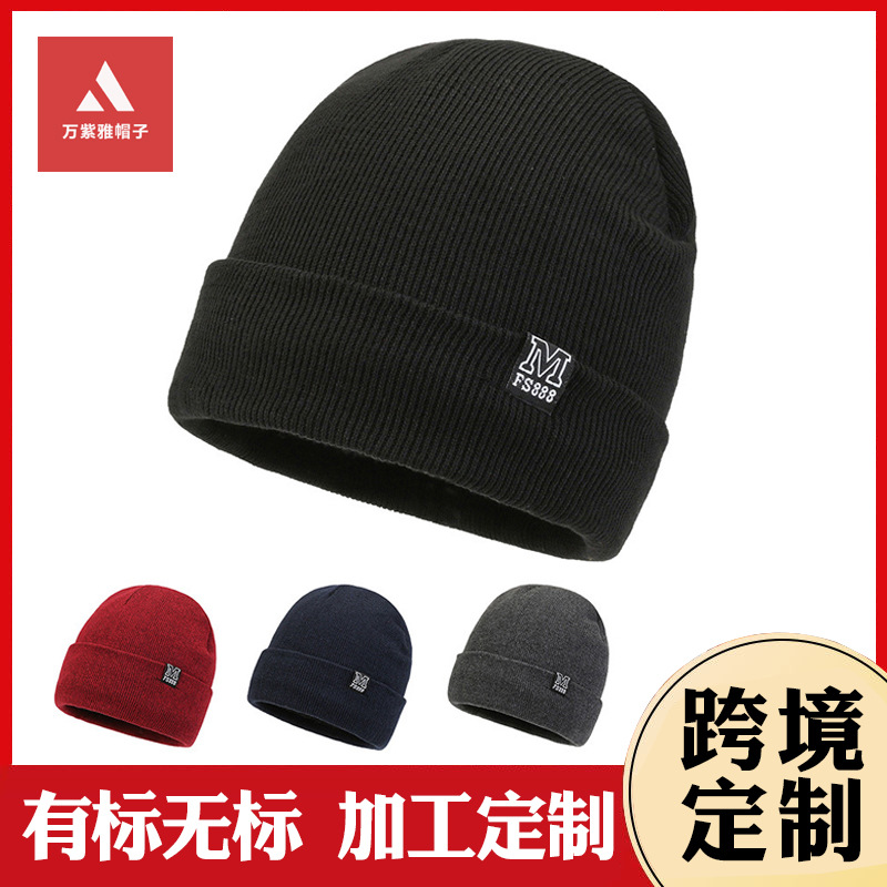 국경 간 모자 사용자 정의 2025 겨울 새로운 남성 패션 니트 모자 두꺼운 벨벳 사이클링 따뜻한 모직 모자