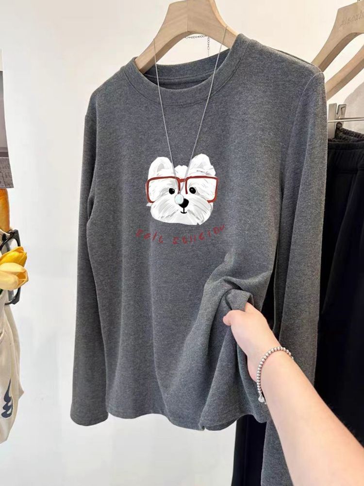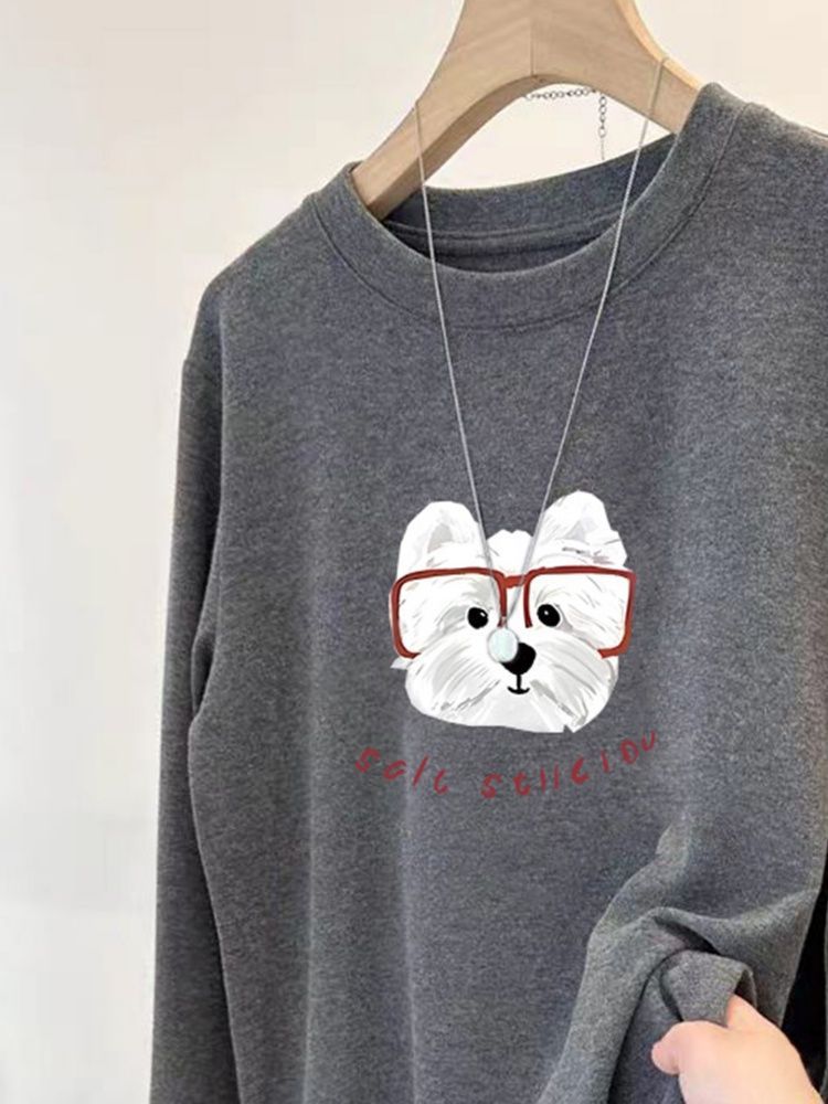 | 颜色 | 灰色红框眼镜小狗磨毛款 | 尺码 | S, M, L, XL, 2XL |