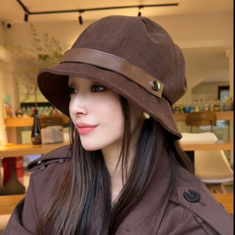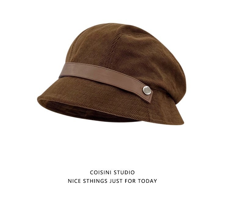 여성용 신형 코듀로이 피셔맨 모자, 하이엔드 모자, 작은 가을 겨울 모자, 여성용 베레모