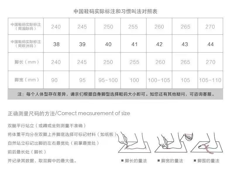 | 颜色 | 01, 02, 03, 04, 05, 06, 07, 08 | 尺码 | 38, 39, 40, 41, 42, 43, 44, 45, 46定做不退换 |