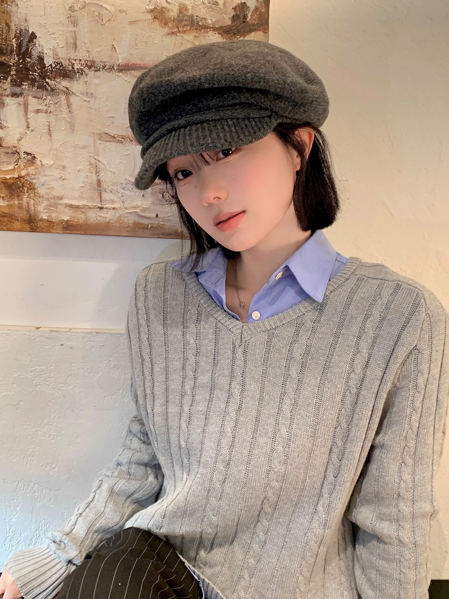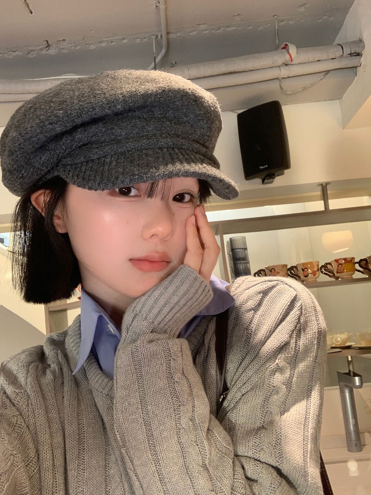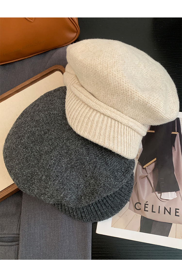 日系复古毛呢针织八角贝雷帽女大头围显脸小文艺百搭云朵画家帽子