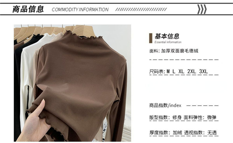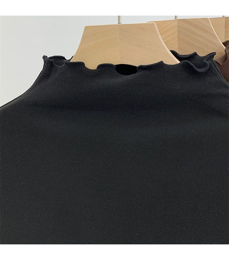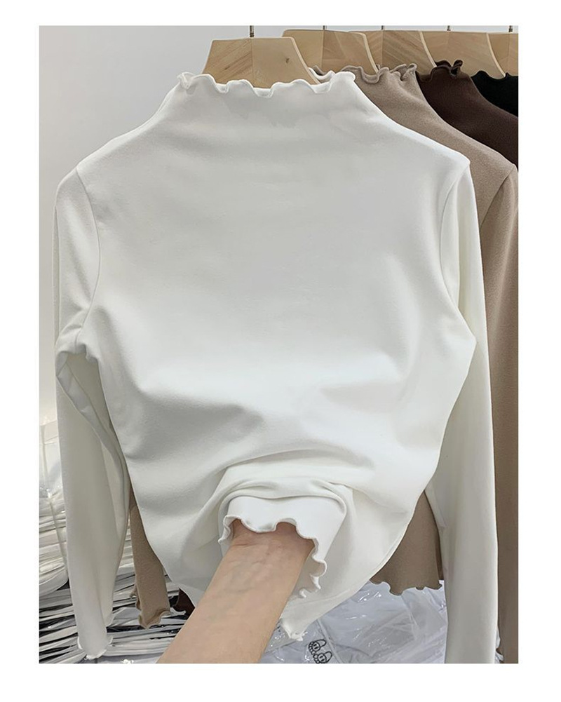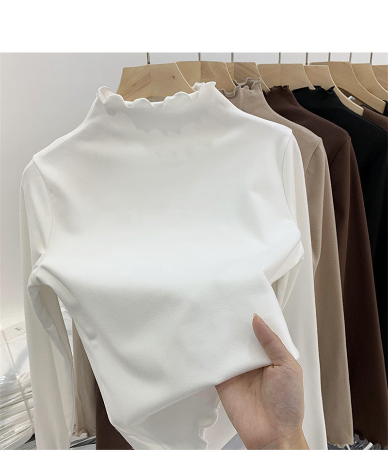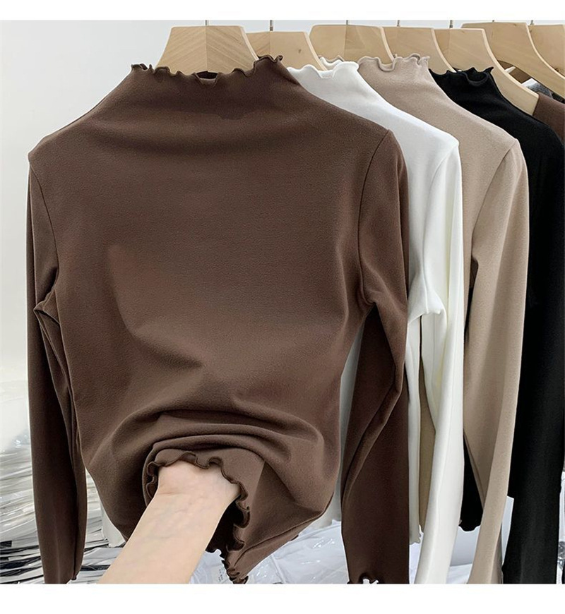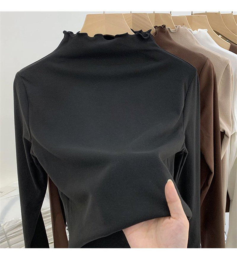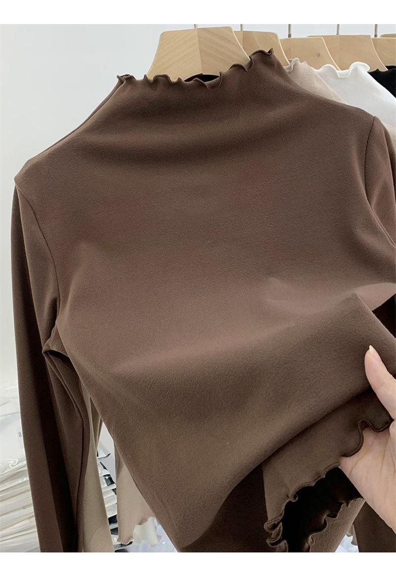 여성을위한 DeRong 기모 긴팔 바닥 셔츠 2025 새로운 가을, 겨울 따뜻한 하프 터틀넥 학생 탑