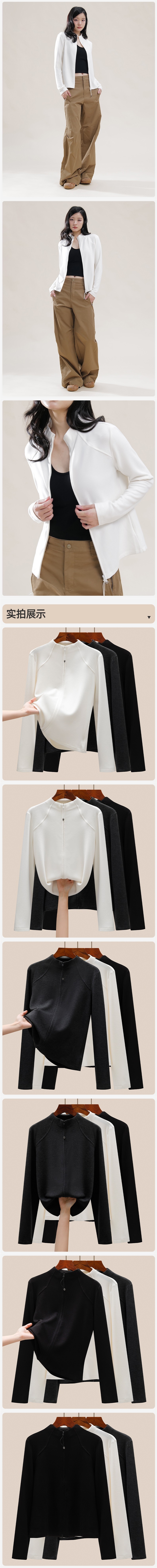 여성용 하프 터틀넥 벨벳 베이스 레이어, 지퍼 가디건, 스탠드 칼라 스웨트 셔츠, 슬림핏 스포츠 탑