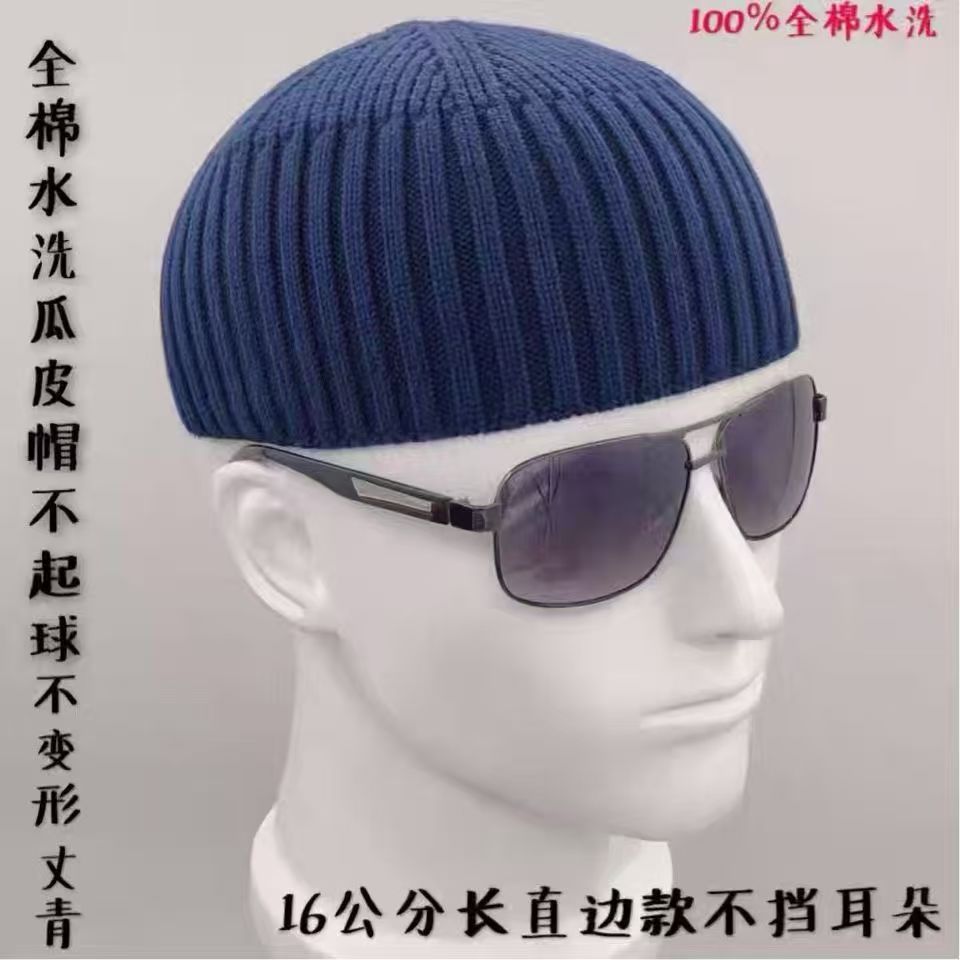 짧은 돔 니트 남성용 두꺼운 헬멧 착용 가능 따뜻한 멜론 스킨 모자 모직 모자 가을 겨울 남성용 대머리 모자 겨울