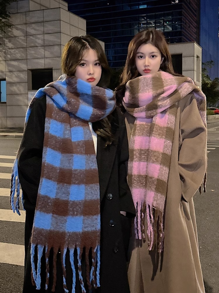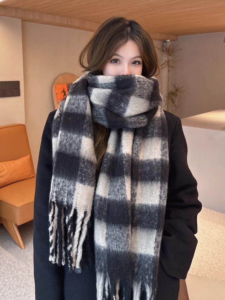 모헤어 겨울 새로운 다목적 하이 엔드 격자 무늬 스카프 따뜻한 스카프 커플 스카프 남성 두꺼운 스카프 목도리