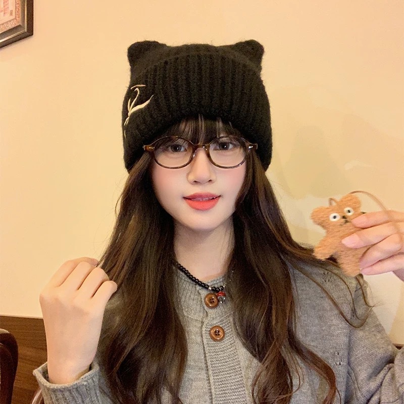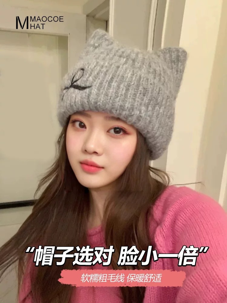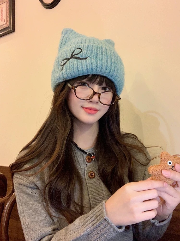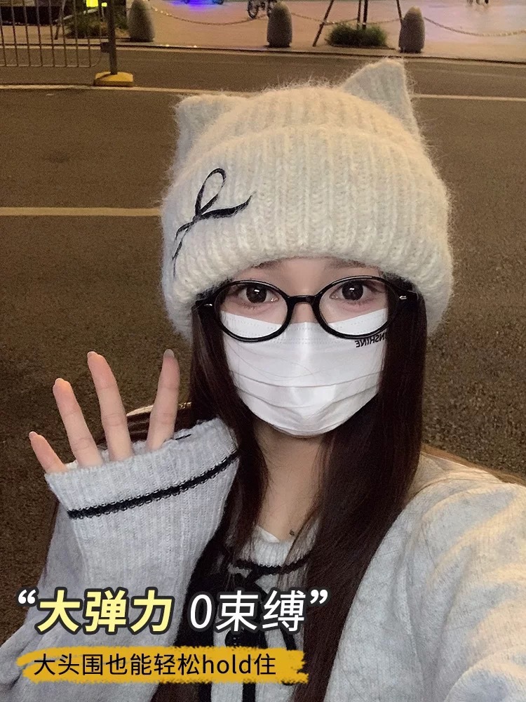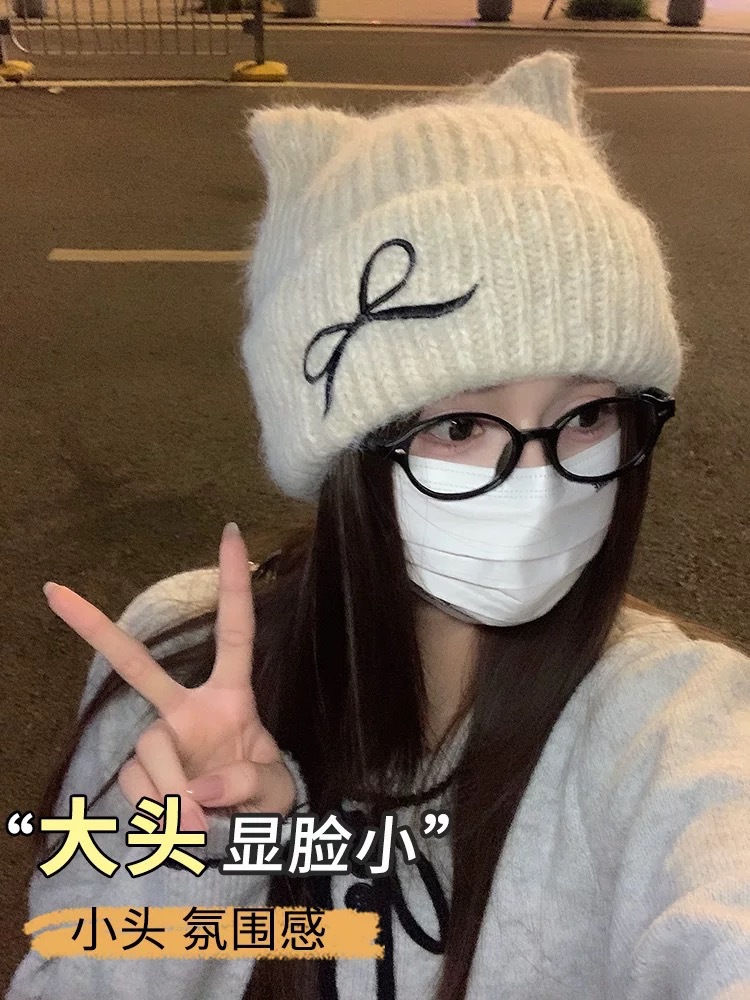 크로스보더 리본 자수 모직 모자, 겨울 따뜻한 모직 모자, 여성 캐주얼 다용도 바오터우 모자, 패셔너블한 방한 모자