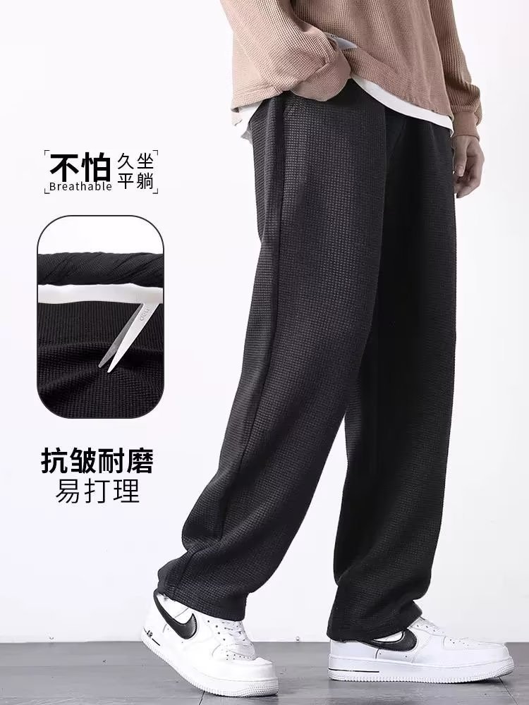쇼핑몰 폐쇄 저렴한 와플 벨벳 캐주얼 바지 남성용 루즈 스트레이트 스포츠 드레이프 스웨트 팬츠