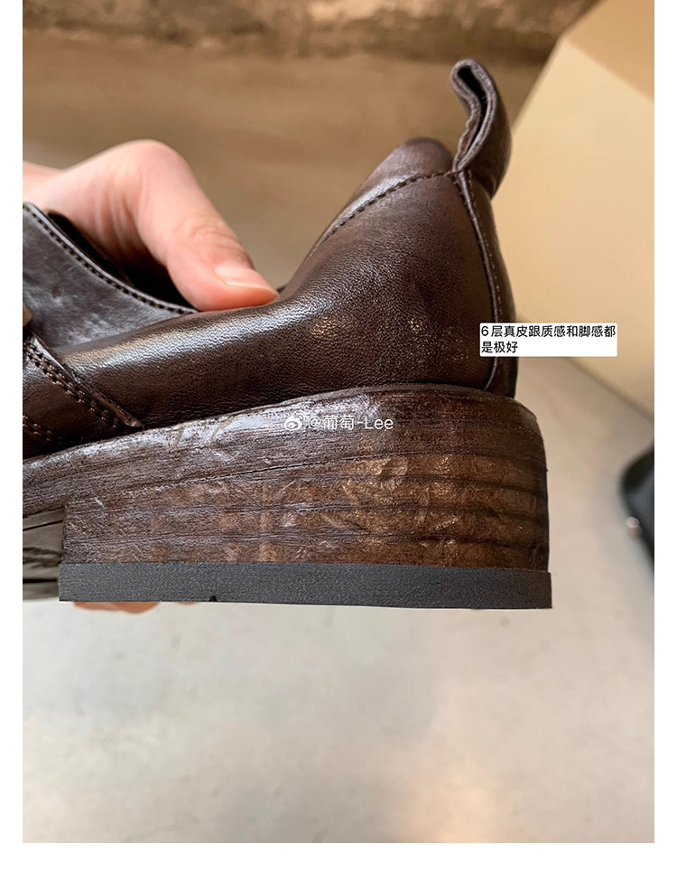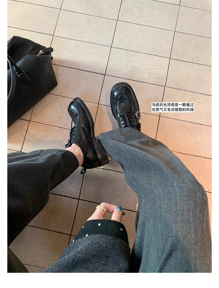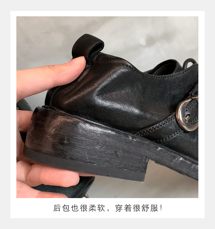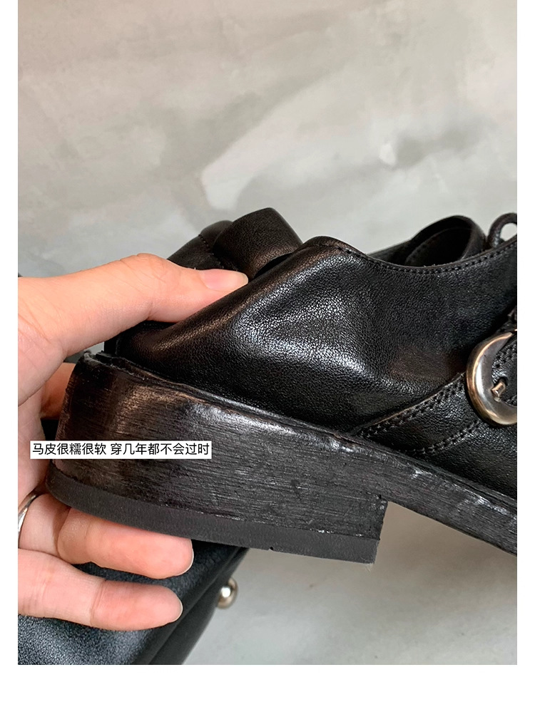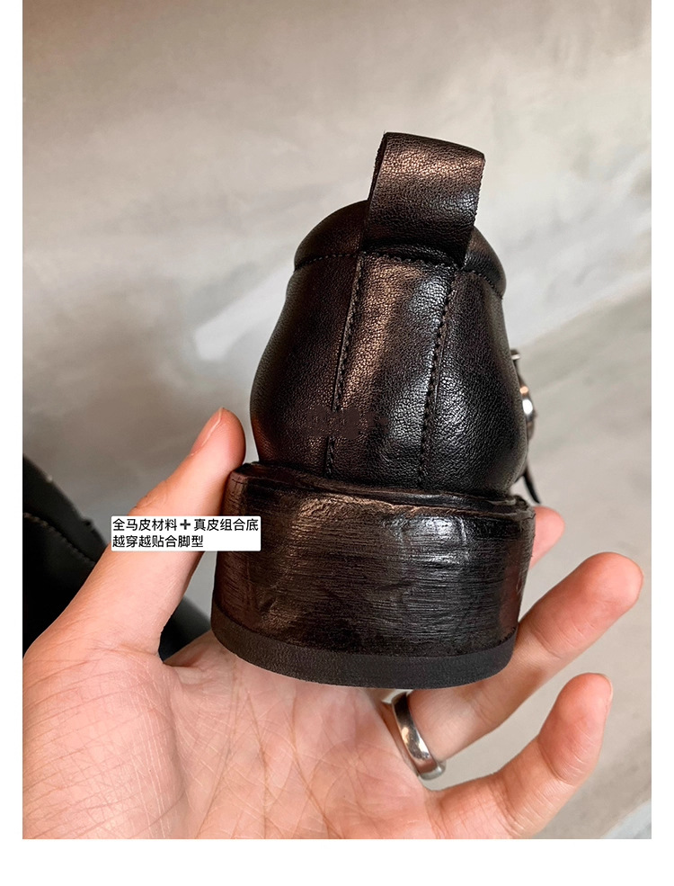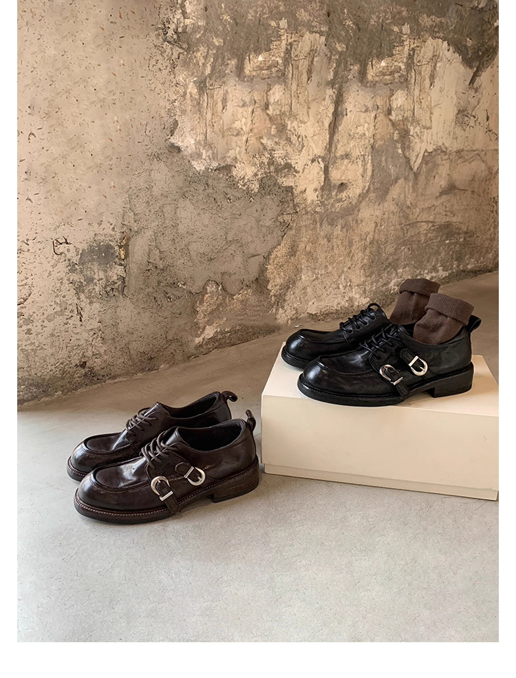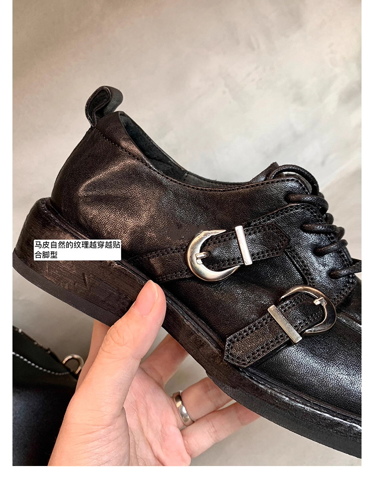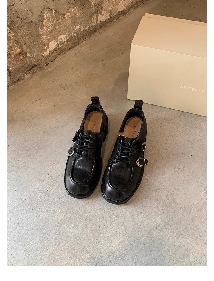 소가죽 버전 ~ 레트로 틈새 더블 벨트 버클 슈퍼 소프트 레이스 업 로퍼 여성 2025 새로운 두꺼운 굽 높이 작은 가죽 신발
