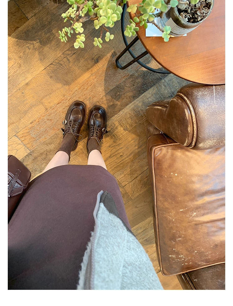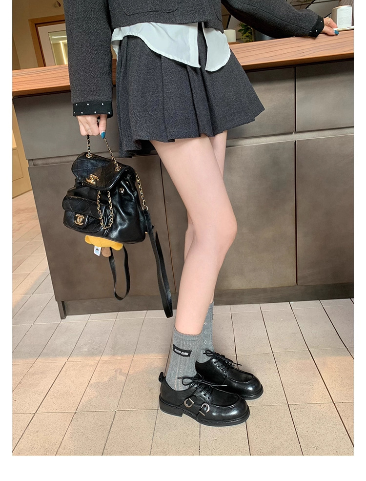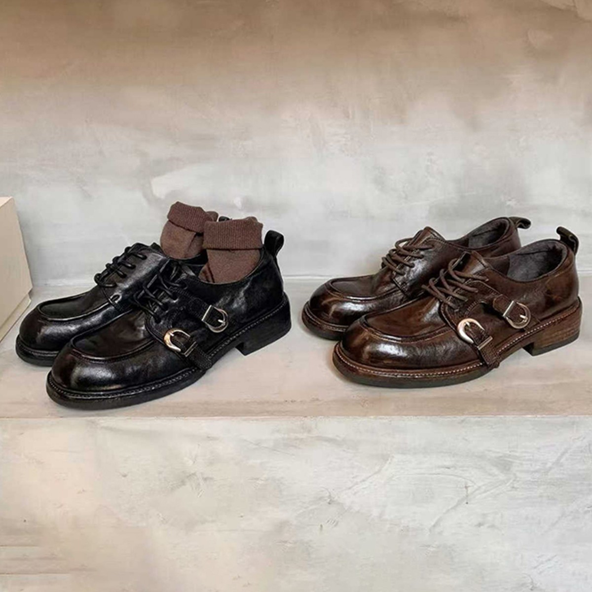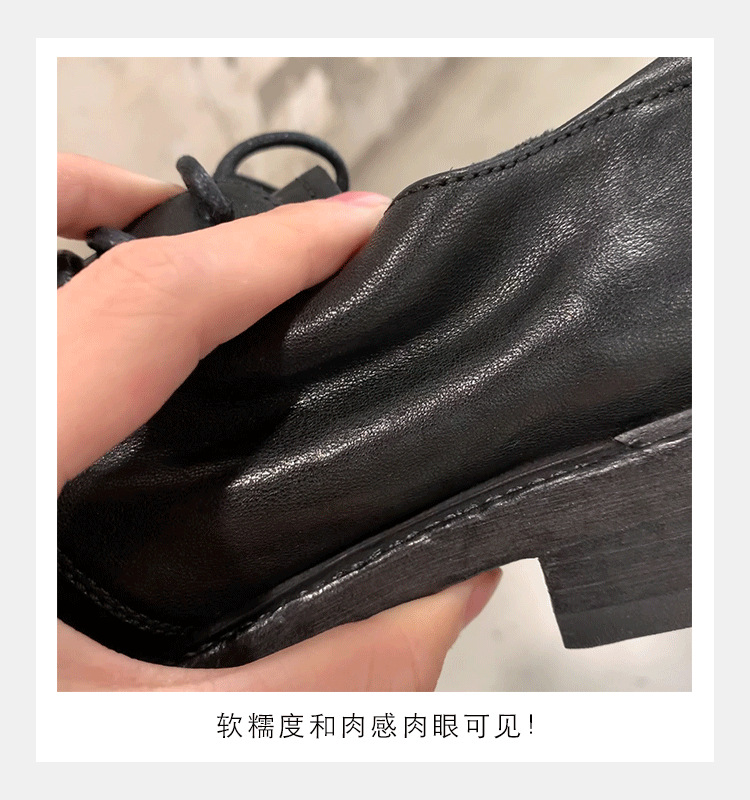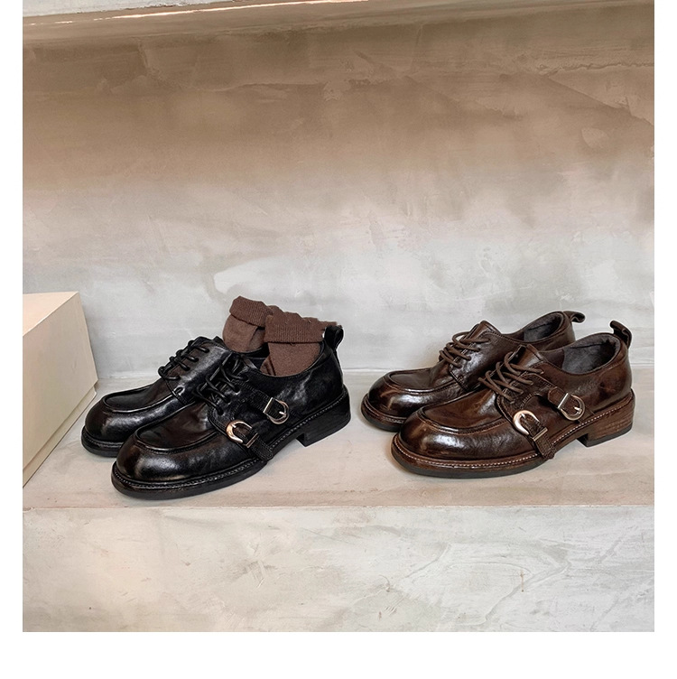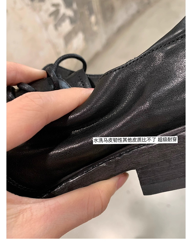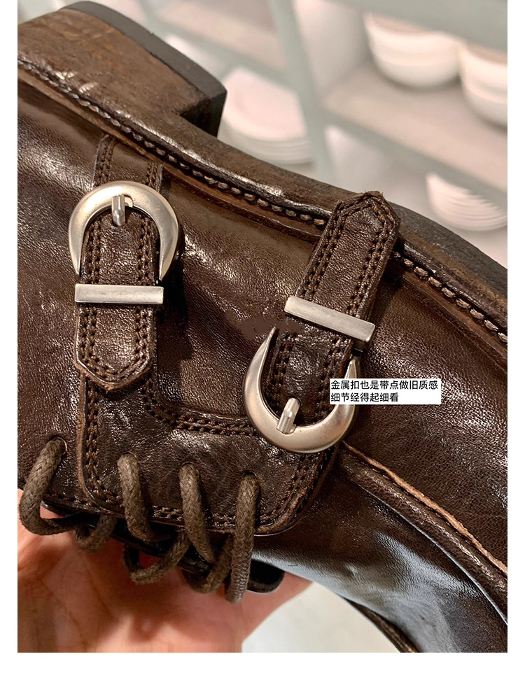 소가죽 버전 ~ 레트로 틈새 더블 벨트 버클 슈퍼 소프트 레이스 업 로퍼 여성 2025 새로운 두꺼운 굽 높이 작은 가죽 신발