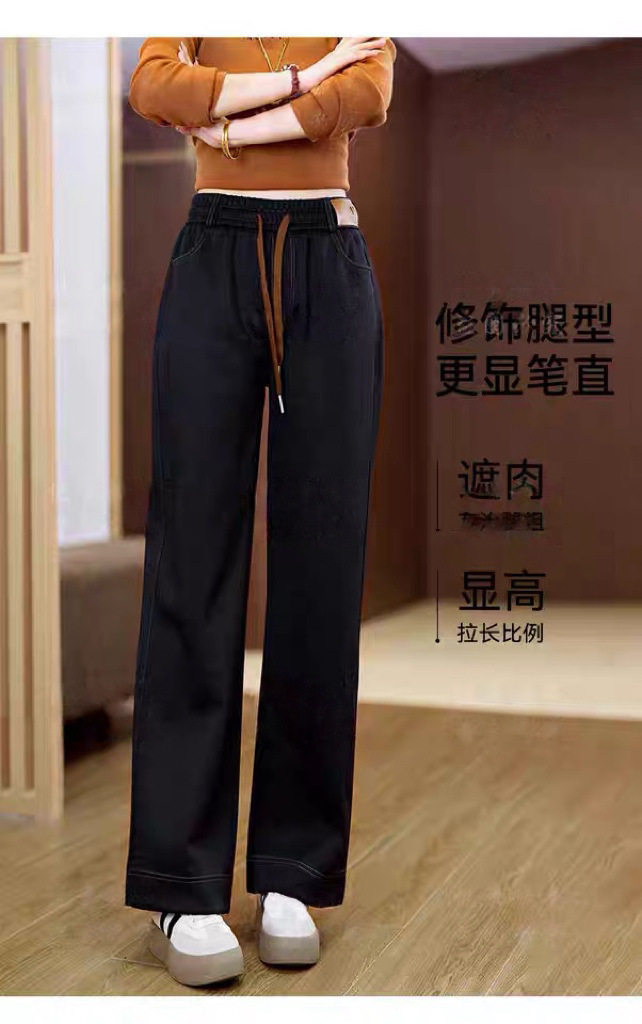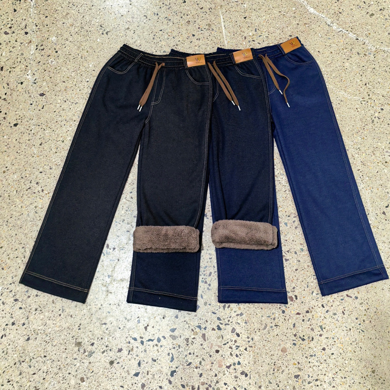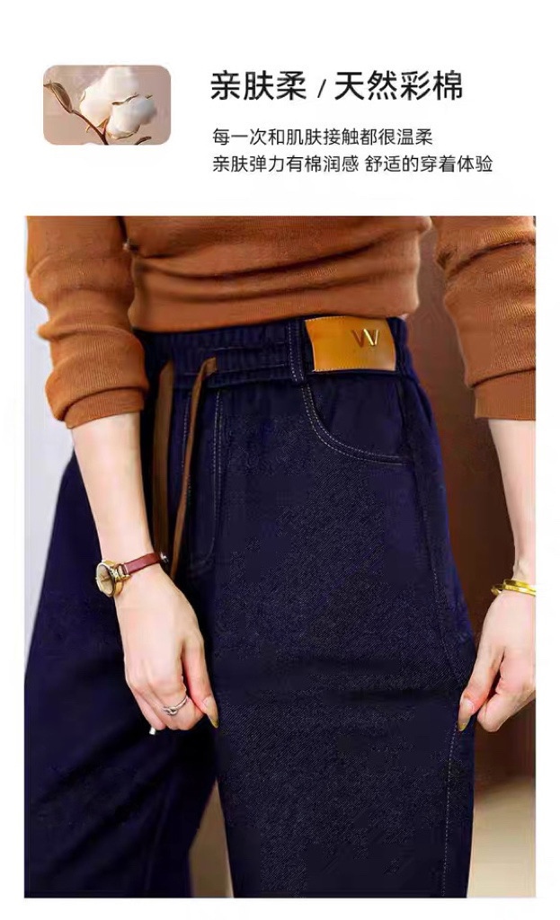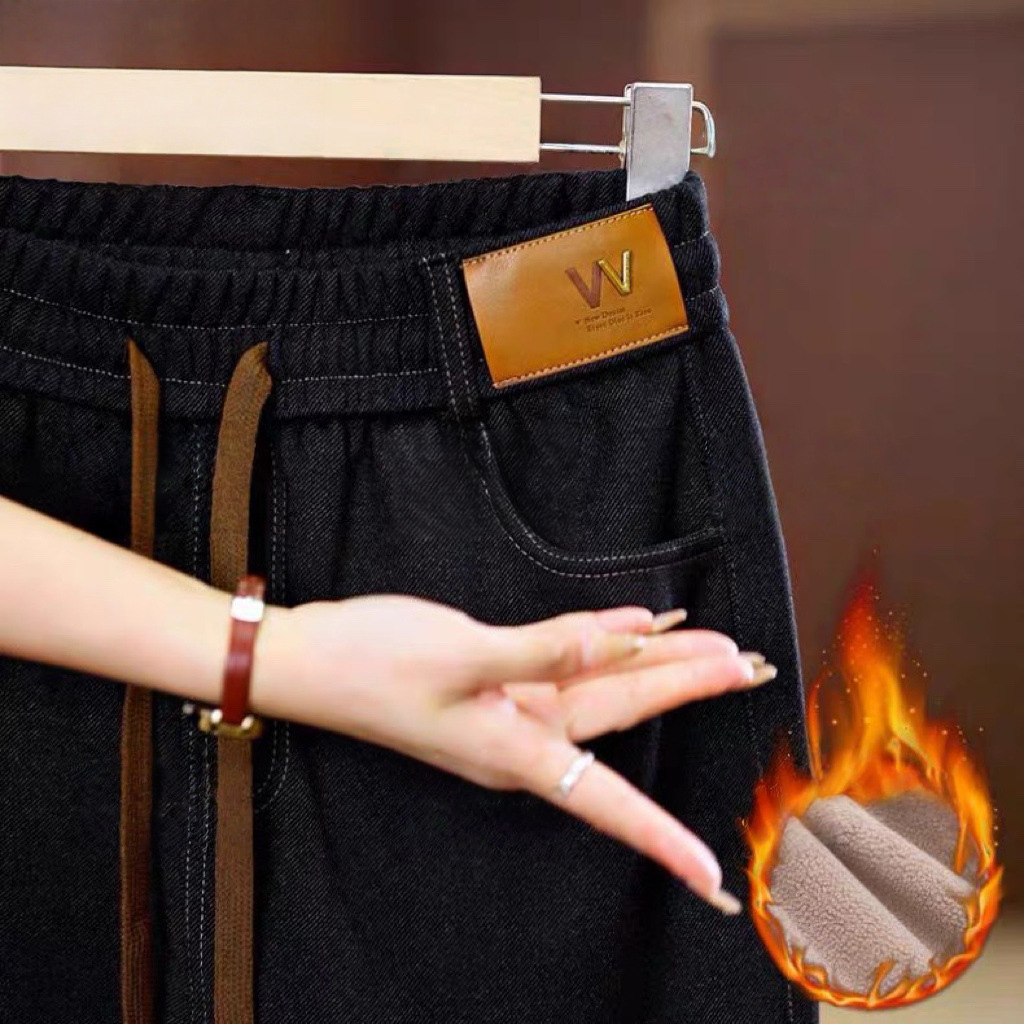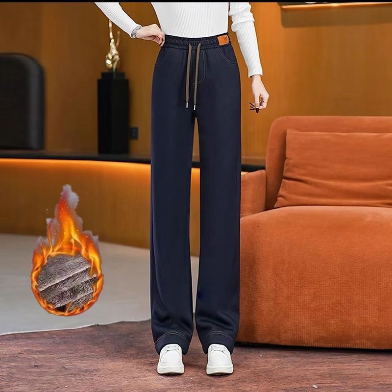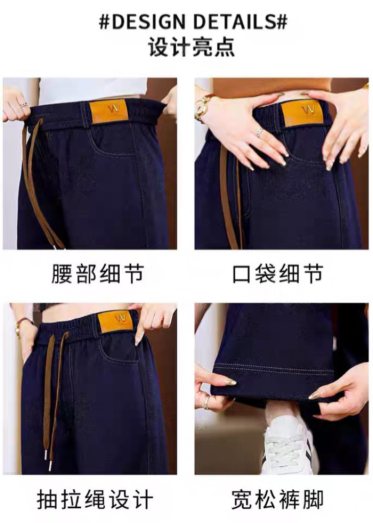여성용 신상 가을 겨울 스트레이트 팬츠, 벨벳 두꺼운 아우터 캐주얼 팬츠, 중년 및 노년층 엄마를 위한 대형 신축성 청바지