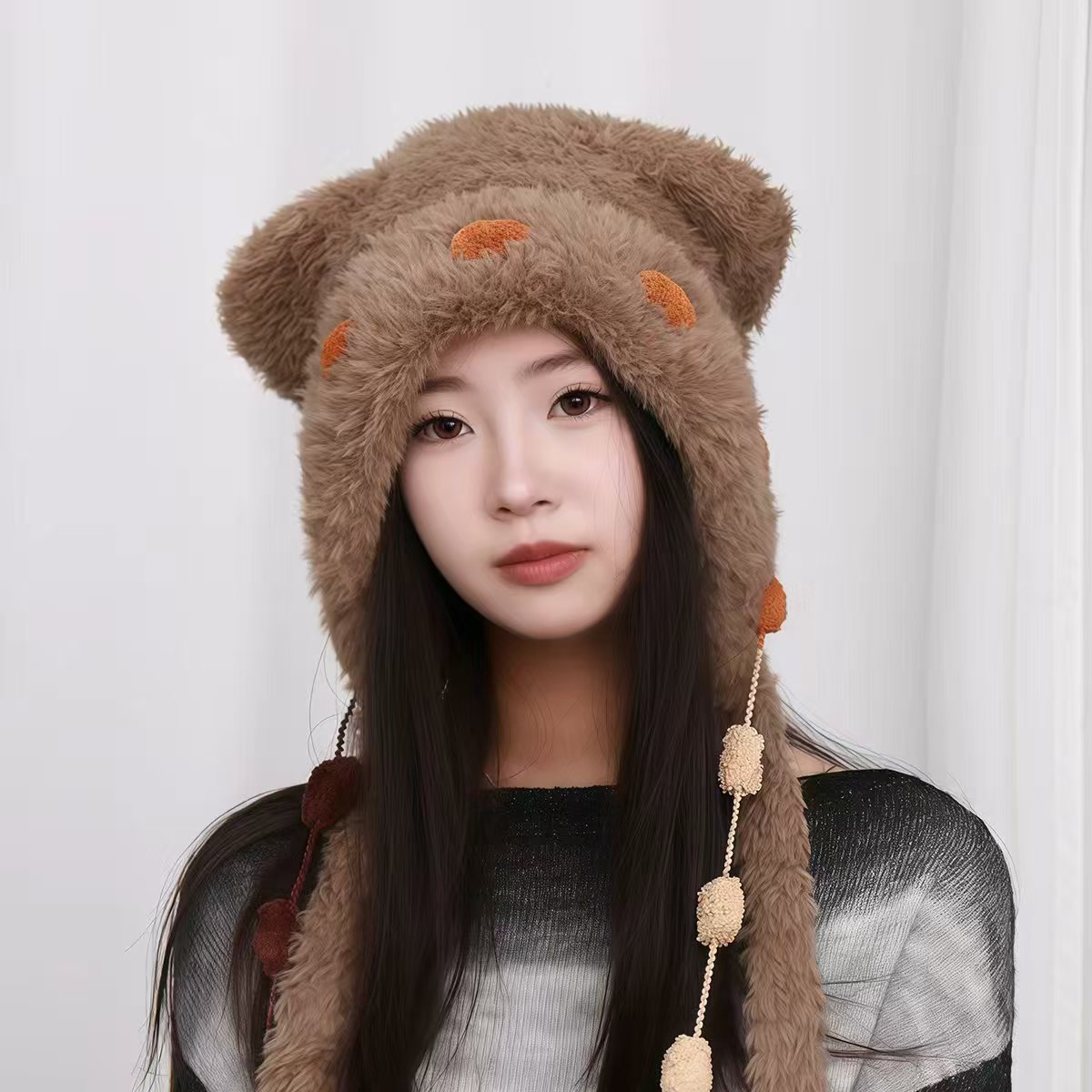 | 颜色 | SSA-006卡其色卡皮巴拉毛绒帽, SSA-006咖啡色卡皮巴拉毛绒帽, SSA-006米色卡皮巴拉毛绒帽, SSA-006米白色卡皮巴拉毛绒帽, SSA-001卡其色小熊纽扣毛绒帽, SSA-001咖啡色小熊纽扣毛绒帽, SSA-001米色小熊纽扣毛绒帽, SSA-001米白色小熊纽扣毛绒帽, A-720米色拼色小熊帽, A-720咖啡色拼色小熊帽, A-720卡其色拼色小熊帽, A-720黑色拼色小熊帽 | 尺码 | 54-60cm |