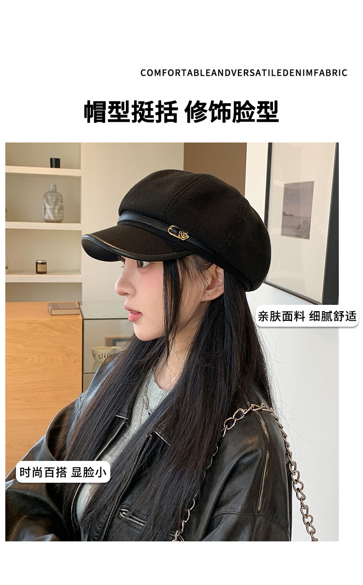 일본 복고풍 문학 스타일 여성용 검은색 오리 혀 베레모, 캐주얼하고 다재다능하며 얼굴이 보이는 작은 팔각형 구름 모자