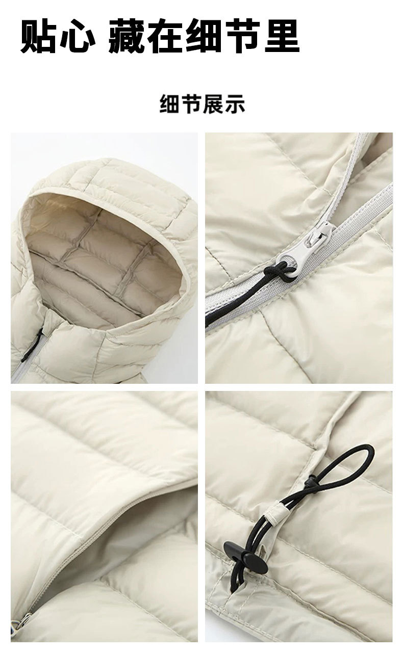 여성용 구스다운 패딩 재킷, 가을 겨울 신상, 고급스러운 짧은 후드형 보온 90% 화이트 구스다운 패딩 재킷