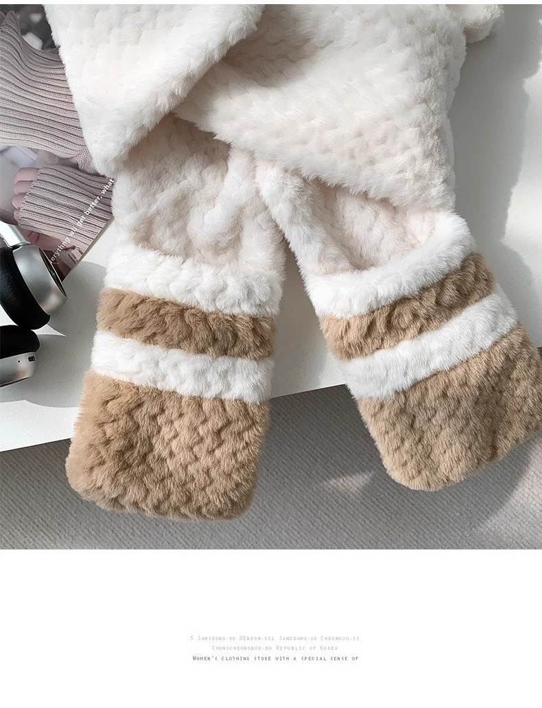 考拉毛绒帽围巾一体-不动
