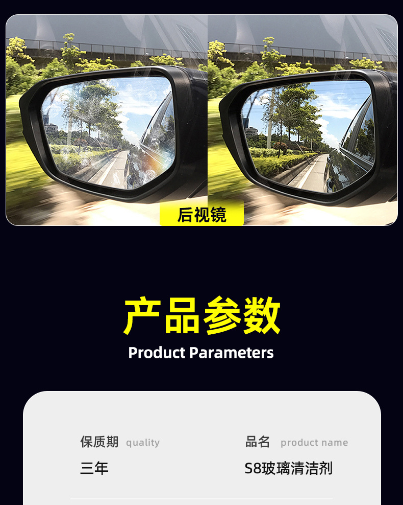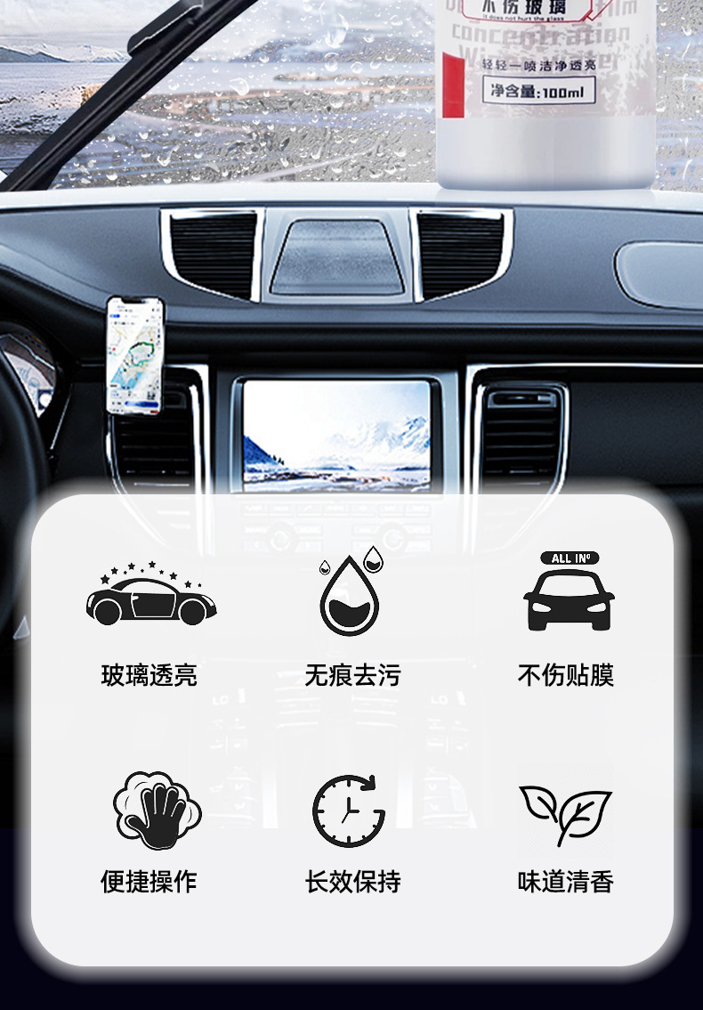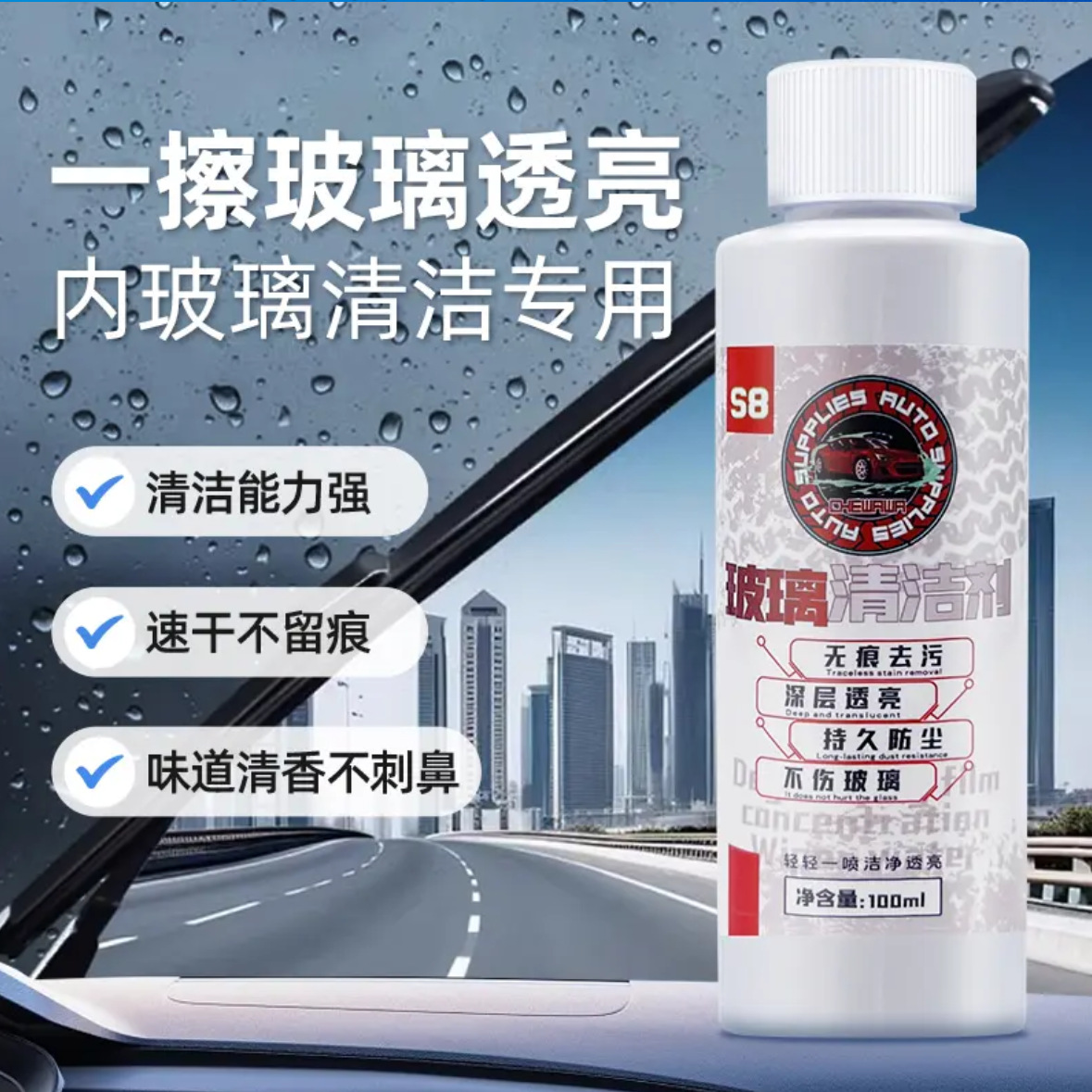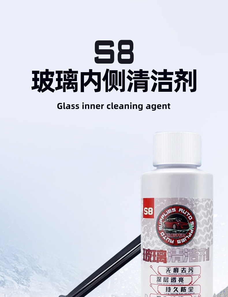 S8 유리 내부 클리너, 유막 제거 세척제, 자동차 유리 흐림 필수 청소 유물