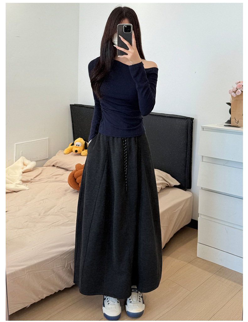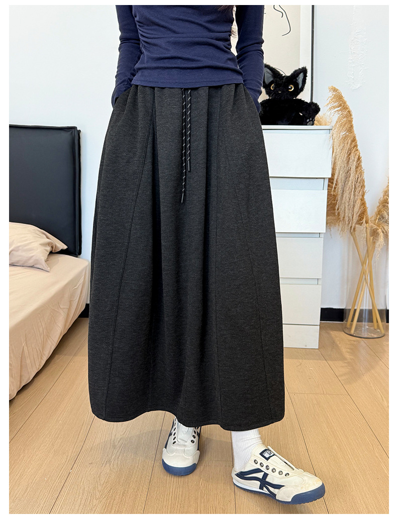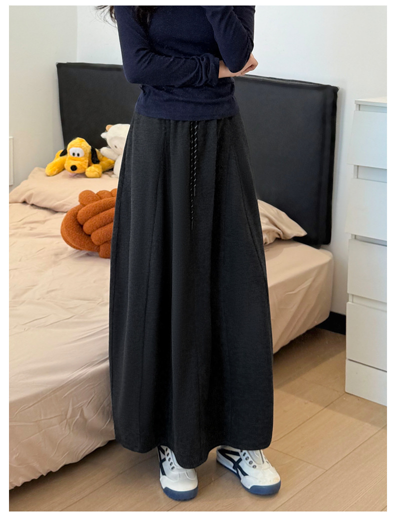 여성을위한 검은 찹쌀 스커트 가을 뚱뚱한 소녀 100kg 작은 a 라인 스커트 드레이프 플러스 사이즈 롱 스커트