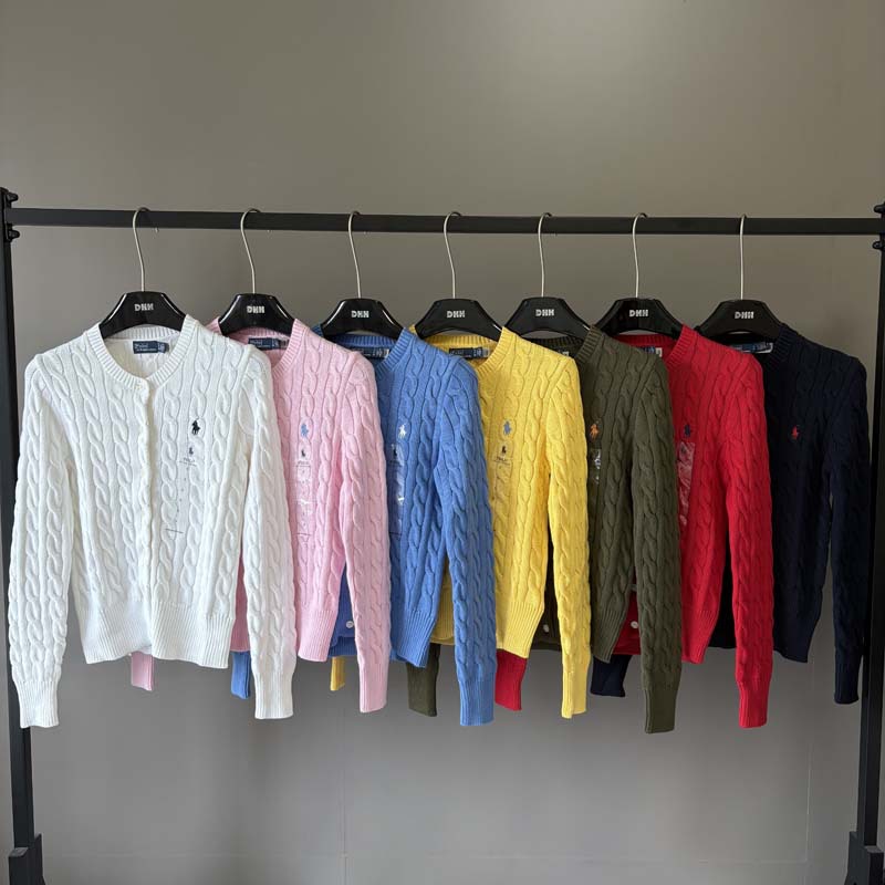 고품질 RL 랄프 포니 로고 트위스트 니트 카디건 자수 라운드 넥 여성용 심플 스웨터