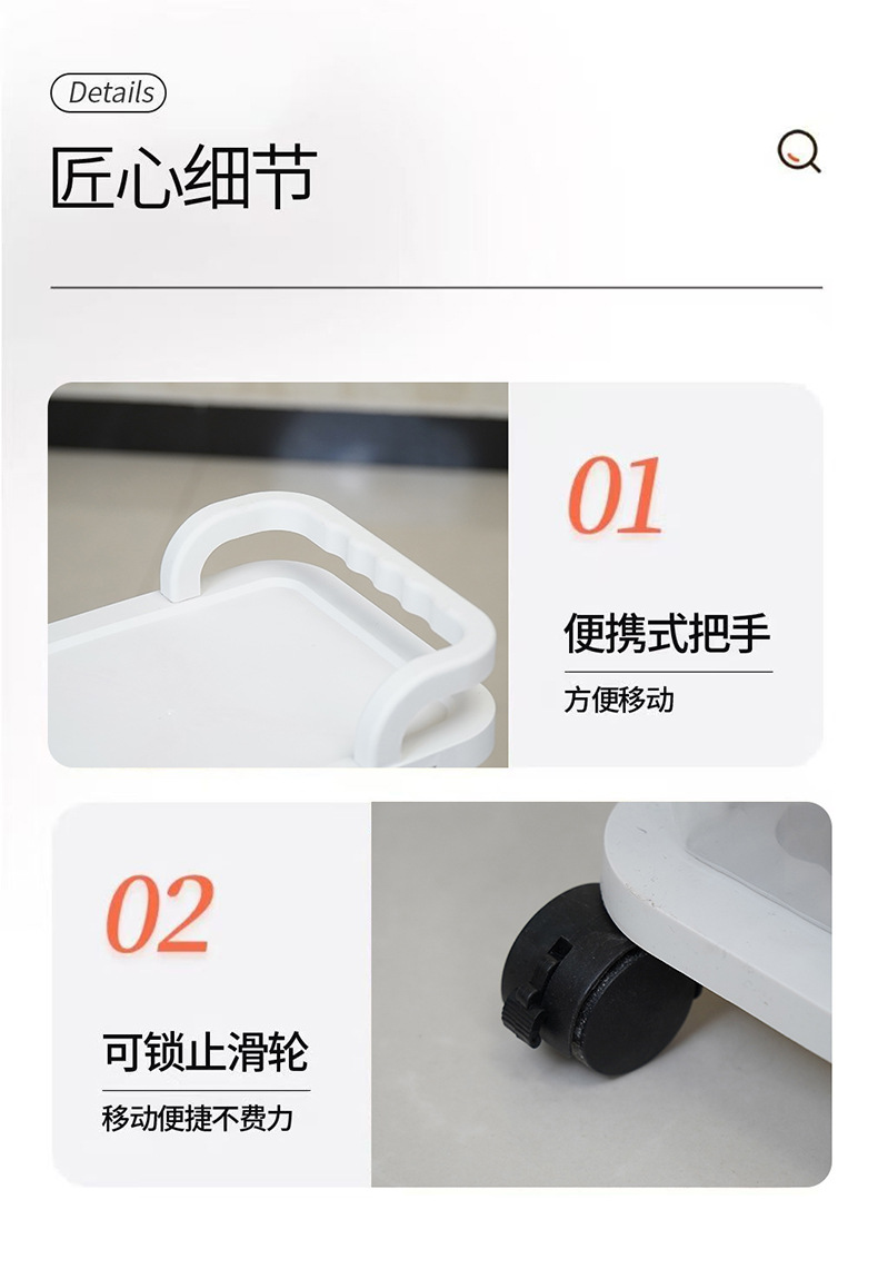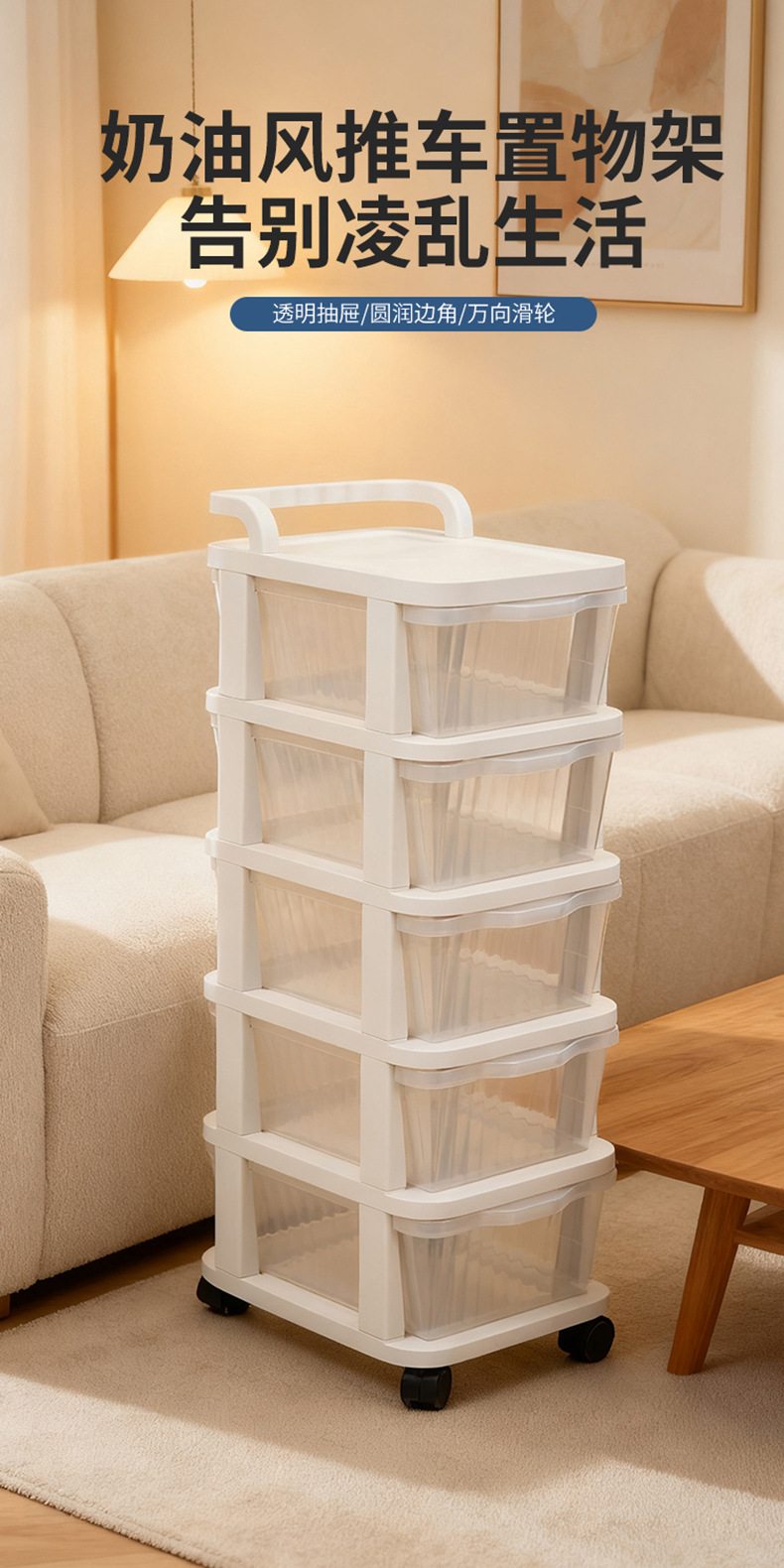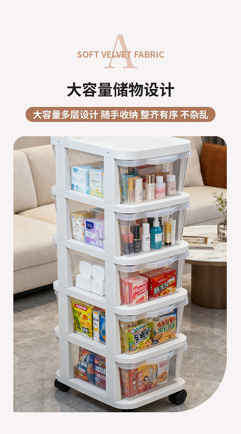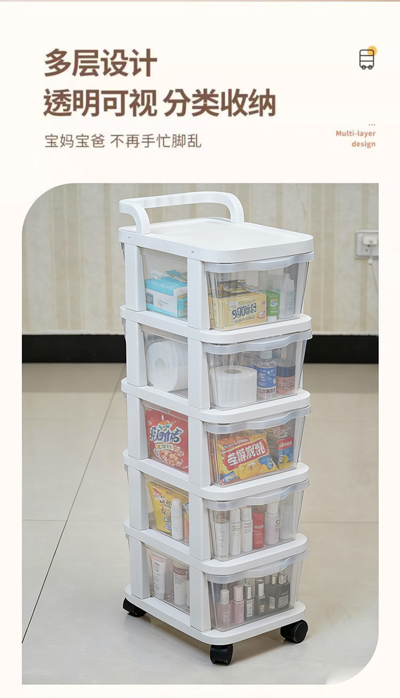 | 塑料新料占比 | 80%—99%新料 | 颜色 | 2层纯色抽屉(万向轮), 3层纯色抽屉(万向轮), 4层纯色抽屉(万向轮), 5层纯色抽屉(万向轮), 2层透明抽屉(万向轮), 3层透明抽屉(万向轮), 4层透明抽屉(万向轮), 5层透明抽屉(万向轮) |