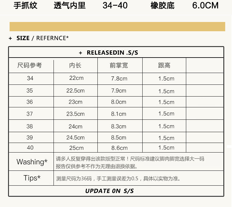 | 鞋跟高度 | 中跟(3-5CM) | 图案 | 纯色 |