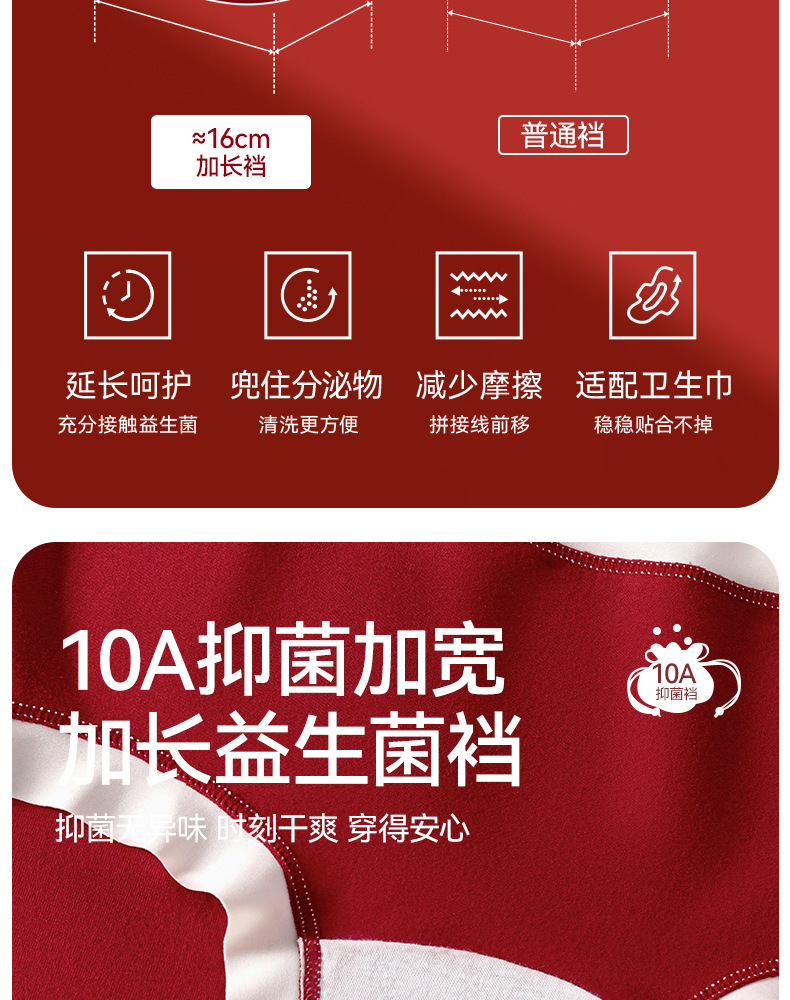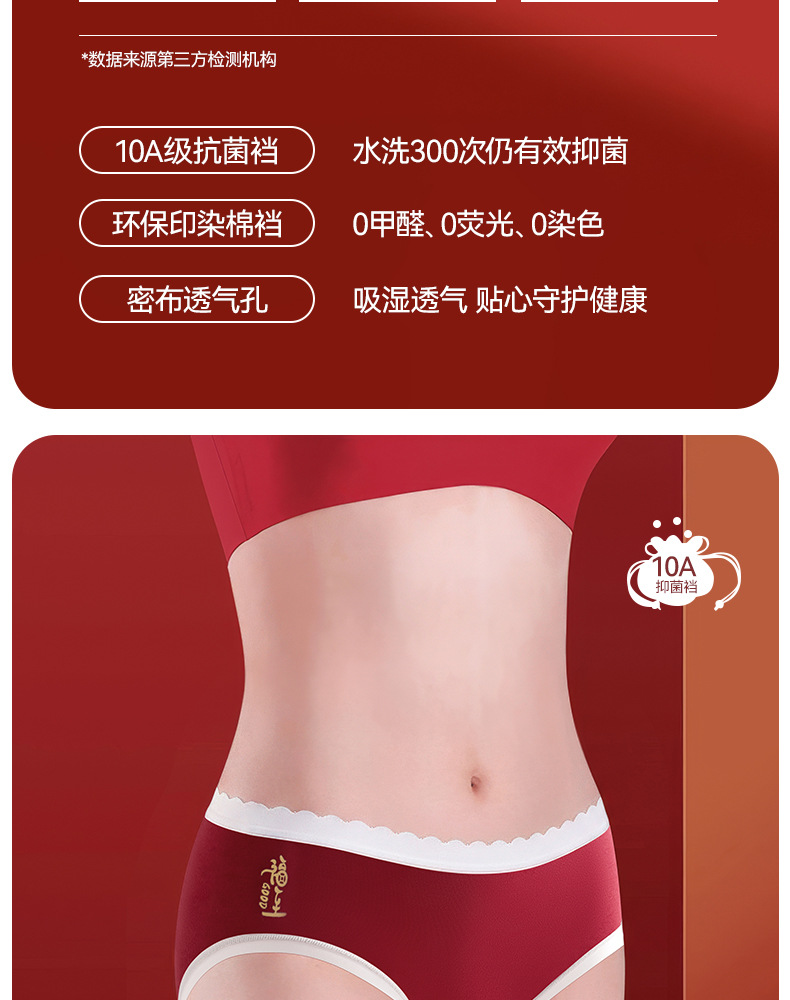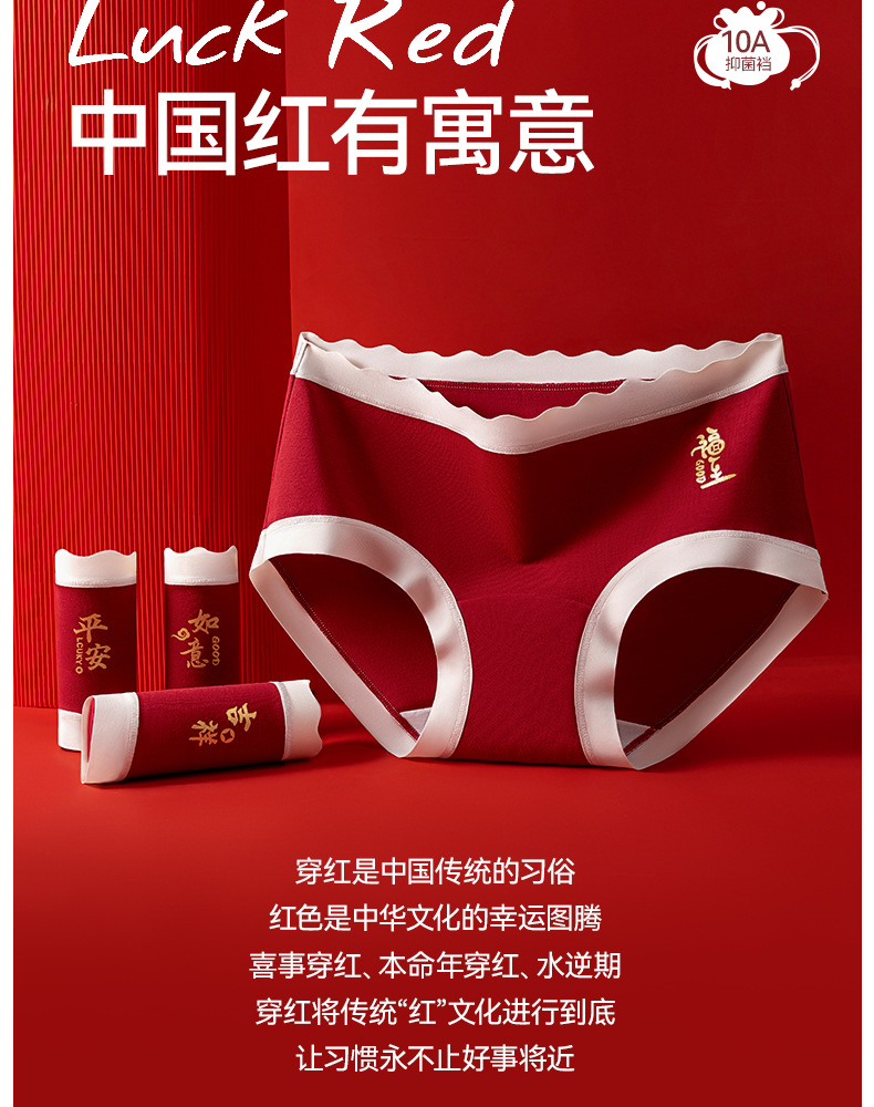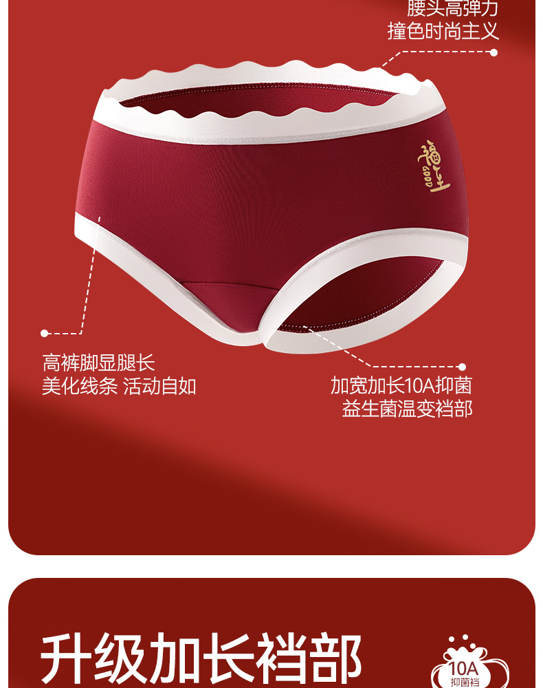 여성용 붉은 속옷 10A 항균 순면 확장 가랑이 축제 결혼식 여성 속옷 새해 붉은 속옷