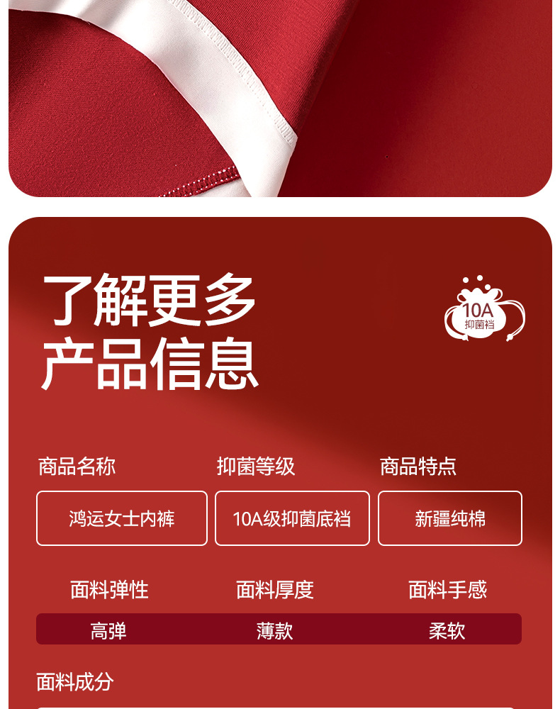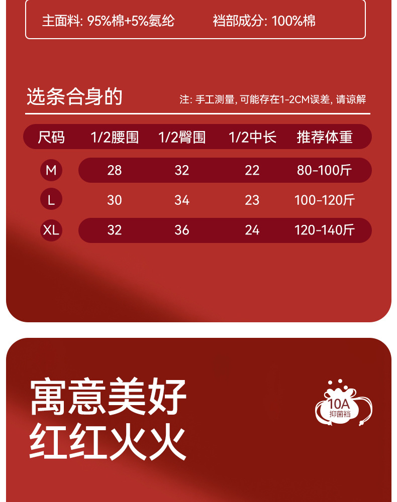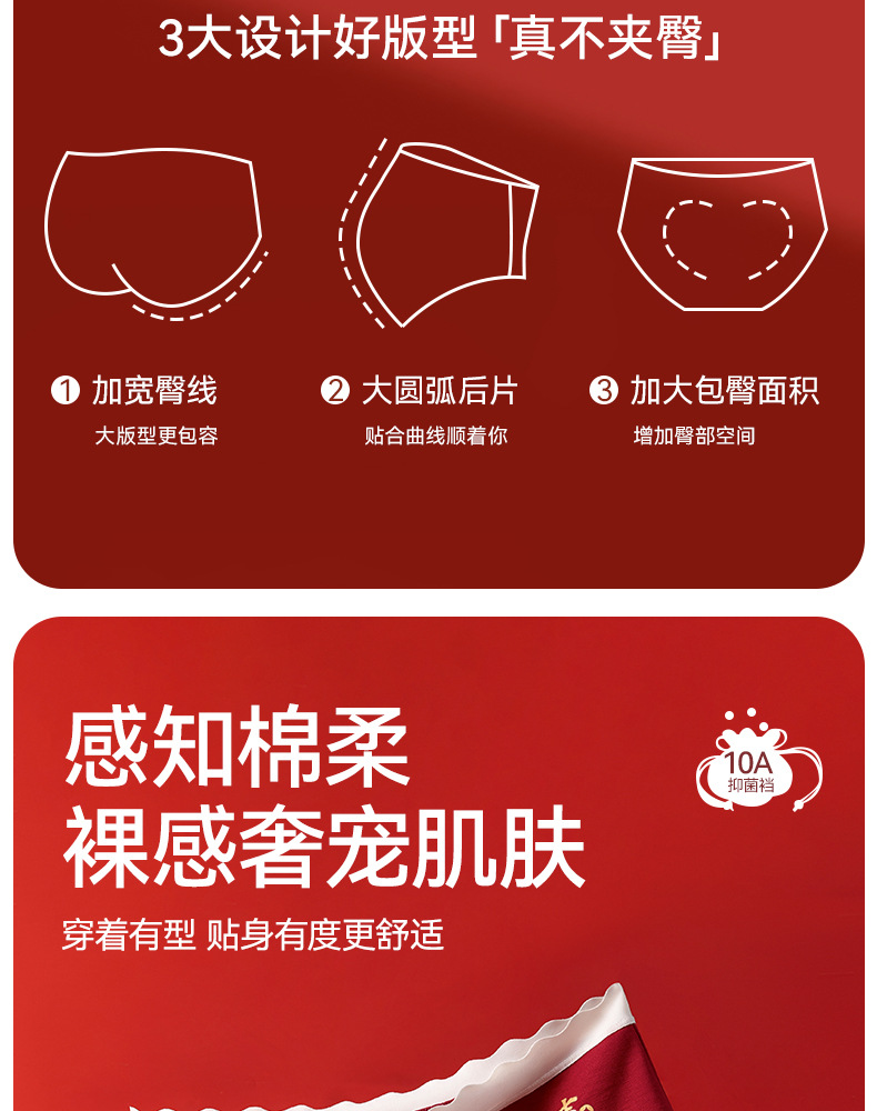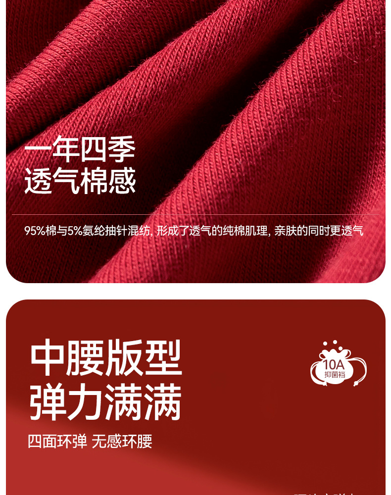 여성용 붉은 속옷 10A 항균 순면 확장 가랑이 축제 결혼식 여성 속옷 새해 붉은 속옷