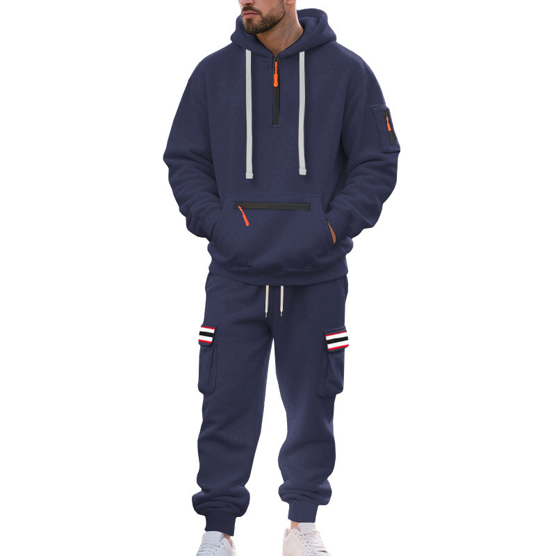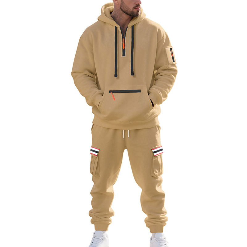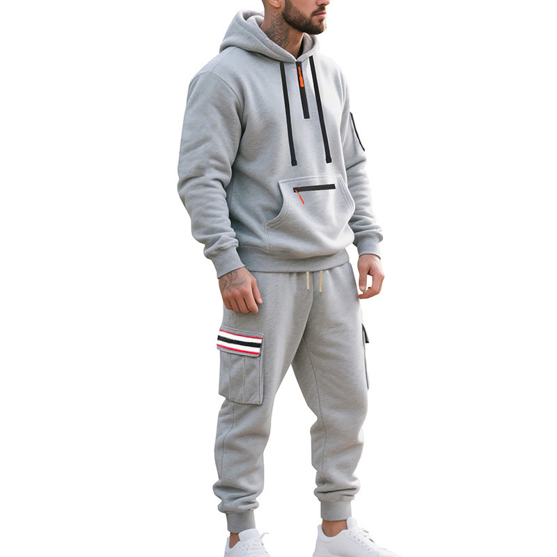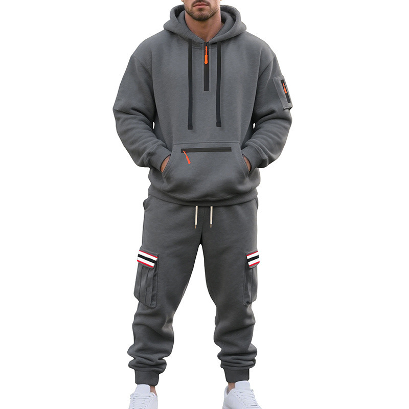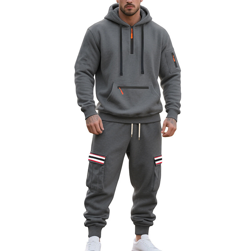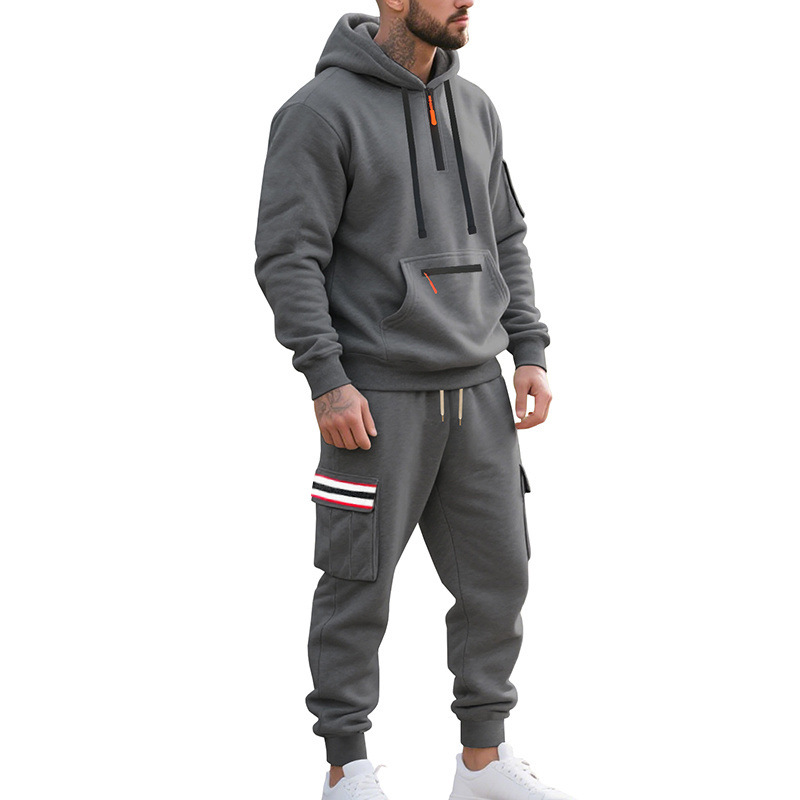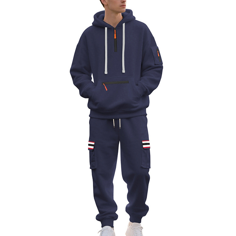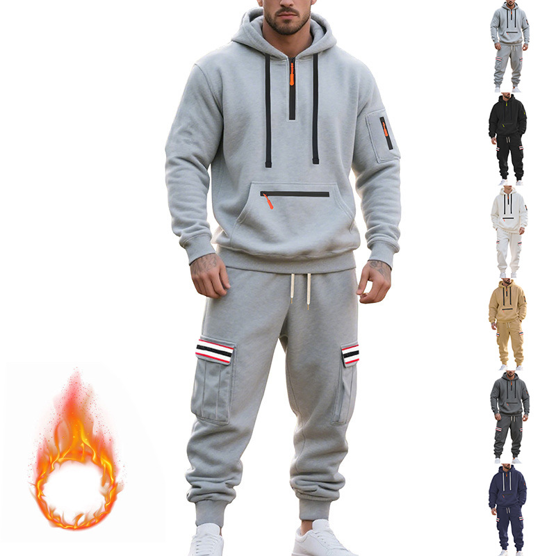 국경 간 Amazon 겨울 헤비 벨벳 남성 캐주얼 정장 남성용 느슨한 스포츠 멀티 포켓 작업복 정장