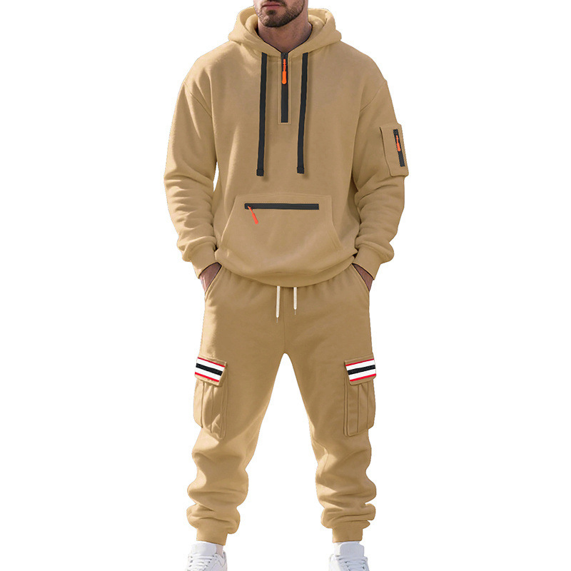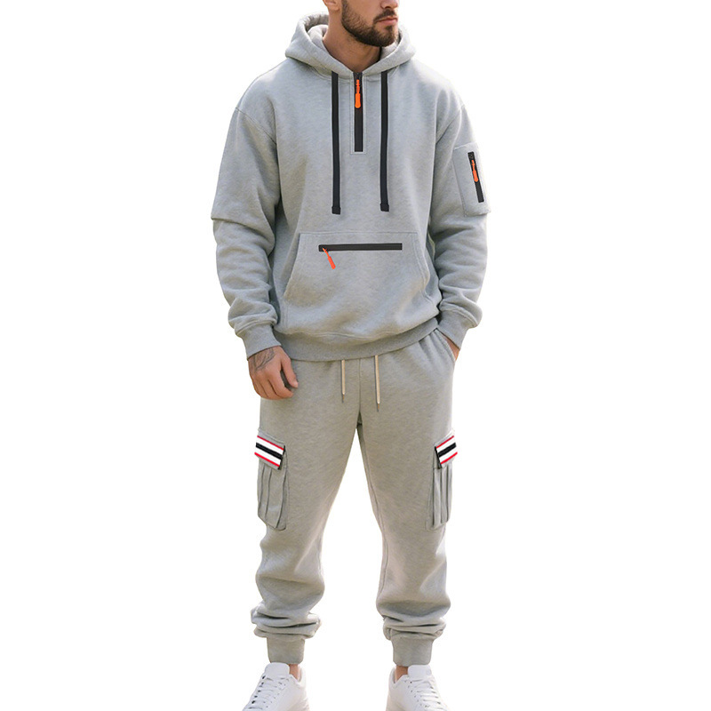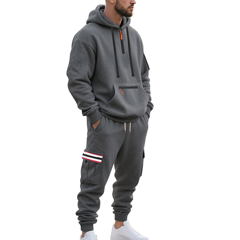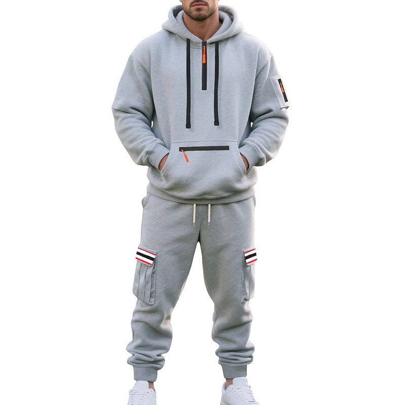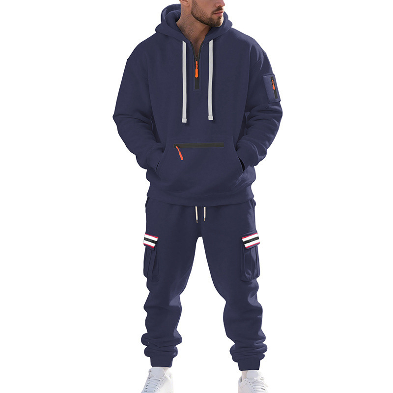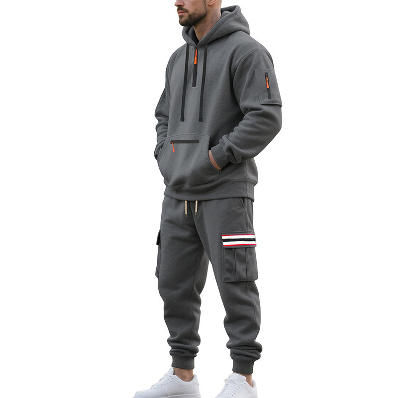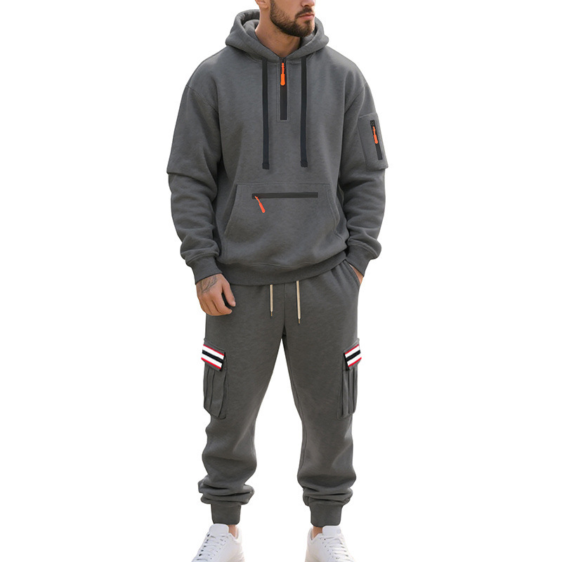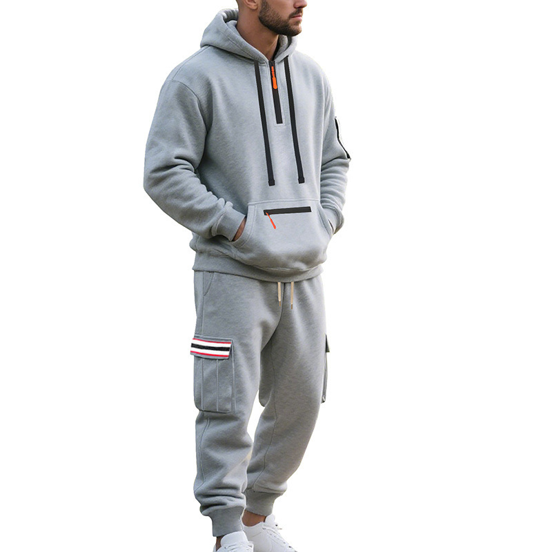 국경 간 Amazon 겨울 헤비 벨벳 남성 캐주얼 정장 남성용 느슨한 스포츠 멀티 포켓 작업복 정장