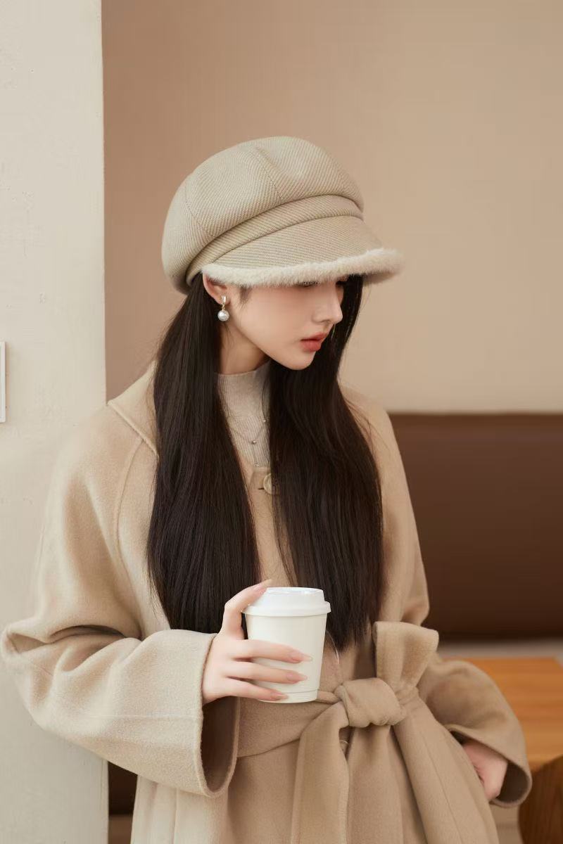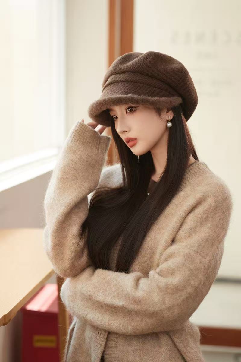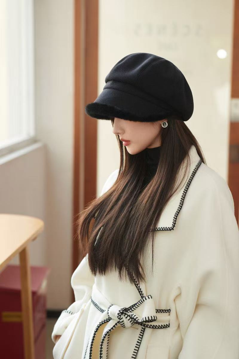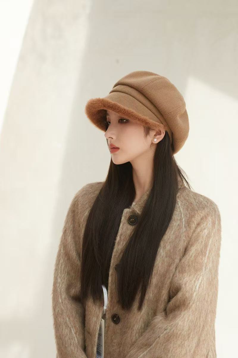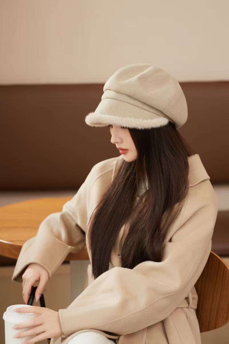여성을위한 플러시 베레모 2025 새로운 가을, 겨울 팔각형 모자 두꺼운 힙합 모자 겨울 모자 야구 모자 어부 모자