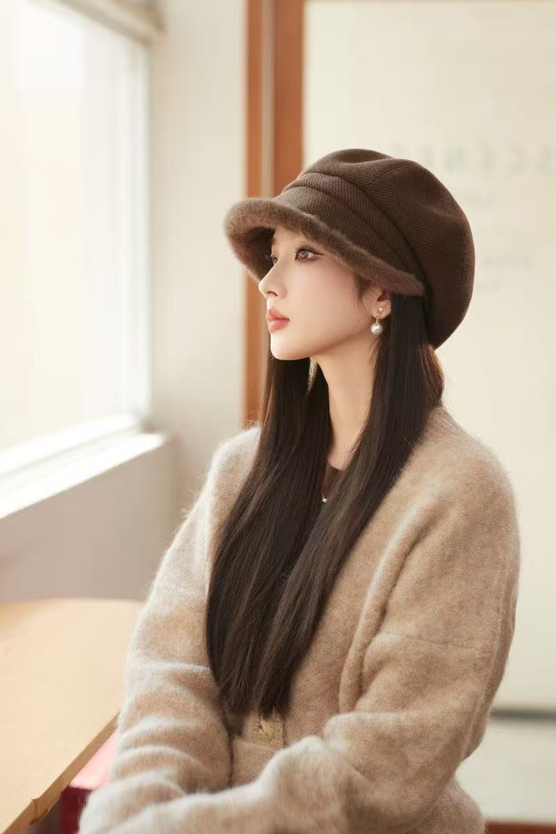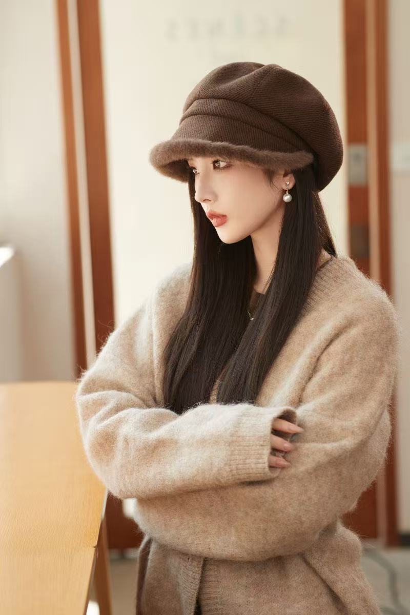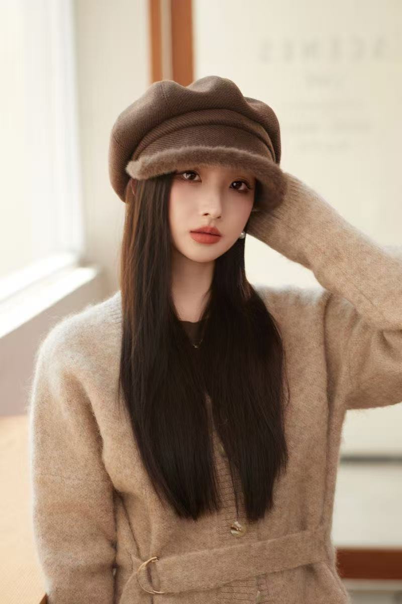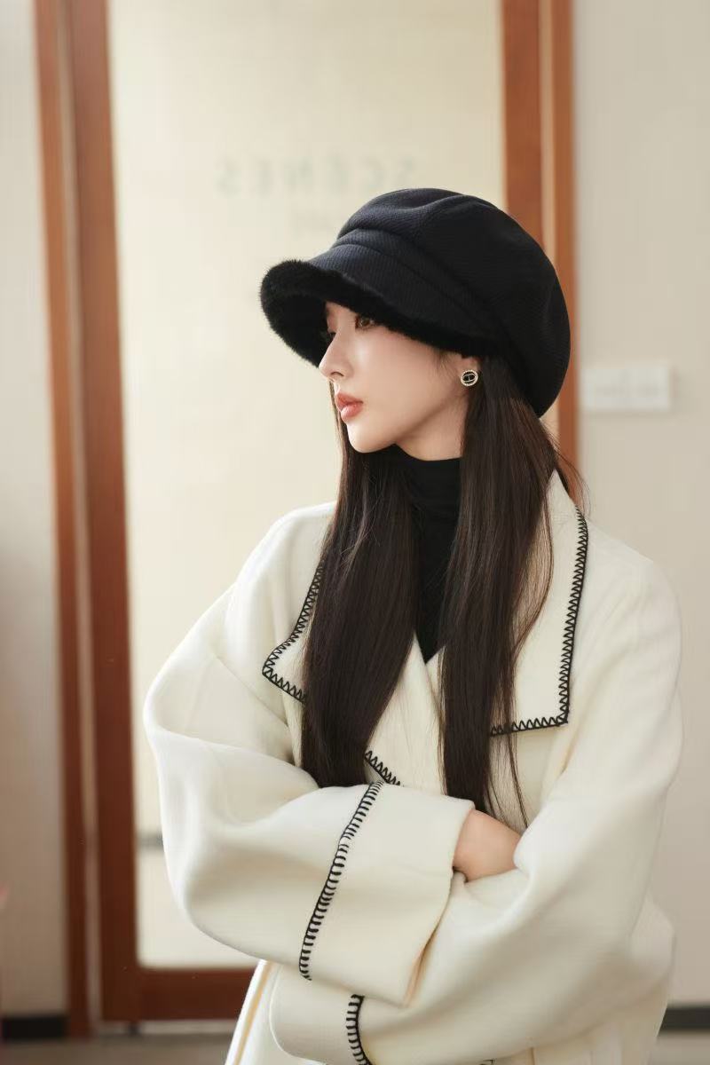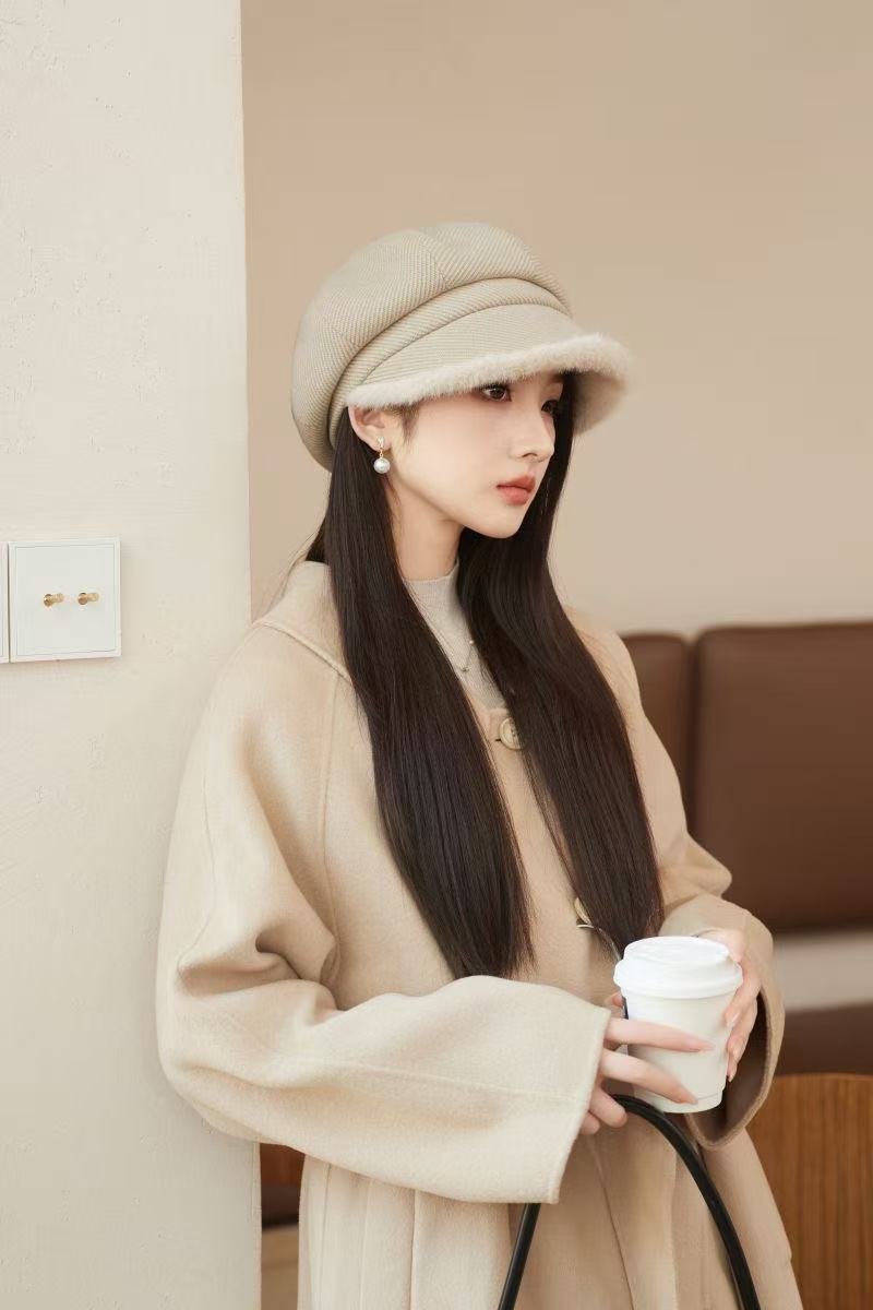 여성을위한 플러시 베레모 2025 새로운 가을, 겨울 팔각형 모자 두꺼운 힙합 모자 겨울 모자 야구 모자 어부 모자