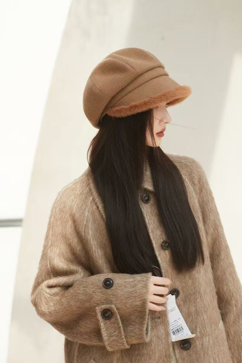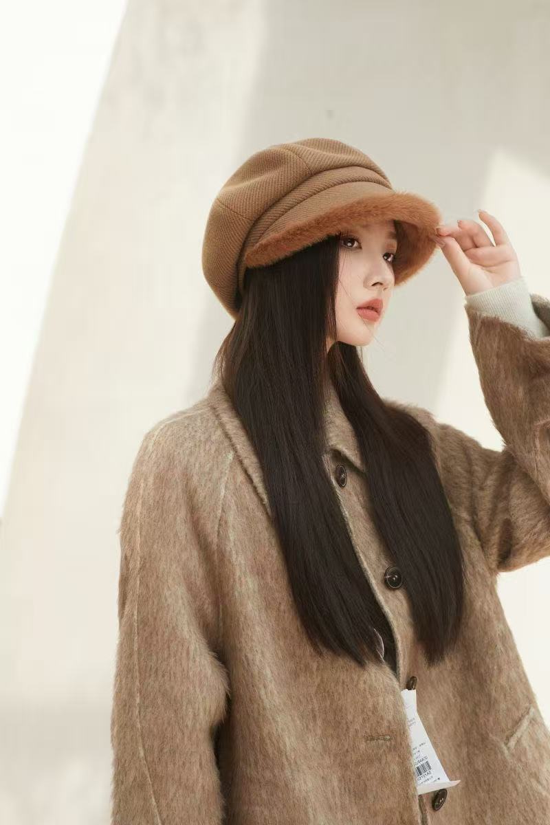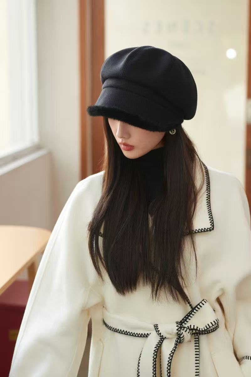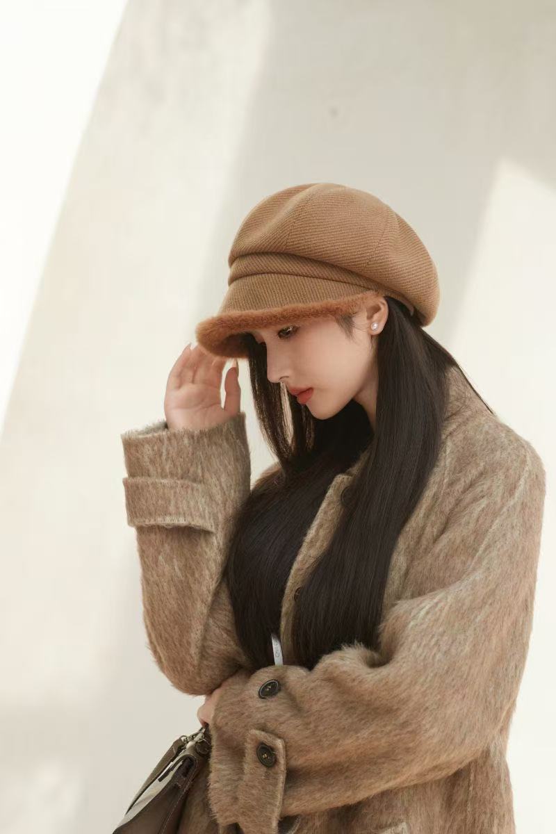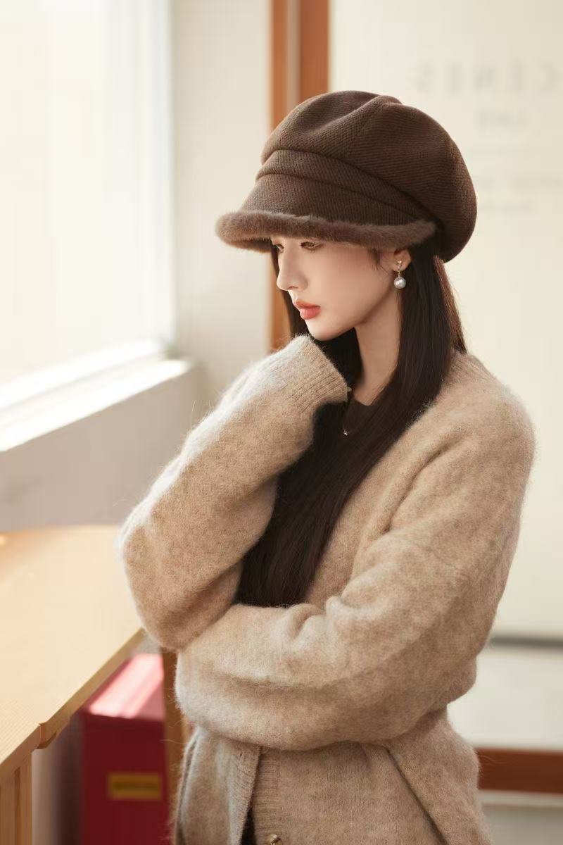 여성을위한 플러시 베레모 2025 새로운 가을, 겨울 팔각형 모자 두꺼운 힙합 모자 겨울 모자 야구 모자 어부 모자