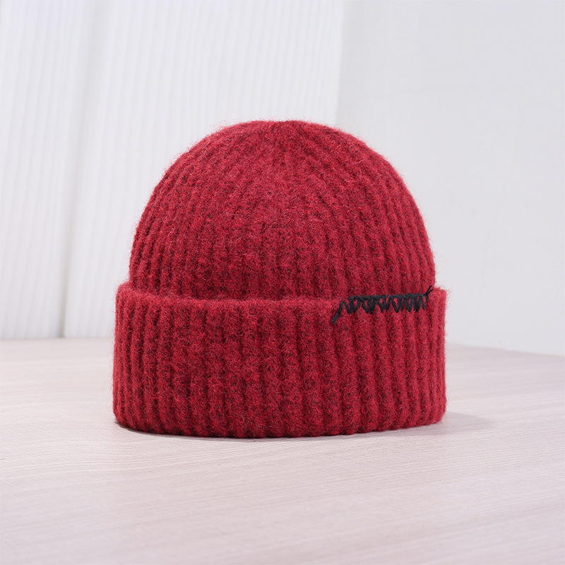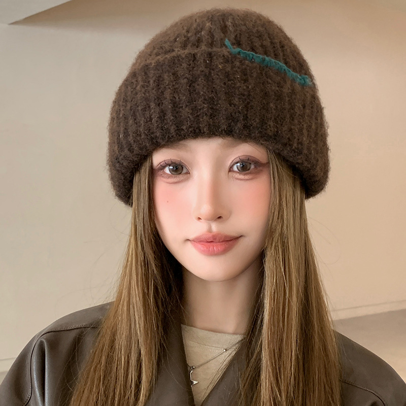 가을 겨울 여성용 일본식 루즈한 두꺼운 니트 모자, 따뜻하고 귀를 보호하는 모직 모자, 한국식 얼굴이 보이는 작은 큰 머리 둘레 방한 모자
