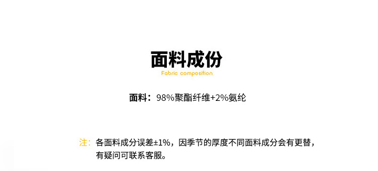 | 主面料成分 | 聚酯纤维 | 主面料成分的含量 | 98 |